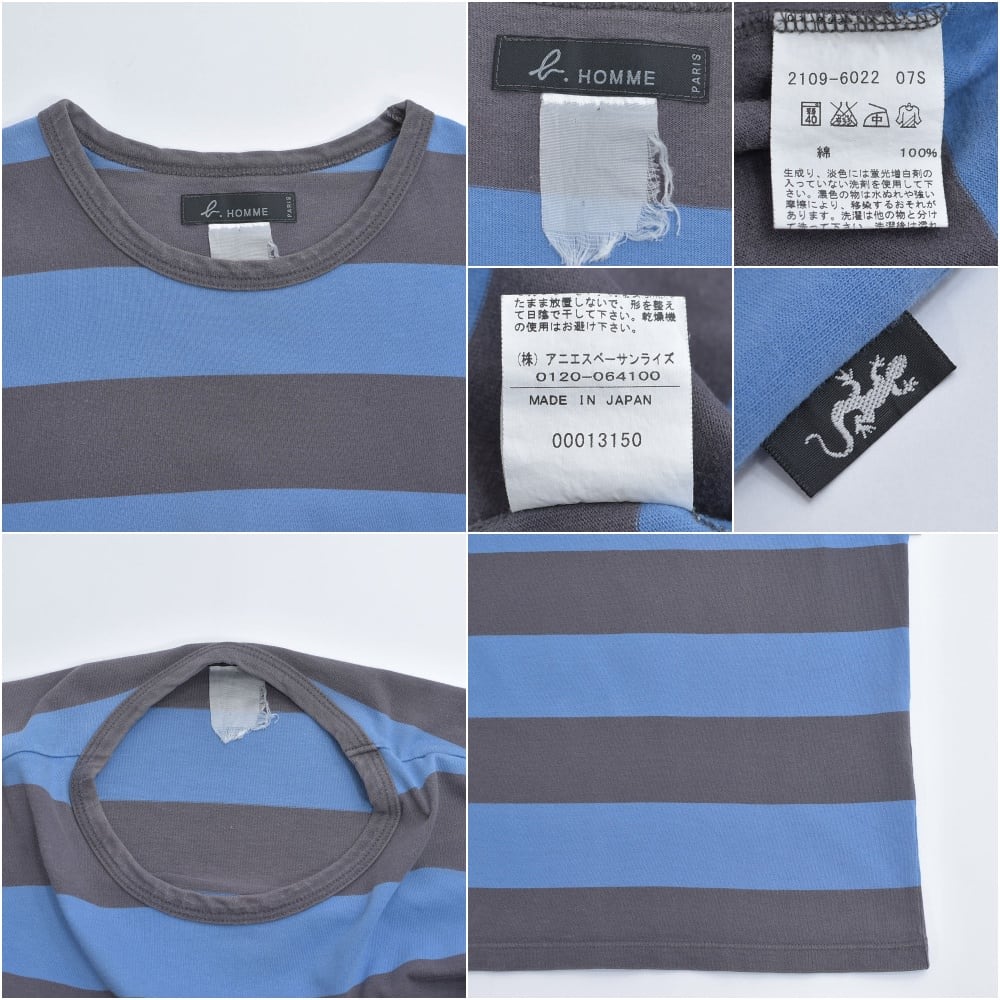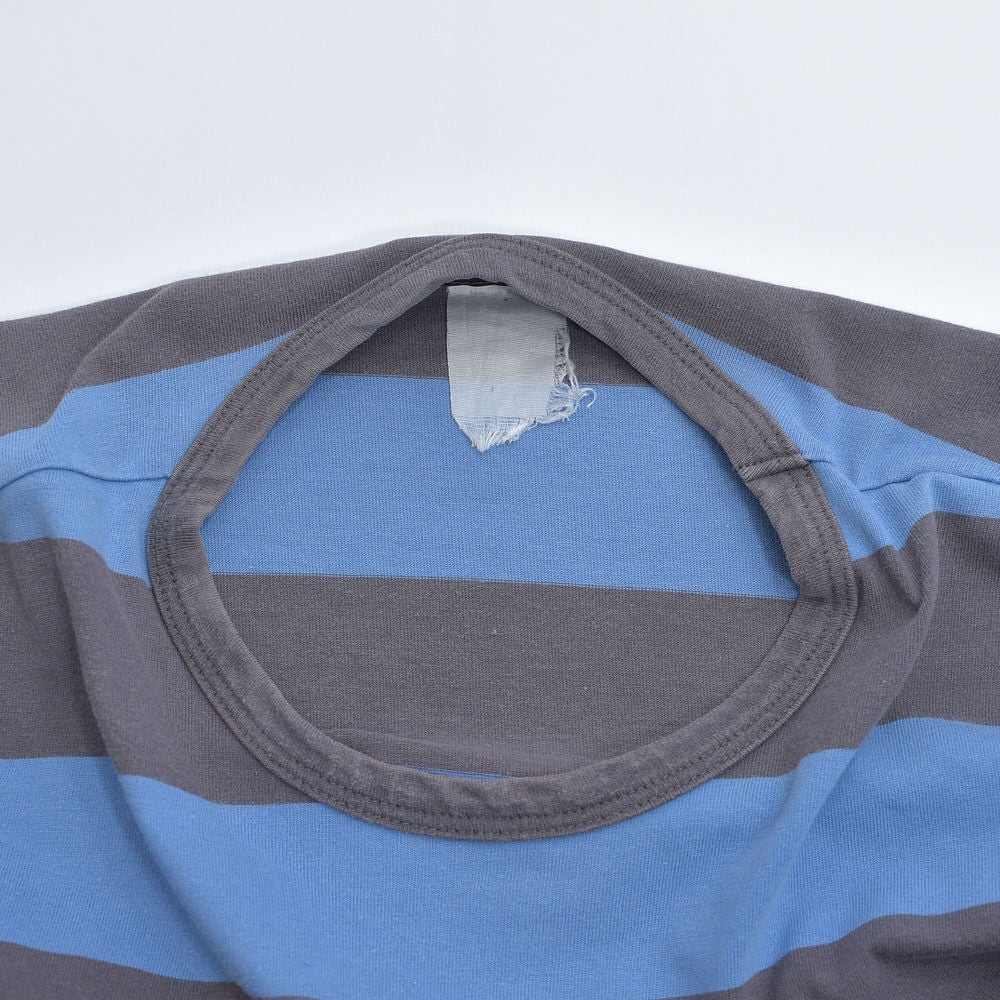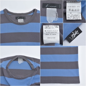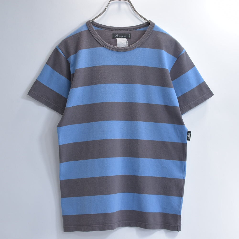 90~00s 日本製 agnes b. HOMME アニエスベーオム 太ボーダー クルーネック Tシャツ フレンチカジュアル アイコン ブルー グレー ヴィンテージ フレンチビンテージ ヨーロッパ古着 メンズS相当