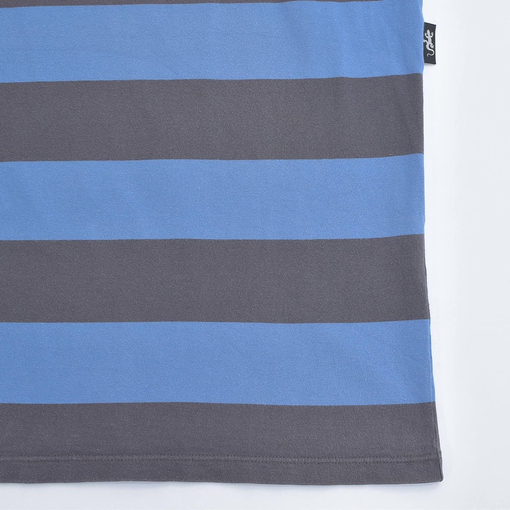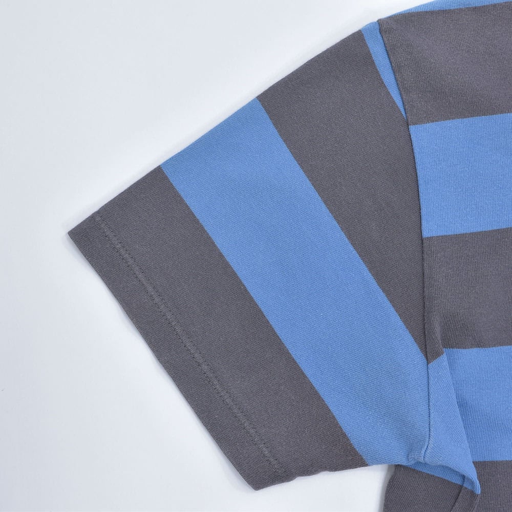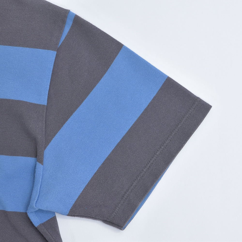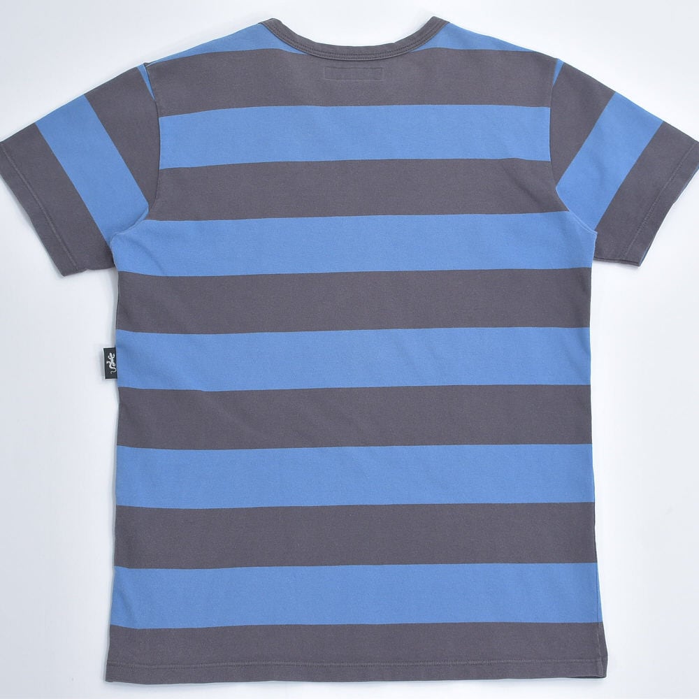90~00s 日本製 agnes b. HOMME アニエスベーオム 太ボーダー クルーネック Tシャツ フレンチカジュアル アイコン ブルー グレー ヴィンテージ フレンチビンテージ ヨーロッパ古着 メンズS相当