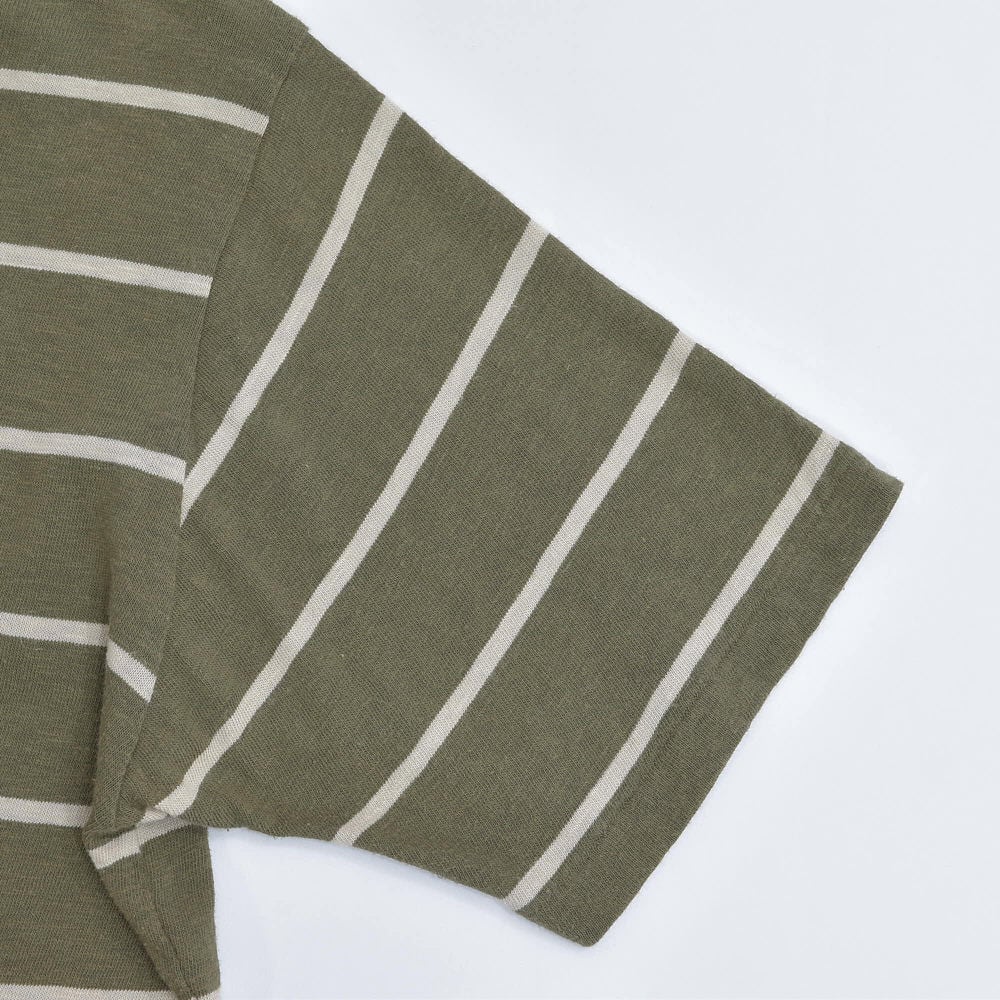 ちょっと気怠げなオリーブグリーン、でも媚びないクリームのボーダー