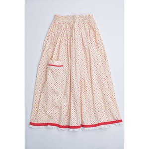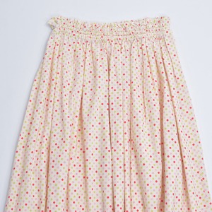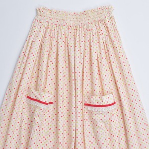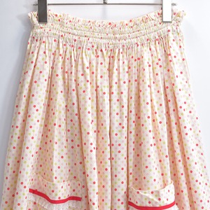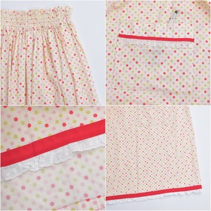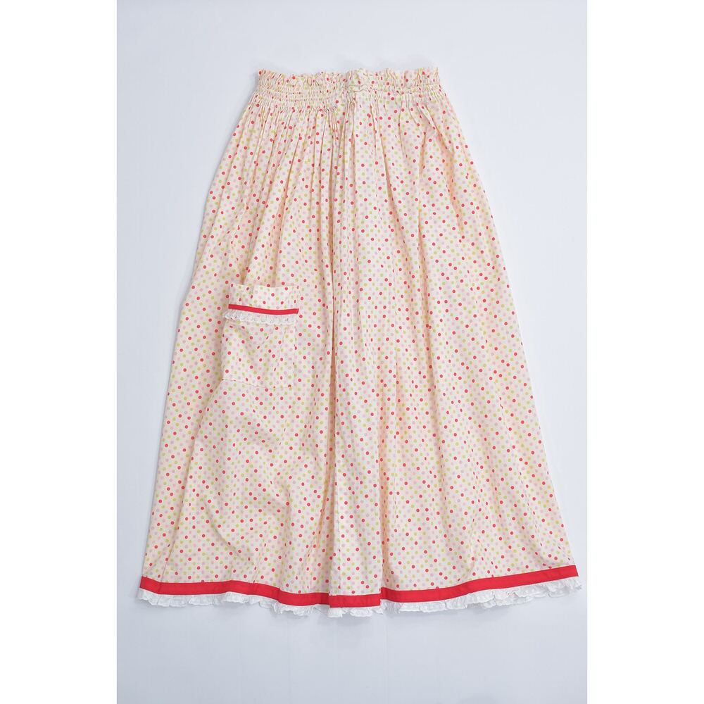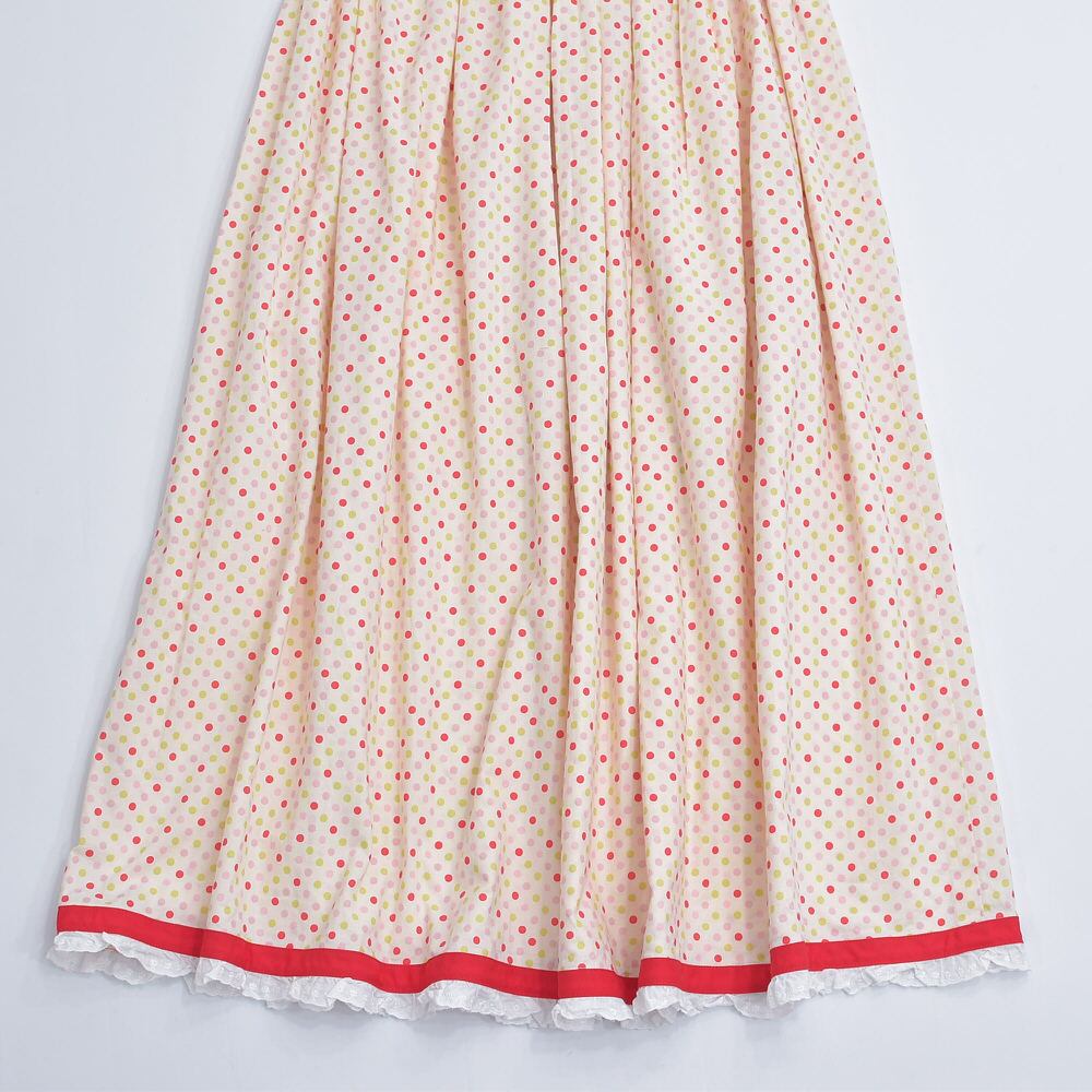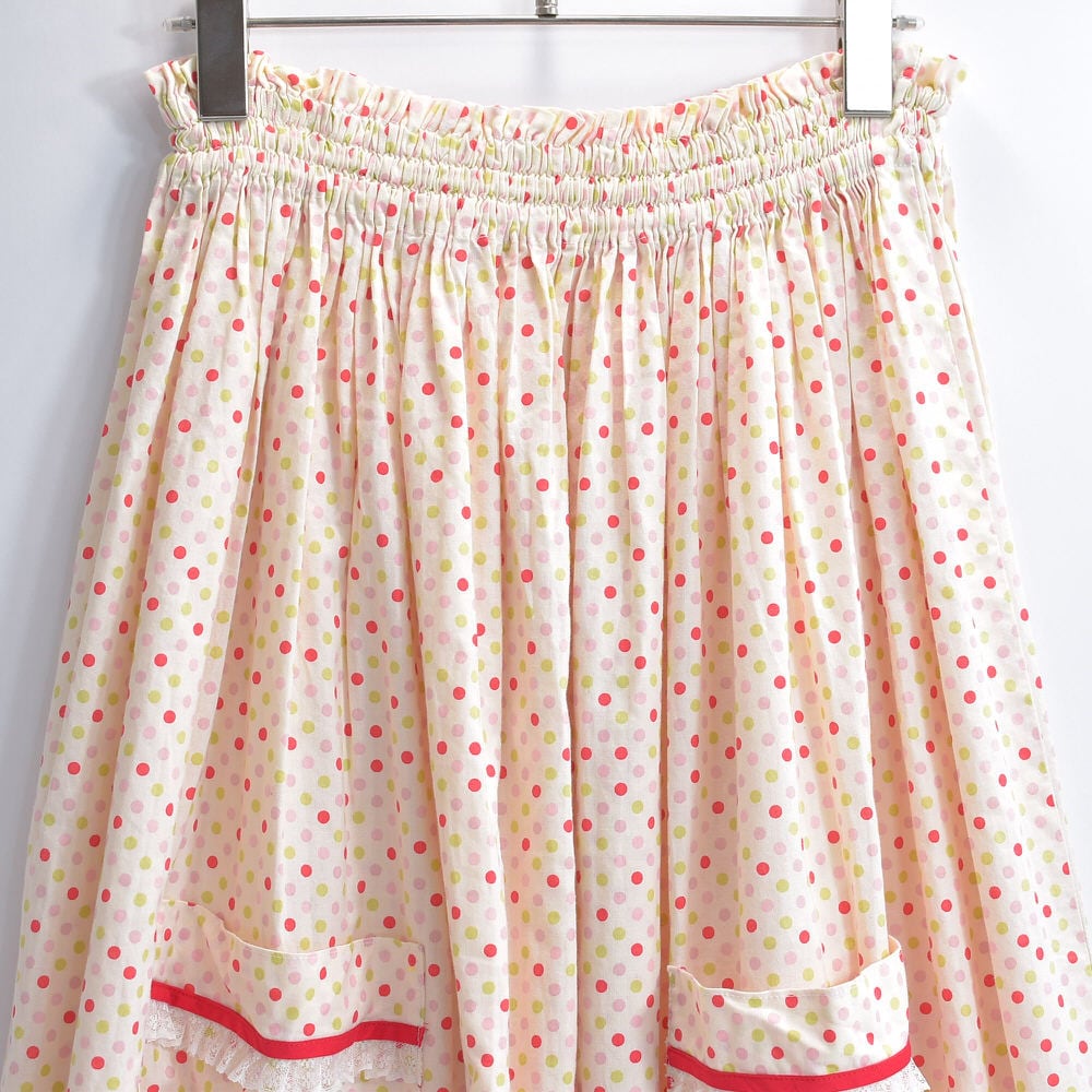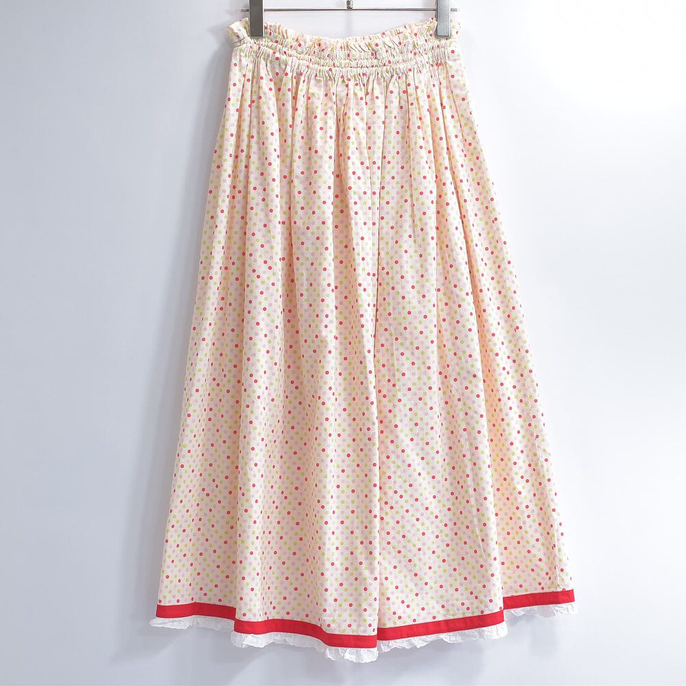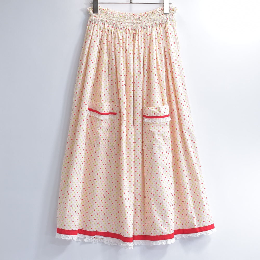 Used マルチカラー ドット柄 レース使い ロングスカート 水玉模様 レトロポップ クリーム ヴィンテージ ビンテージ 古着 レディースW64〜116cm