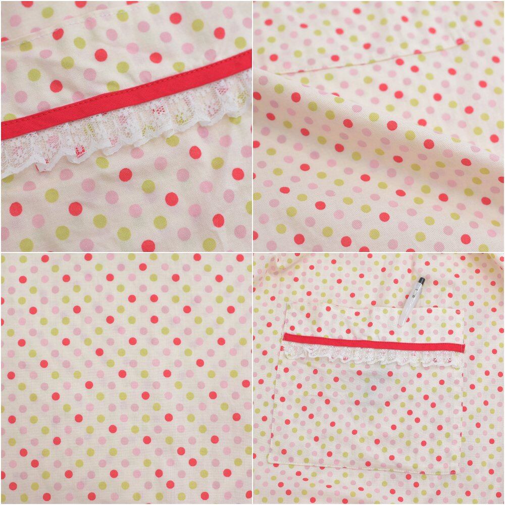 ころん、と可愛い三色のドットに、鮮やかな赤いリボンと繊細なレースのあしらい
