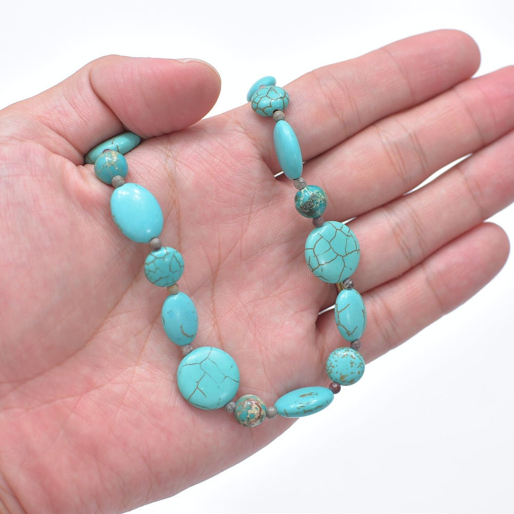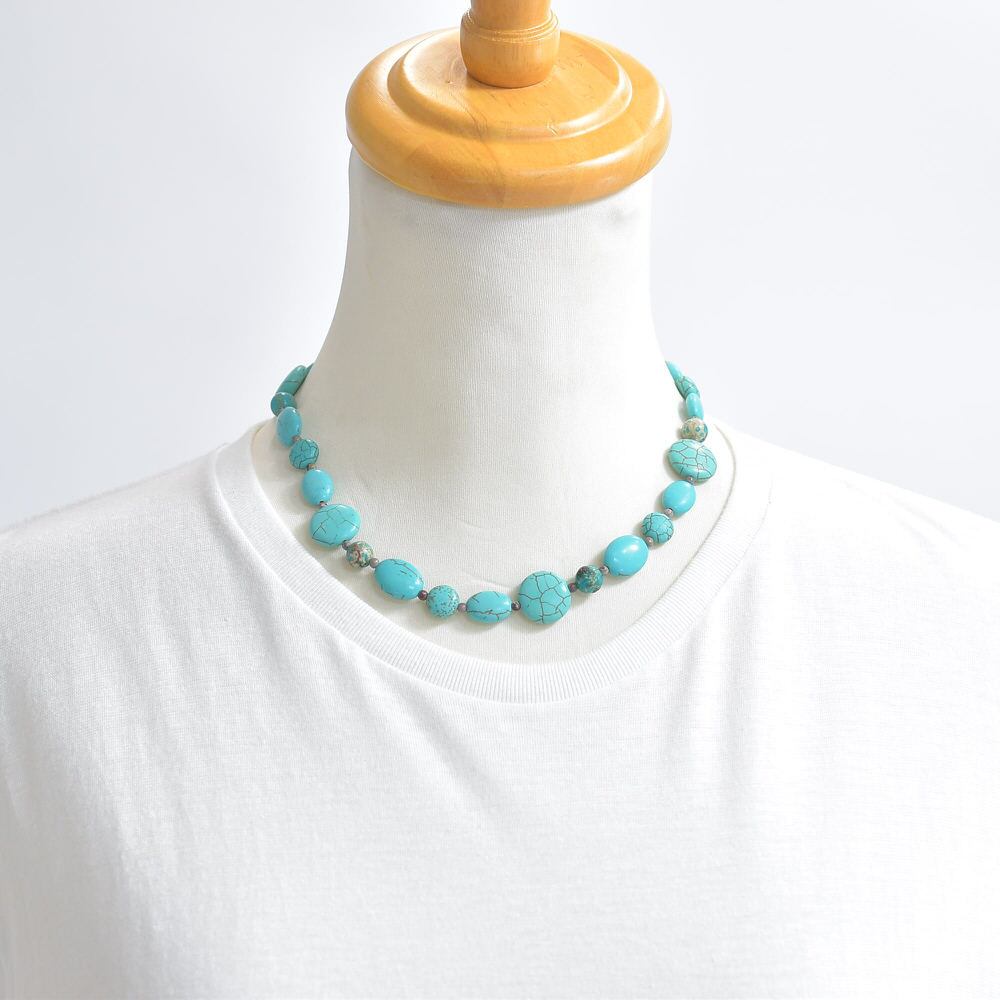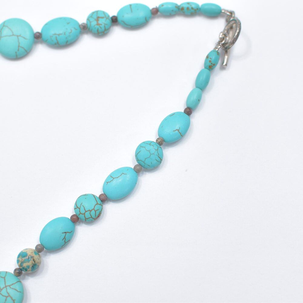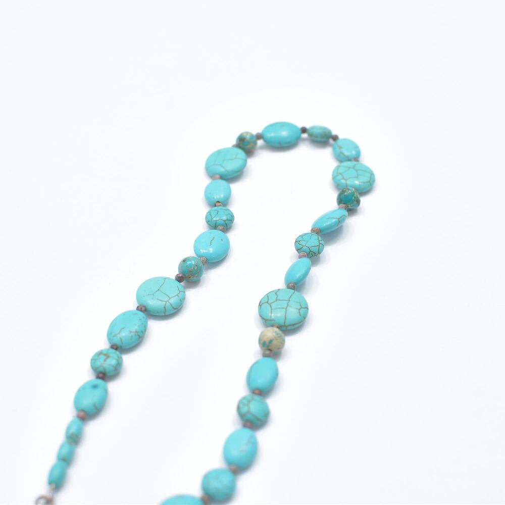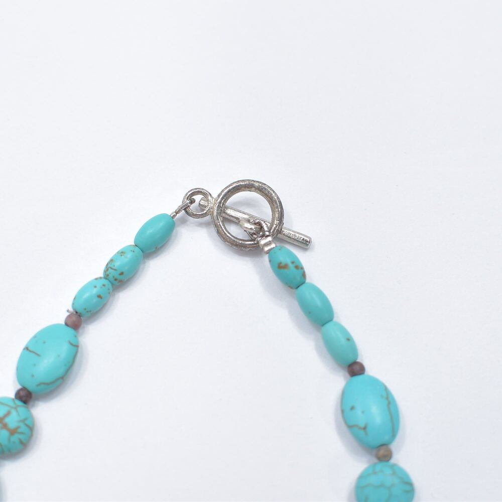 Used ターコイズ調 ビーズ マンテル デザイン ネックレス エスニック ボヘミアン ネイティブ ターコイズブルー ヴィンテージ ビンテージ 古着 ユニセックスデザイン