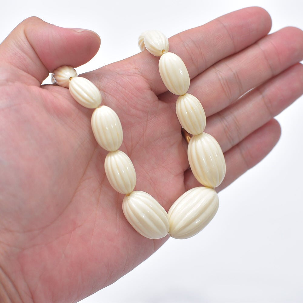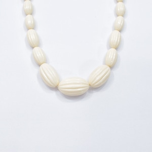 60~70s Used メロンビーズ リッジデザイン ネックレス バレルクラスプ クラシック レトロ アイボリーホワイト ヴィンテージ 首飾り ビンテージ 古着 レディース
