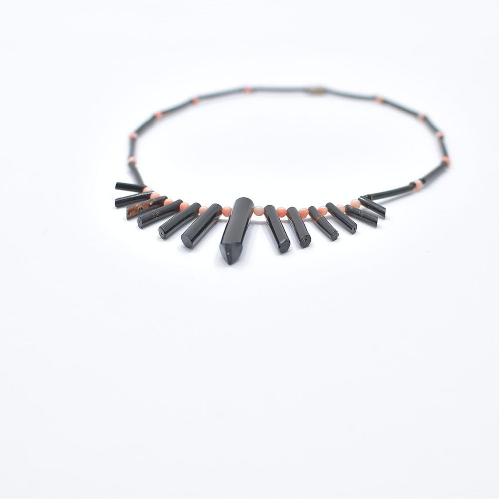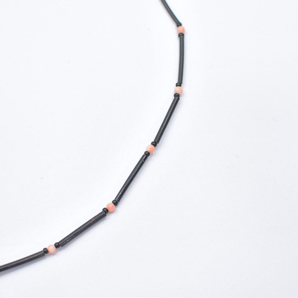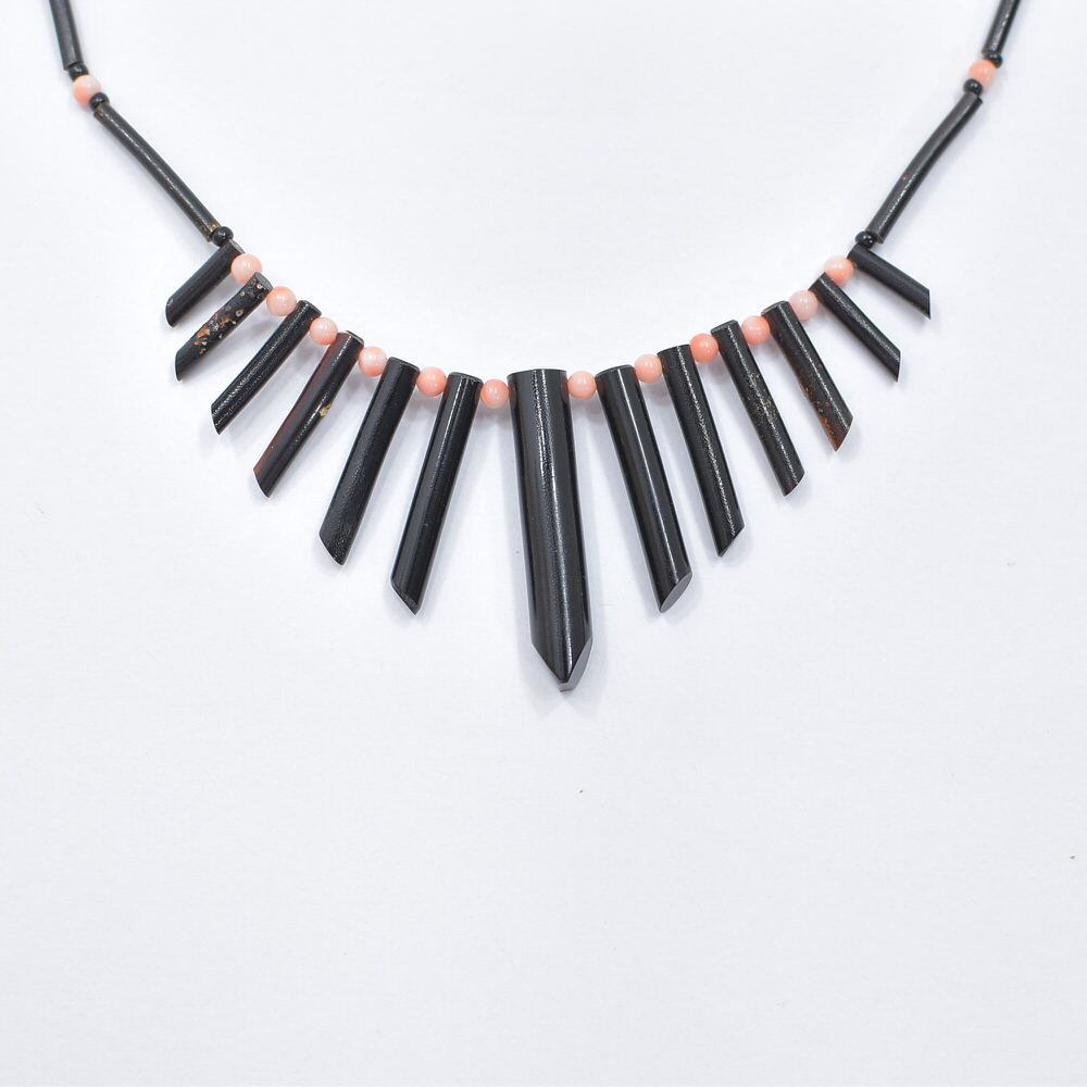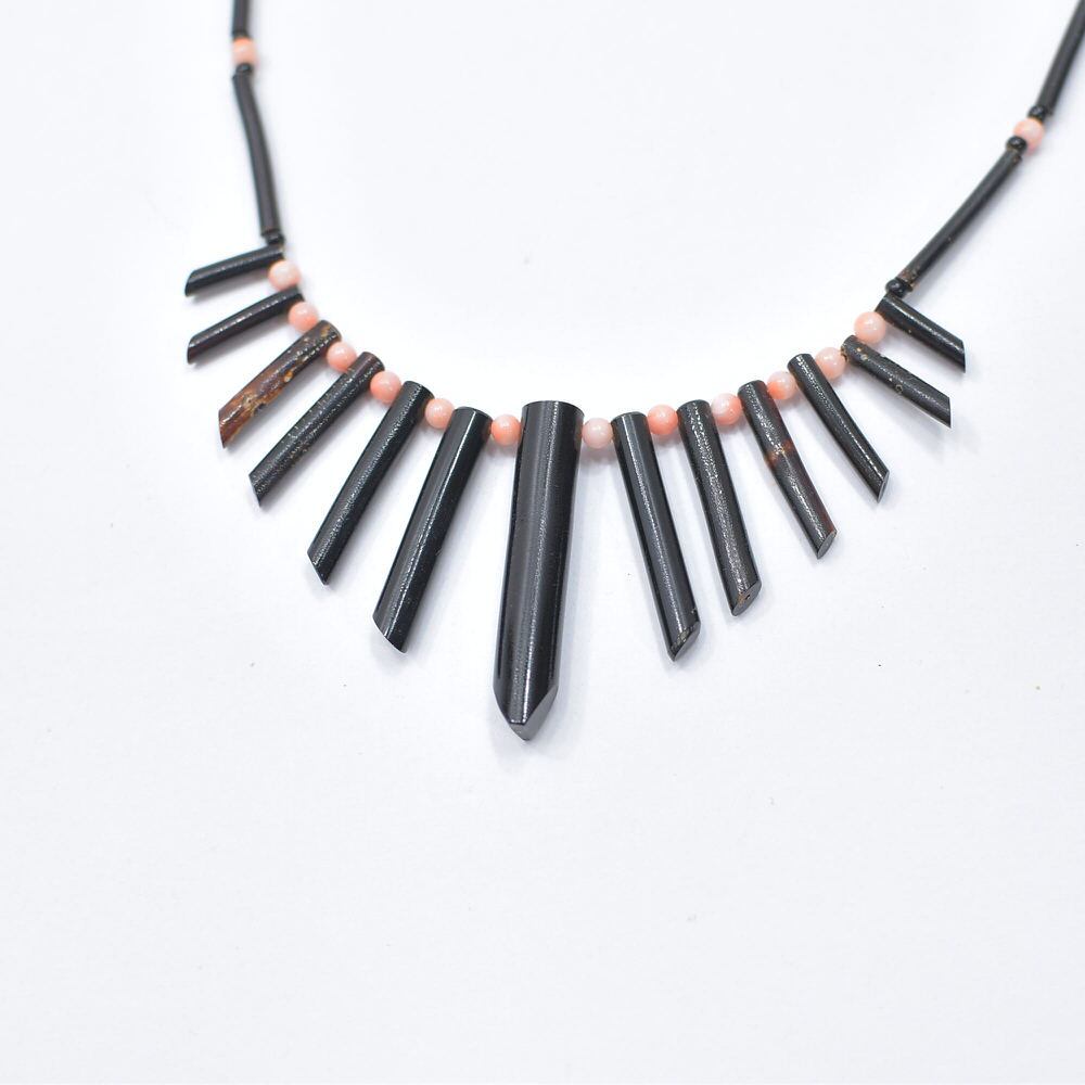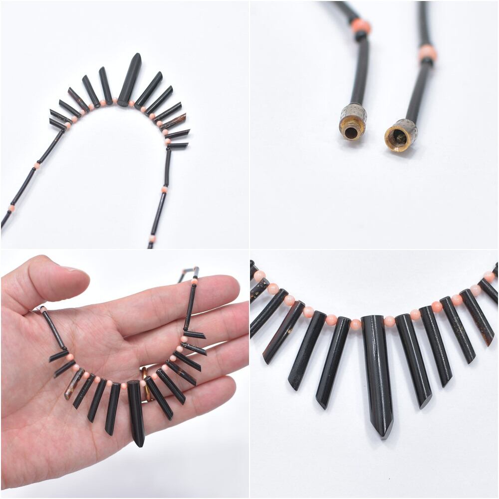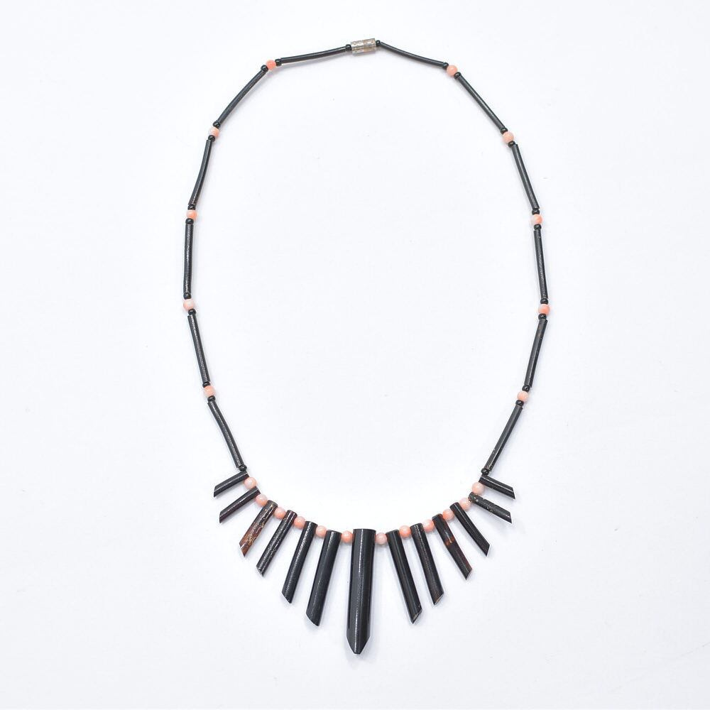 80~90s Vintage ホーン調 スティック デザイン ネックレス チョーカー ブラック コーラルピンク トライバル ジオメトリック アールデコ ヴィンテージ ビンテージ 古着 ユニセックスデザイン