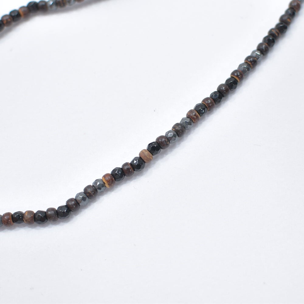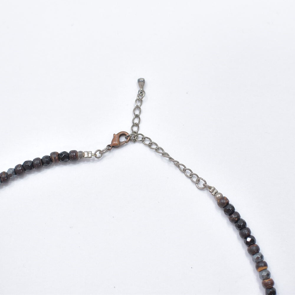 首元で交差する、鈍色の光と、褐色の揺らめき