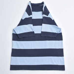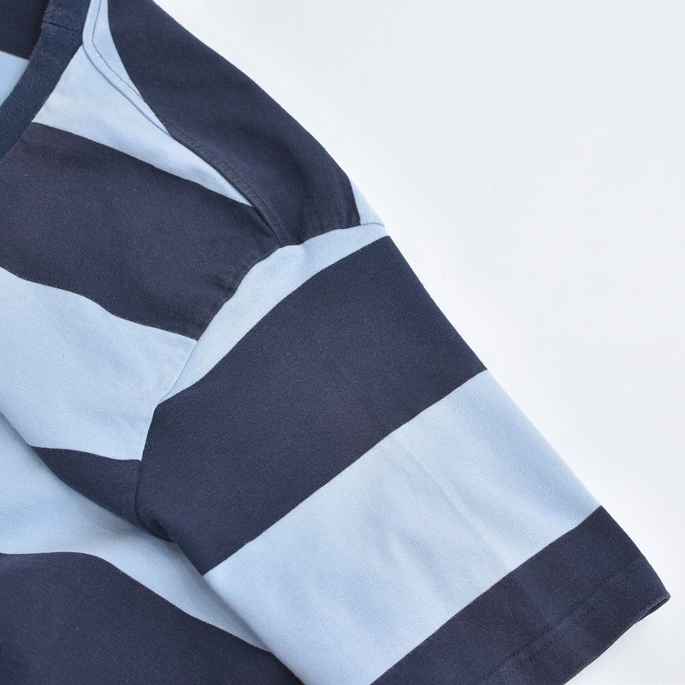 Used ユーズド 太ボーダー クルーネック デザイン Tシャツ カットソー シンプル デザイン ベーシック ヴィンテージ ビンテージ アメリカ古着 ネイビー サックスブルー メンズL相当