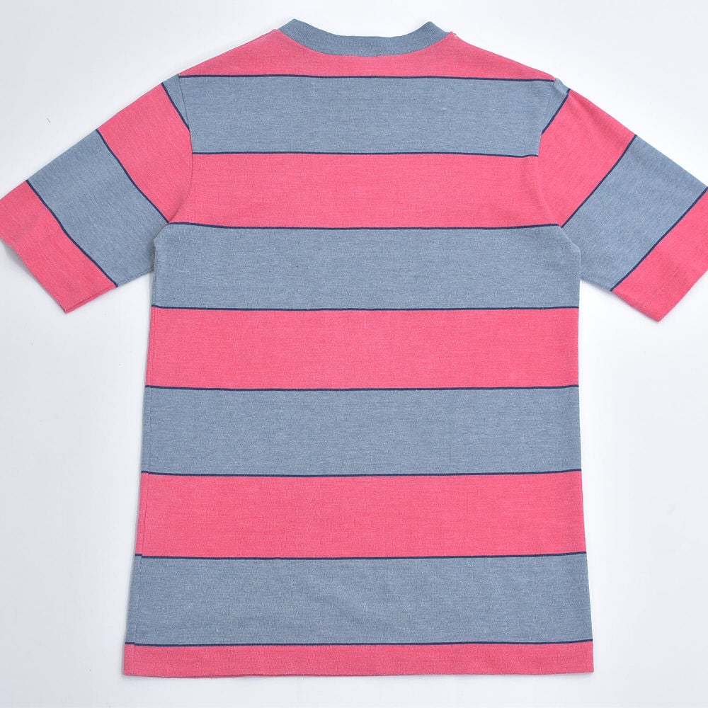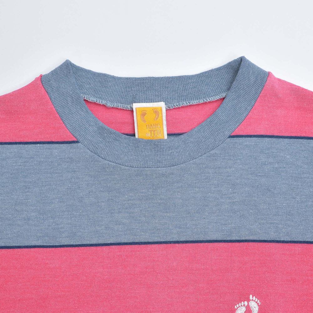 80s〜 Hang Ten ハングテン 刺繍ロゴ 太ボーダー デザイン 半袖 Tシャツ サーフ スケートボード ストリート ヴィンテージ ビンテージ USA アメリカ古着 メンズSサイズ