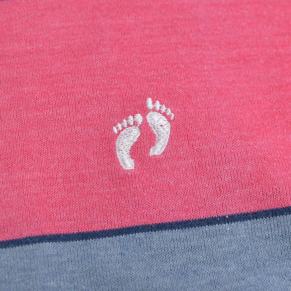 胸にそっと刺繍された、あまりにも有名な二つの足跡