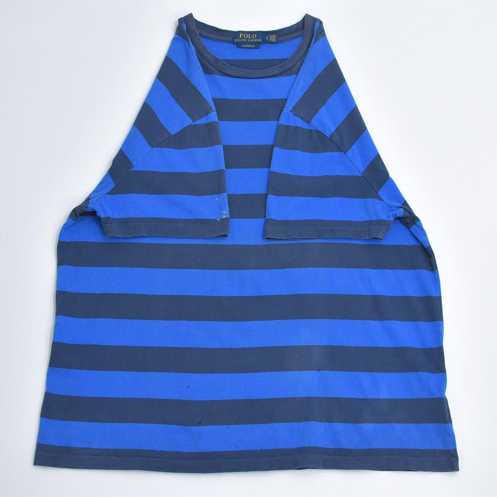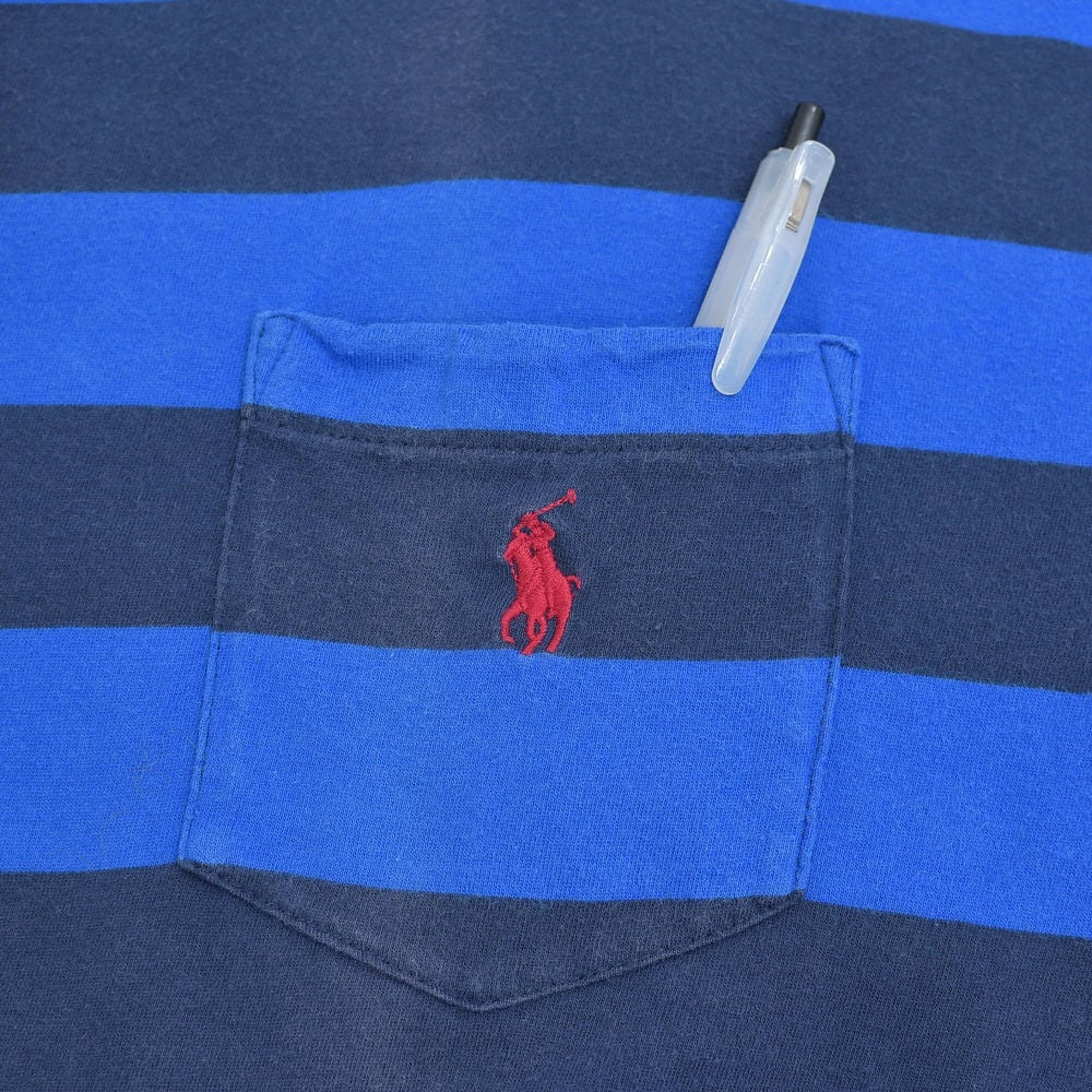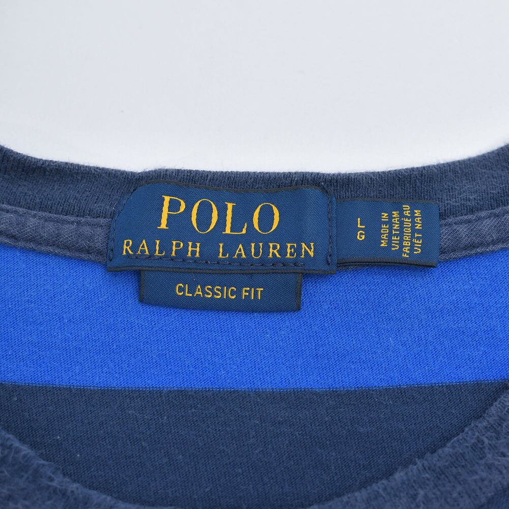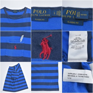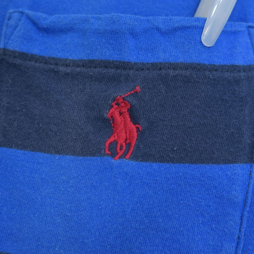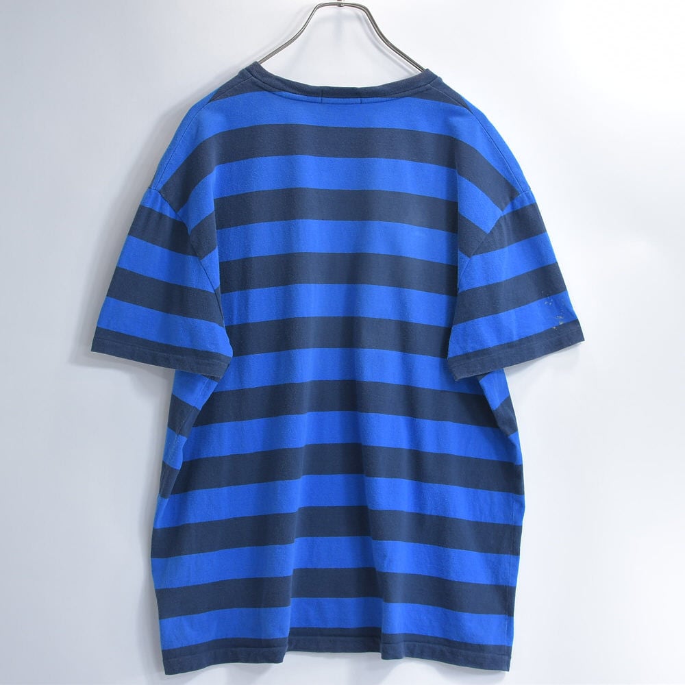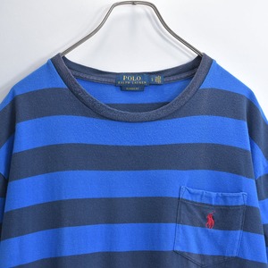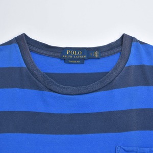 Polo Ralph Lauren ポロラルフローレン クラシックフィット ボーダー柄 半袖ポケットTシャツ ポニー 刺繍ロゴ ヴィンテージ ビンテージ USA アメリカ古着 ブルー メンズLサイズ