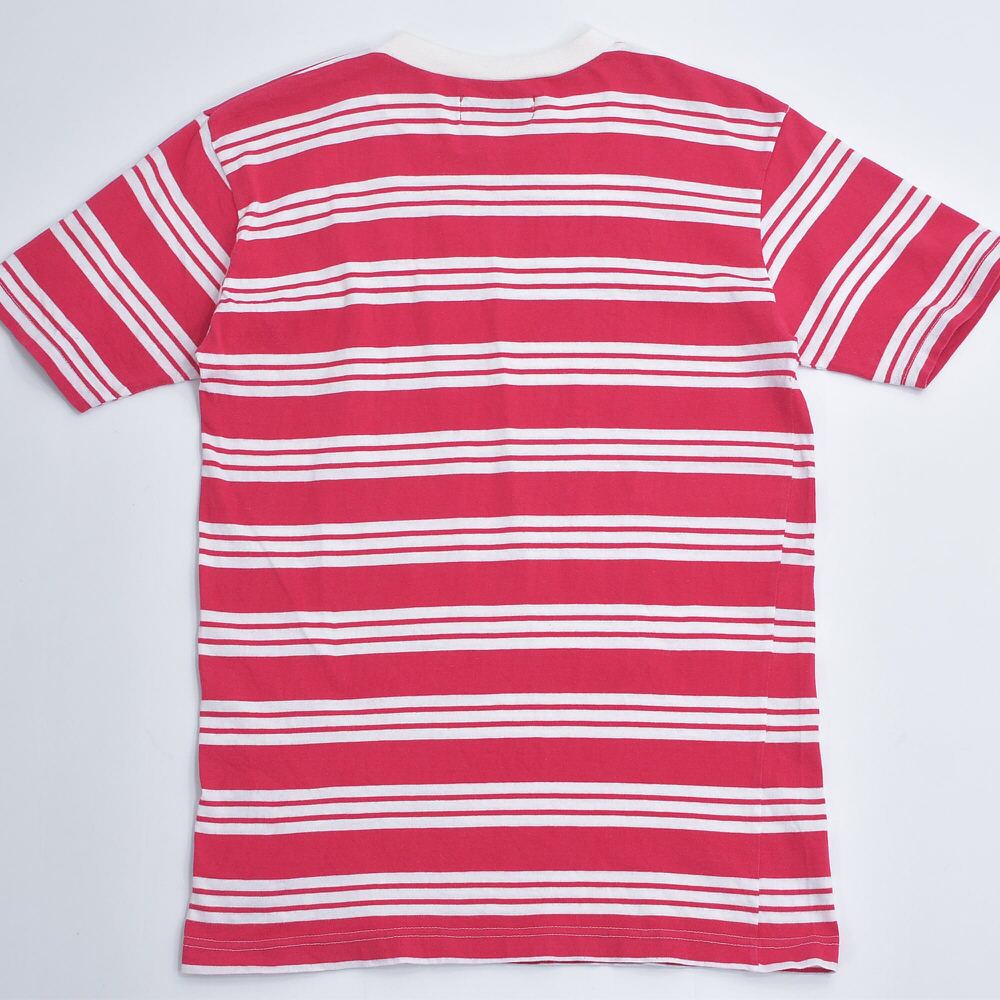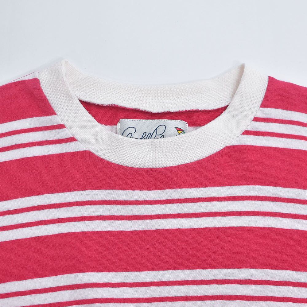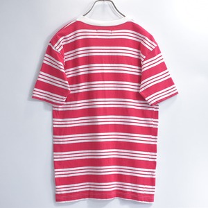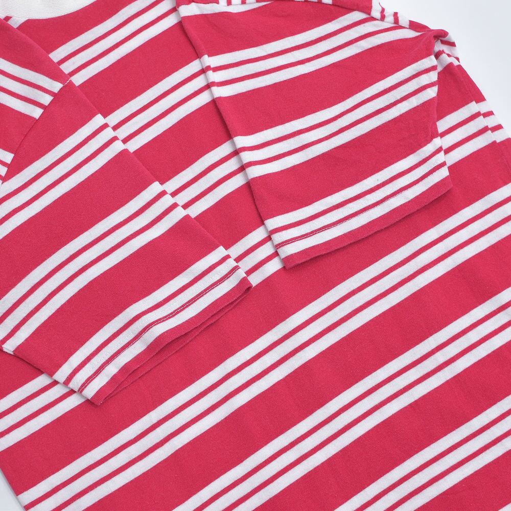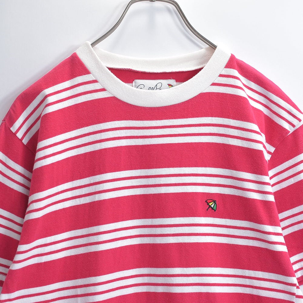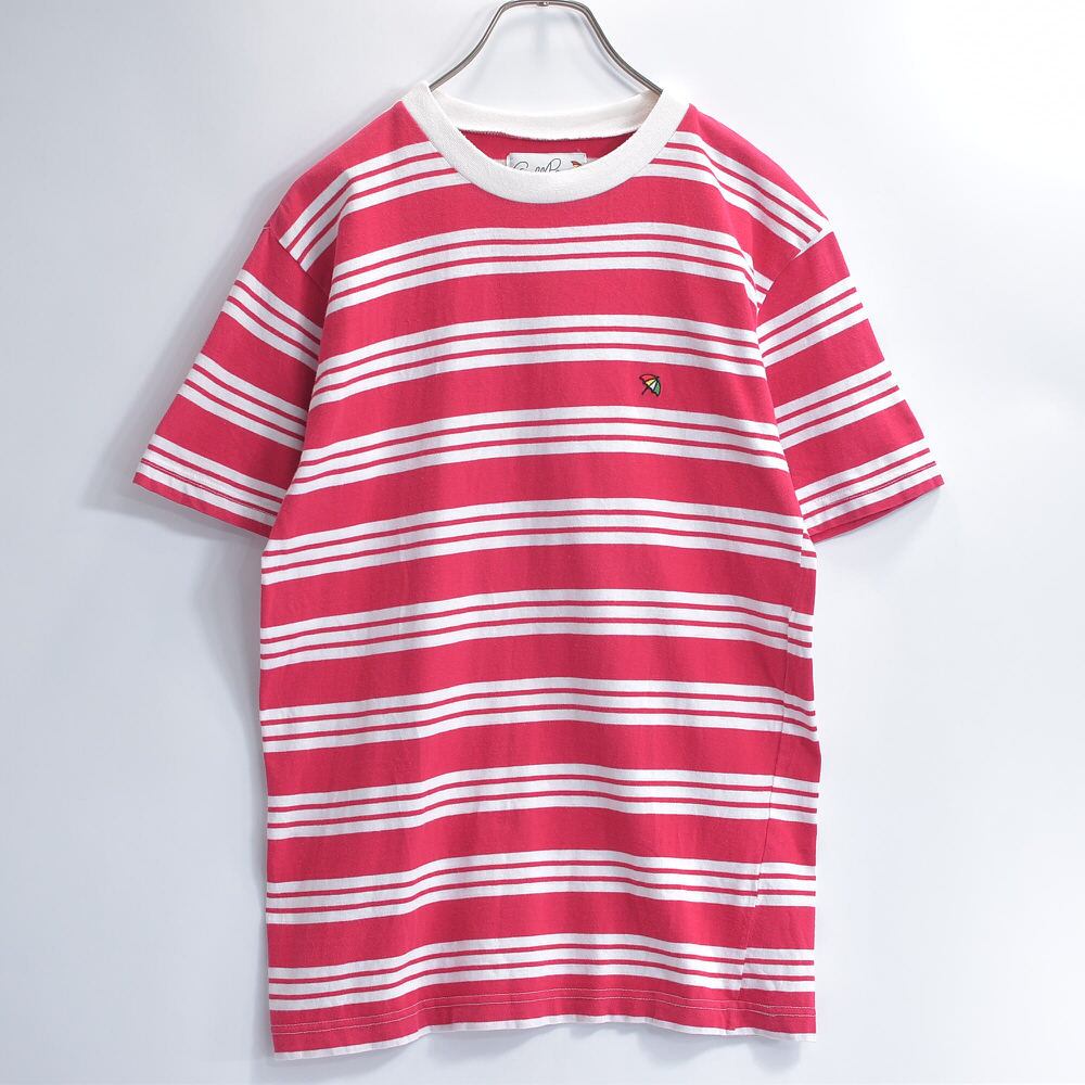 Arnold Palmer アーノルドパーマー ワンポイント ロゴ刺繍 デザイン ボーダーTシャツ 半袖 レトロ ゴルフ ヴィンテージ ビンテージ 古着 ホワイト レッド メンズS相当