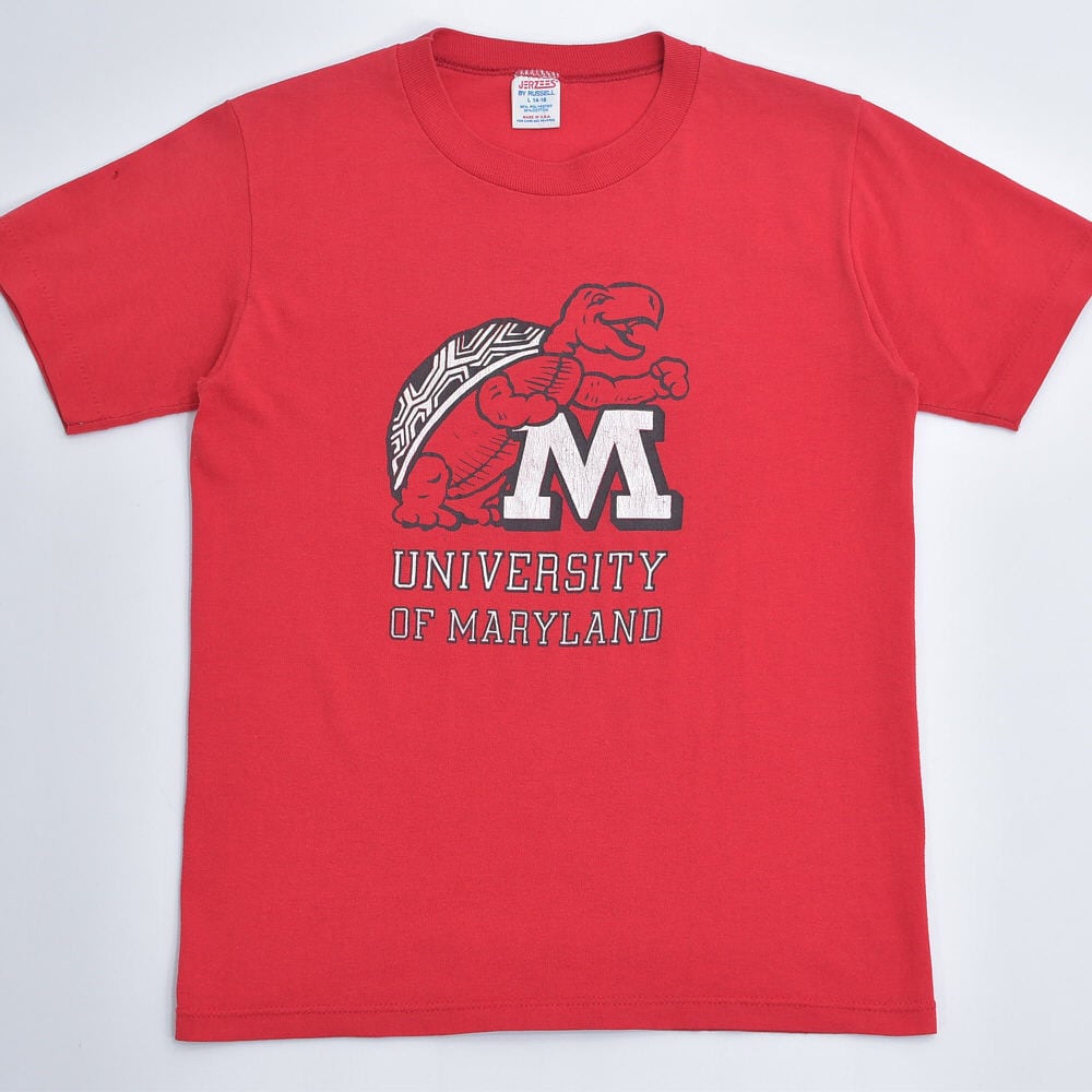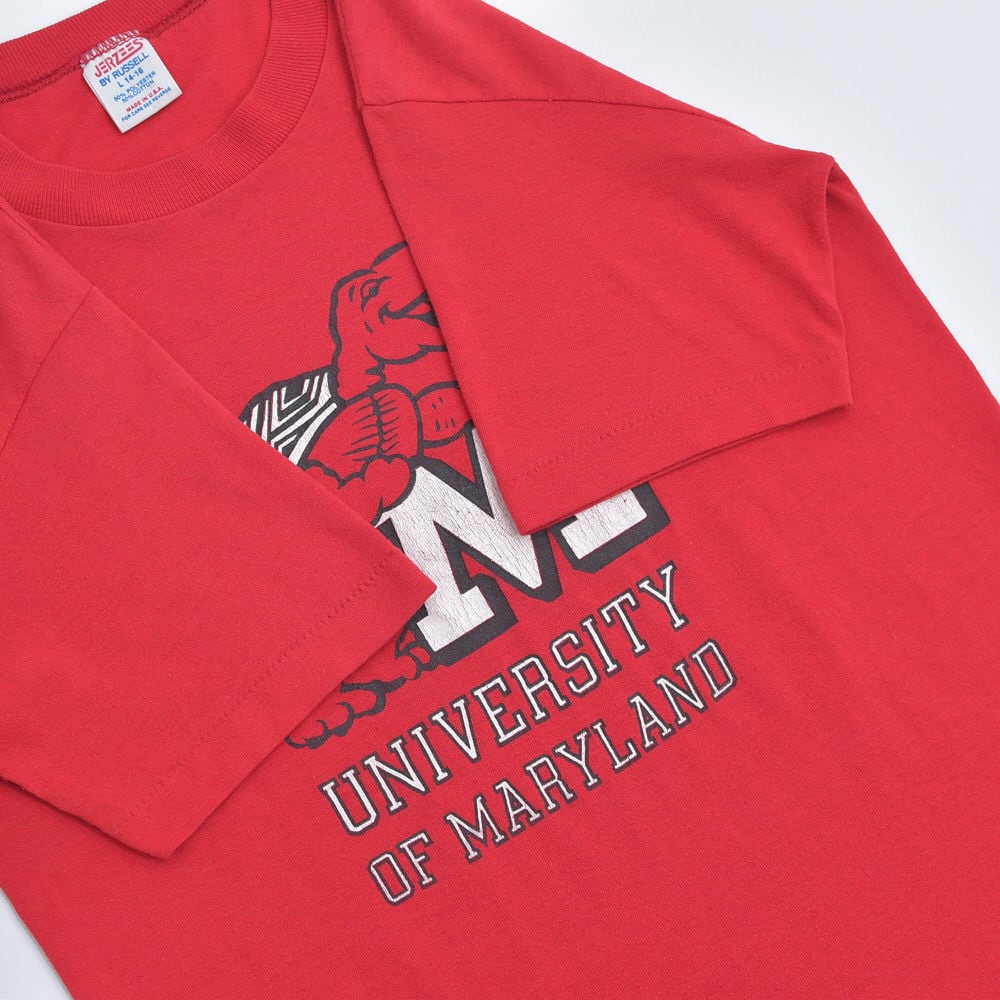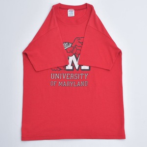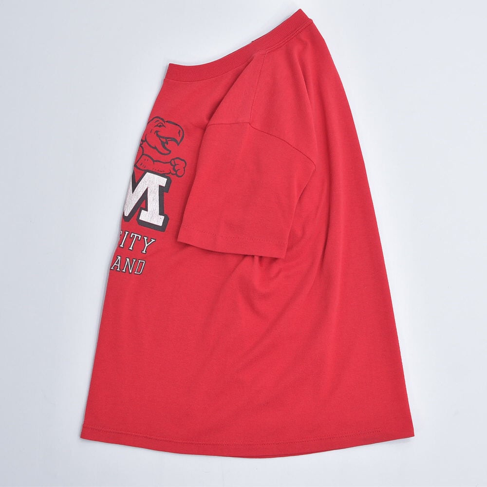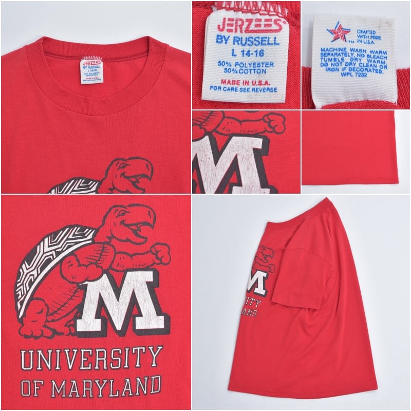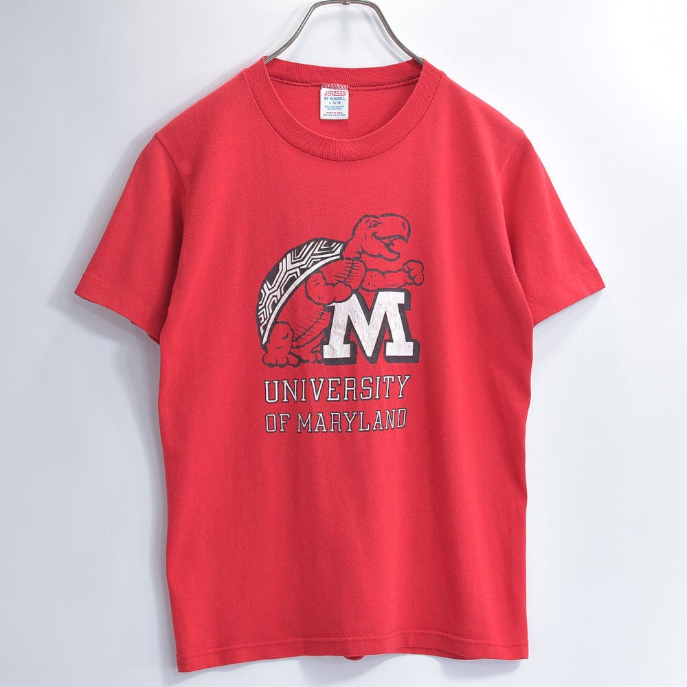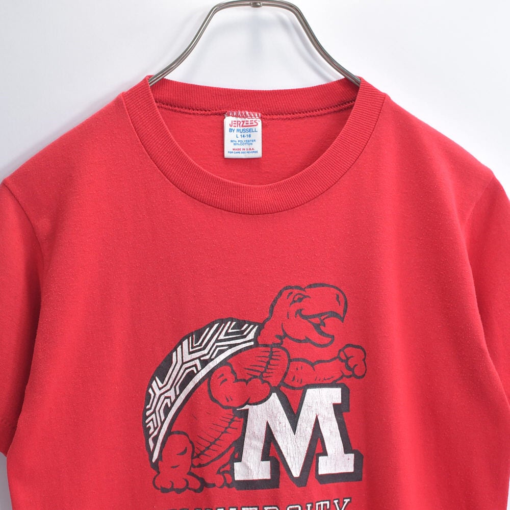 80s USA製 JERZEES by RUSSELL ジャージーズ メリーランド大学 カレッジロゴ プリント Tシャツ マスコット アメカジ ヴィンテージ ビンテージ 古着 レッド レディースM相当