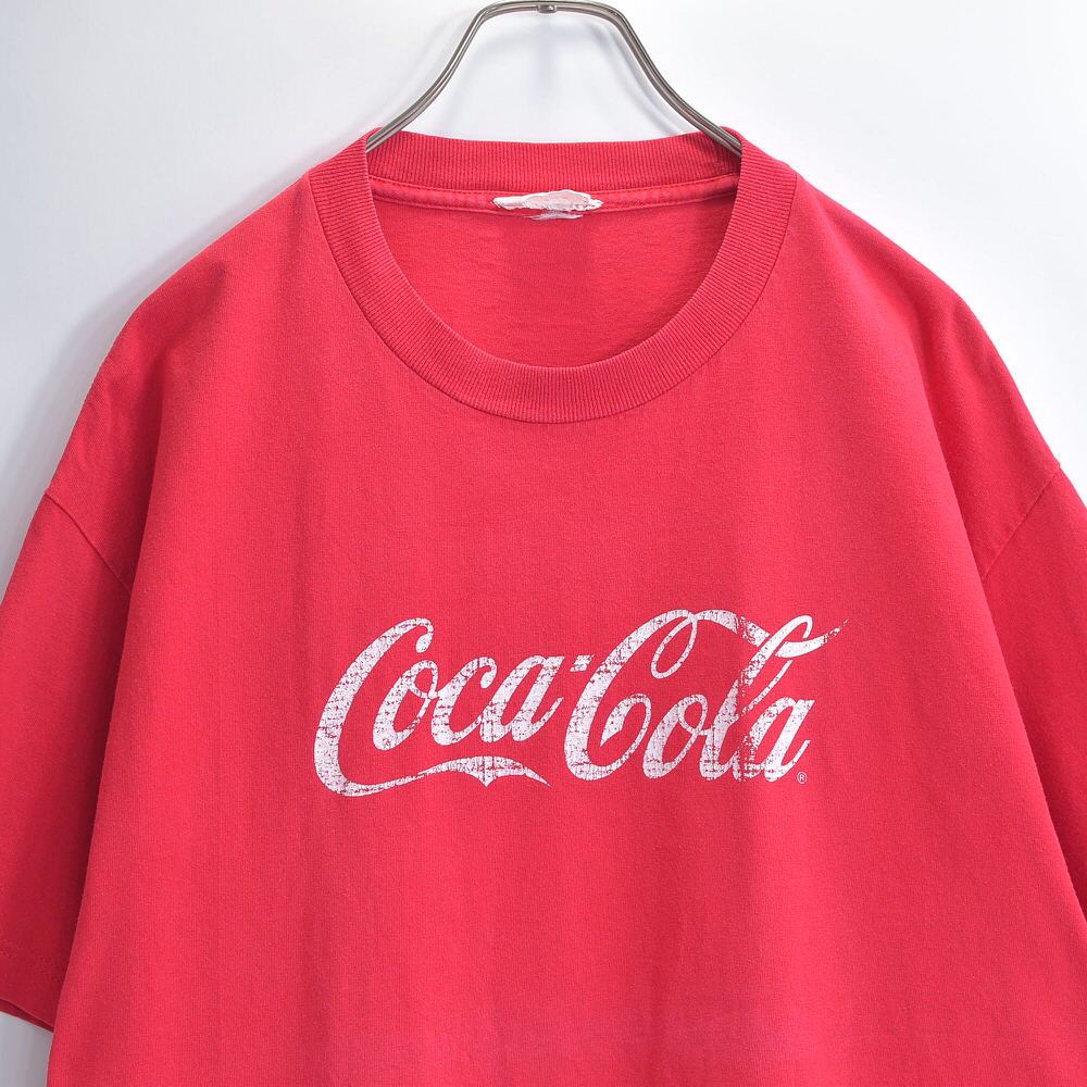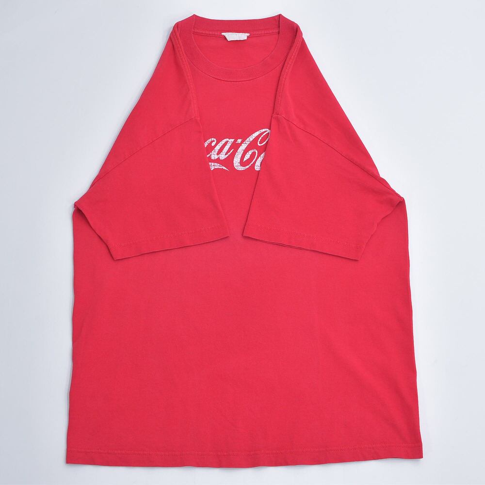 90s~ Coca-Cola コカ・コーラ 企業ロゴ プリント Tシャツ スクリプトロゴ アドバタイジング ドリンク ヴィンテージ カットソー ビンテージ 古着 レッド メンズL相当
