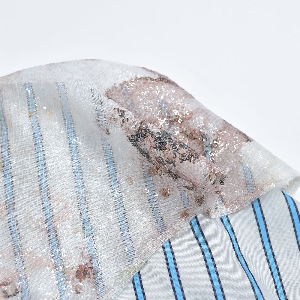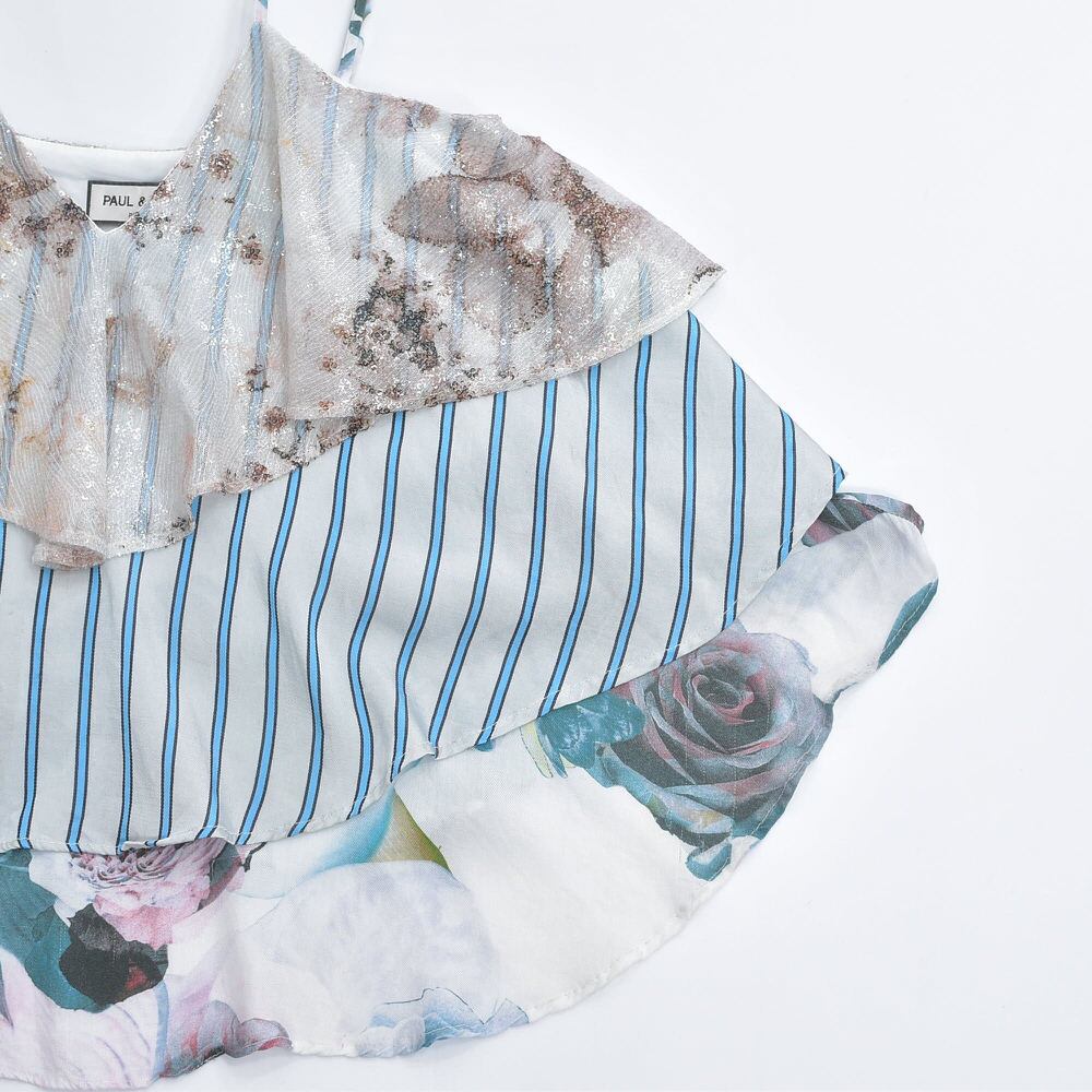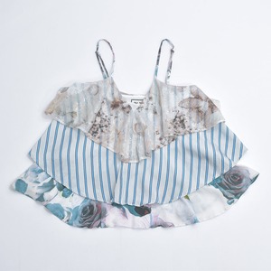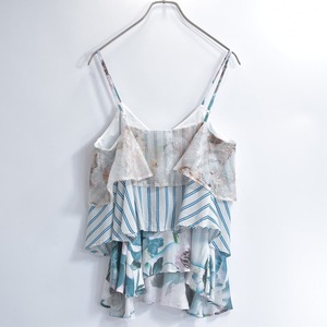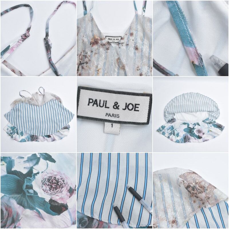 00s〜 フランス製 PAUL & JOE ポールアンドジョー ティアード キャミソール 切替デザイン スパンコール 花柄 ストライプ ヴィンテージ ビンテージ ヨーロッパ古着 レディースS相当