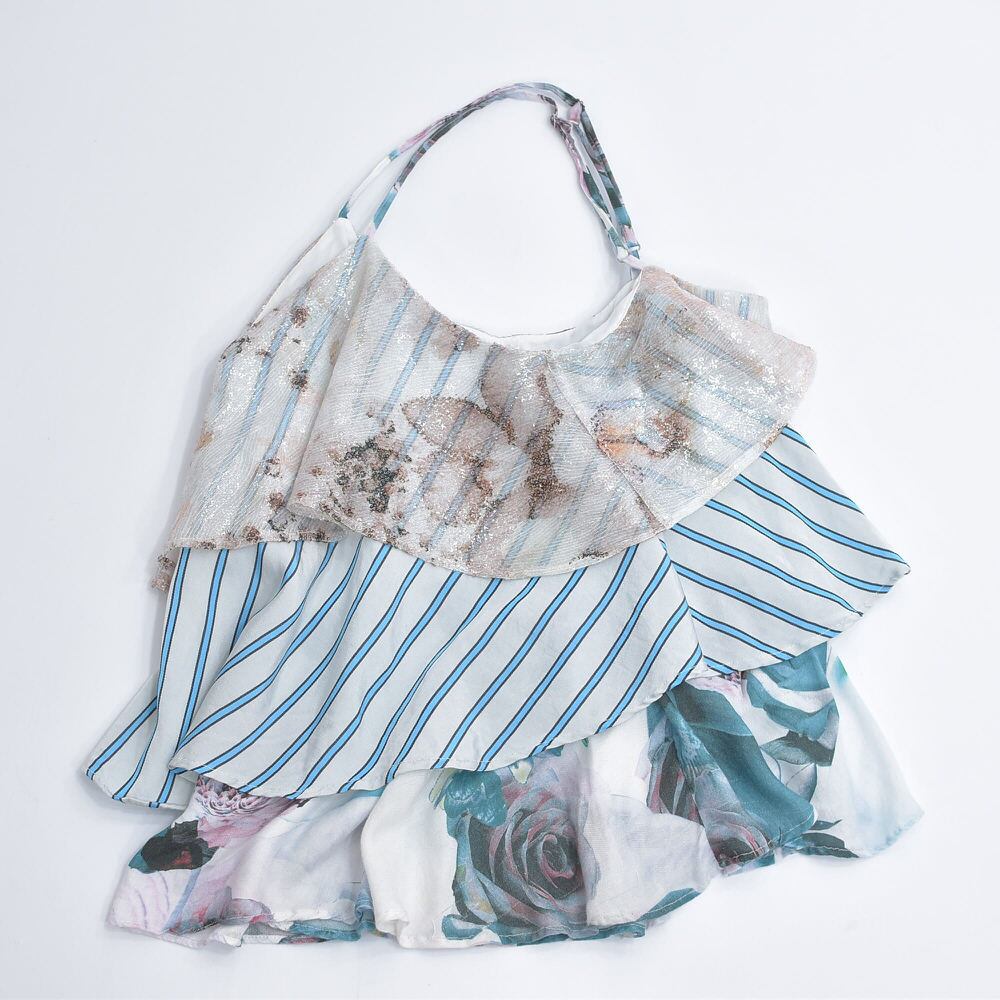 ・使用感や、画像の様に右ストラップの軽いほつれ、ストライプの生地に小さな薄汚れや、花柄の生地の糸抜けによる横筋のキズなどありますが、その他目立つ汚れ、ダメージは見当たらず、日常的に古着を着用されている方であれば、問題無く着用して頂けると思います