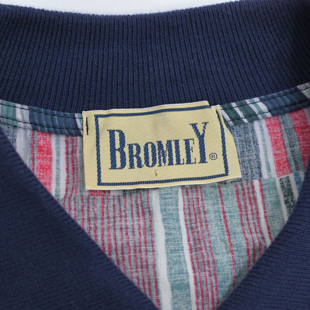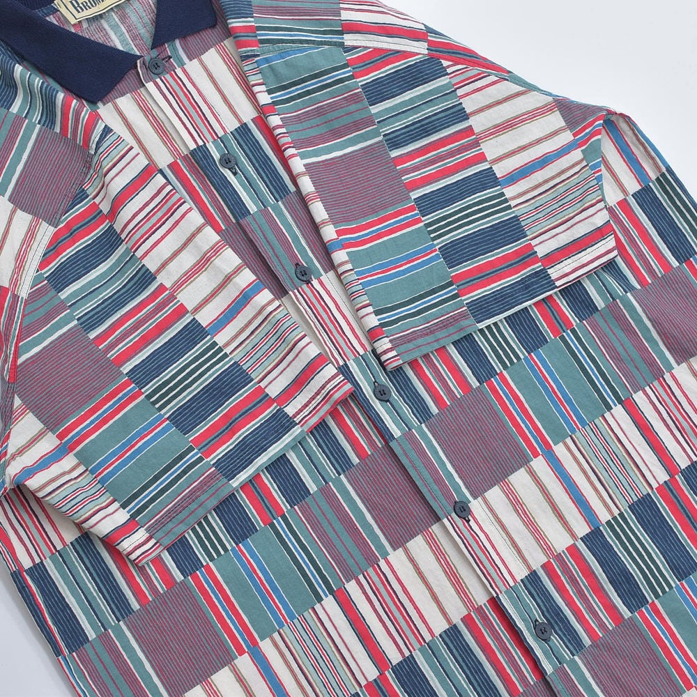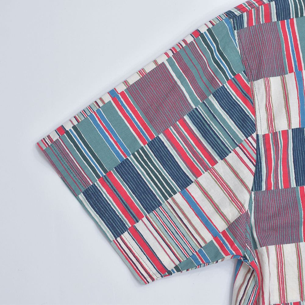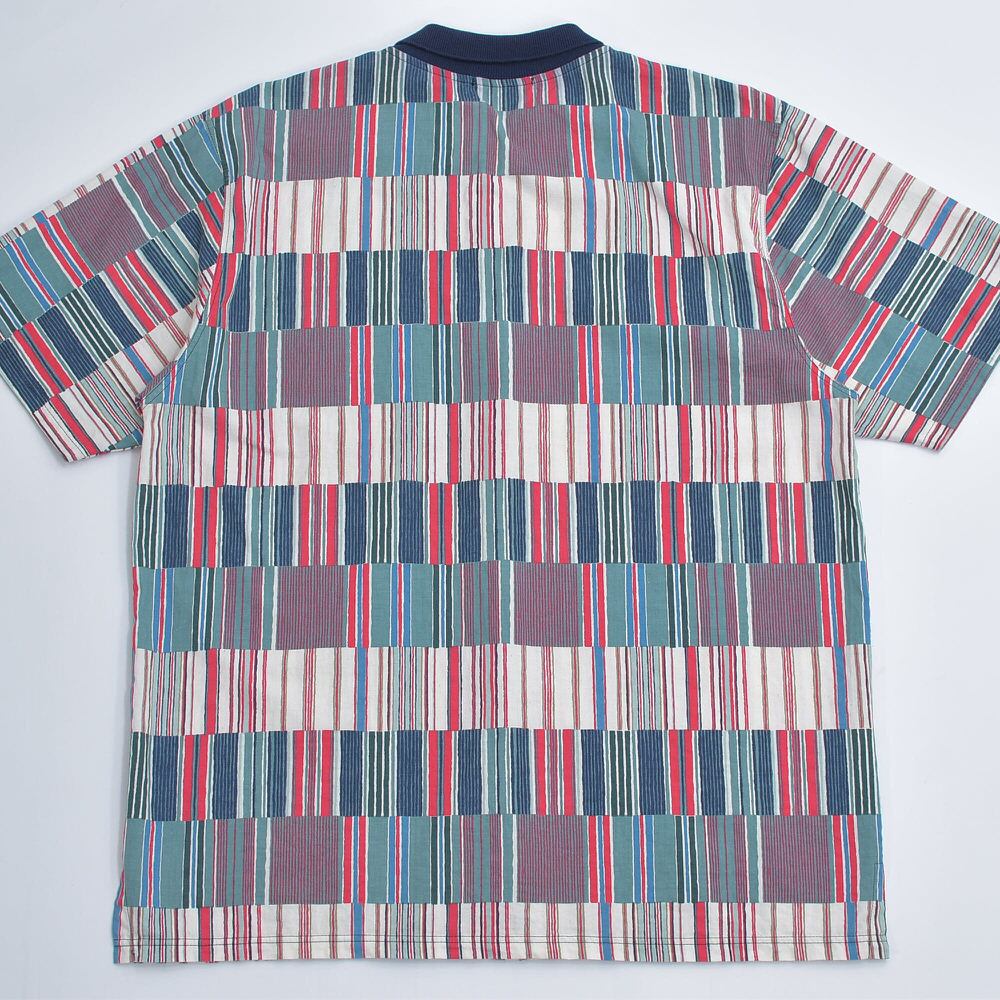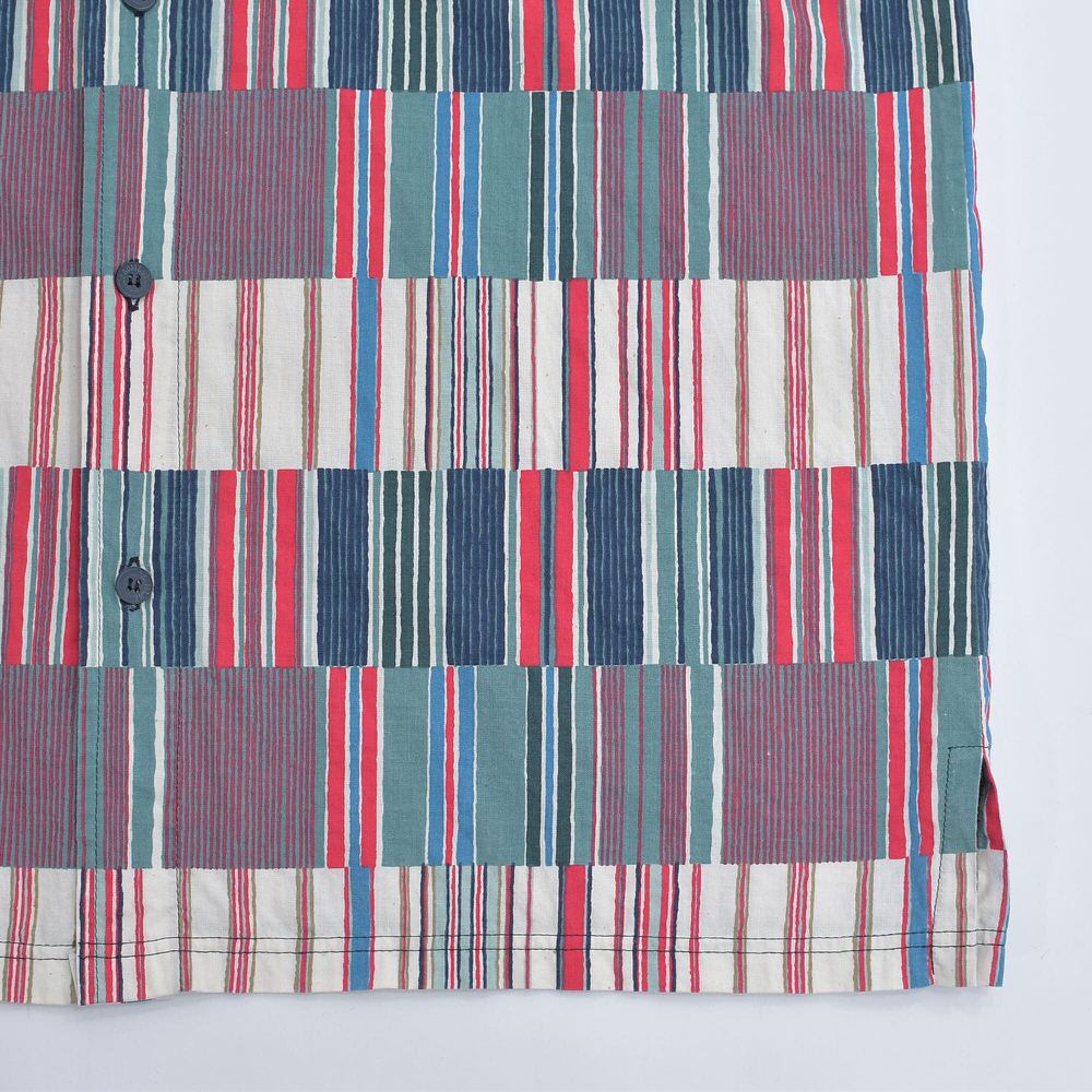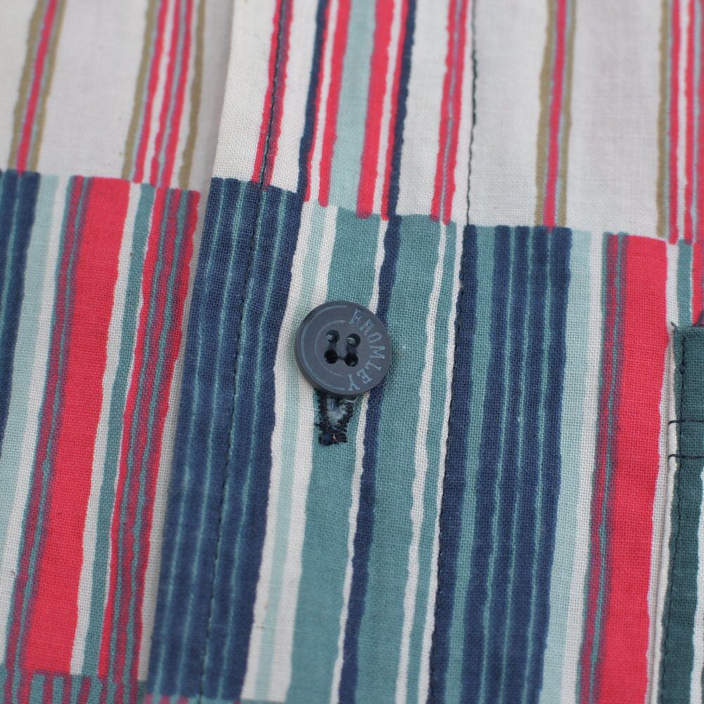 80~90s イタリア製 BROMLEY ブロムリー 襟切替 パッチワーク風 マルチストライプ 総柄 半袖 シャツ マルチカラー ヴィンテージ ブルー ビンテージ ヨーロッパ古着 メンズ XL相当