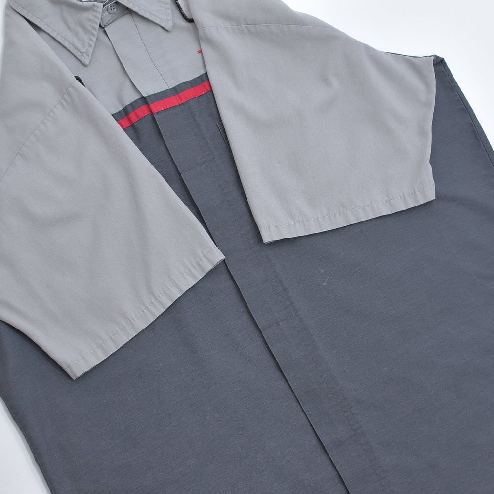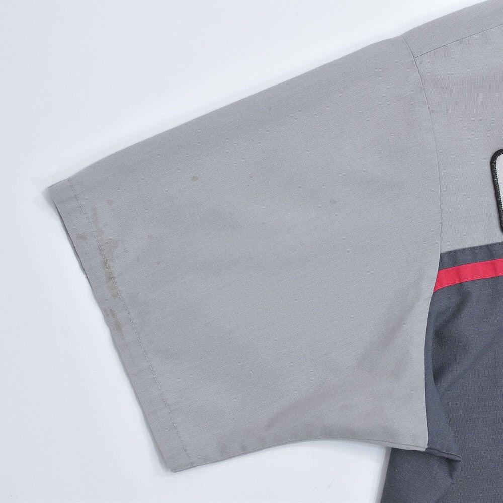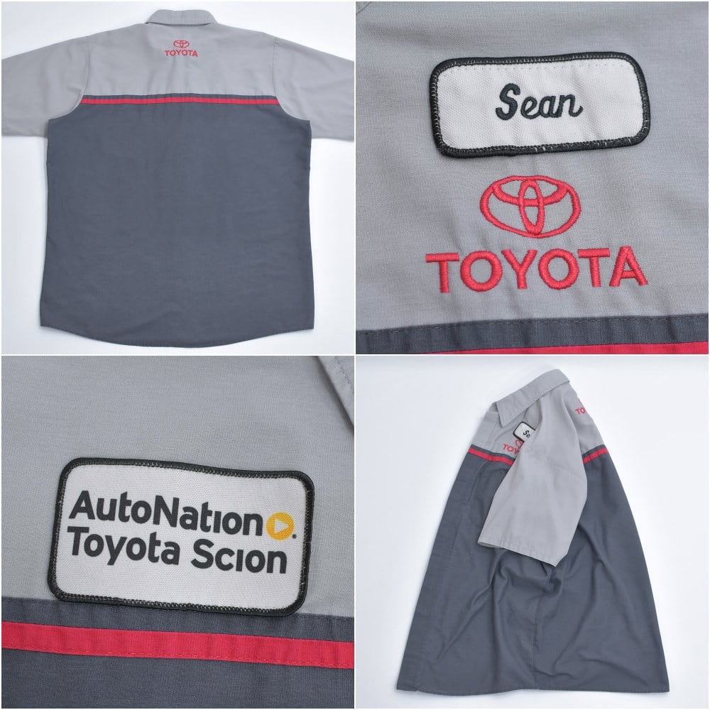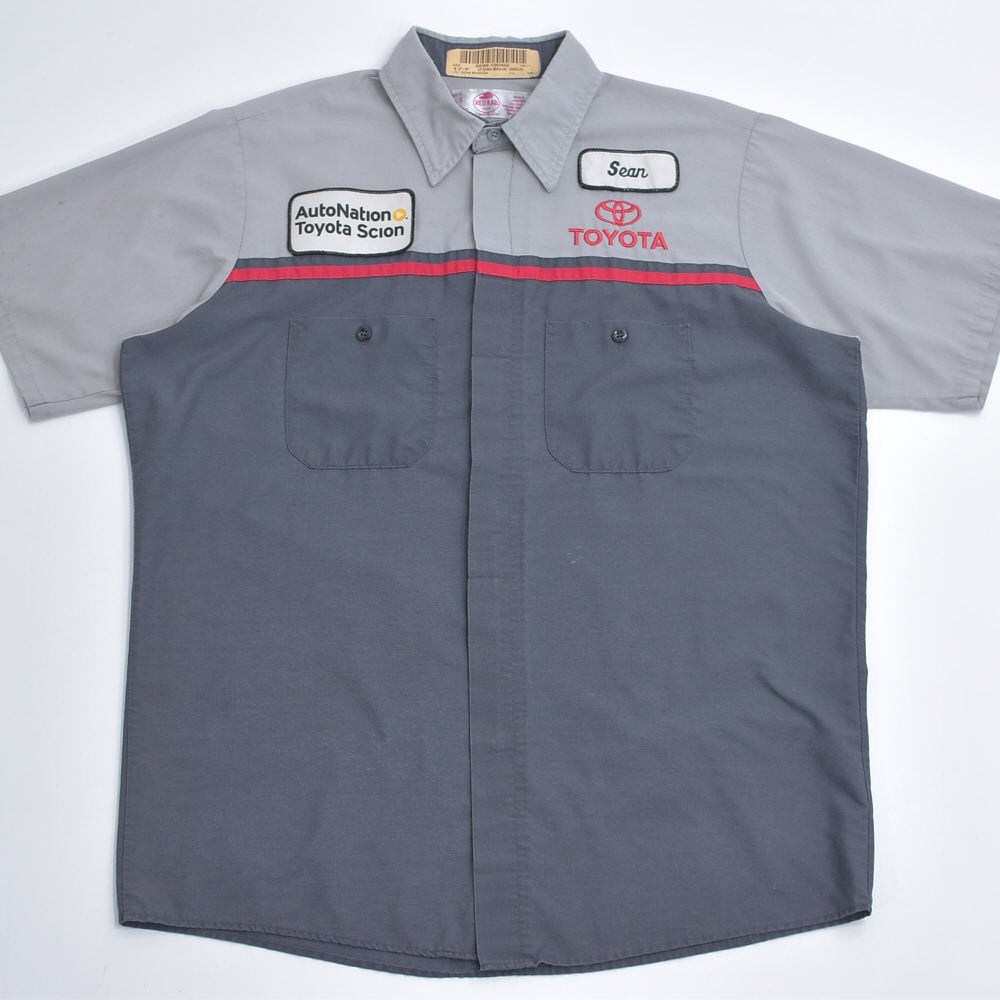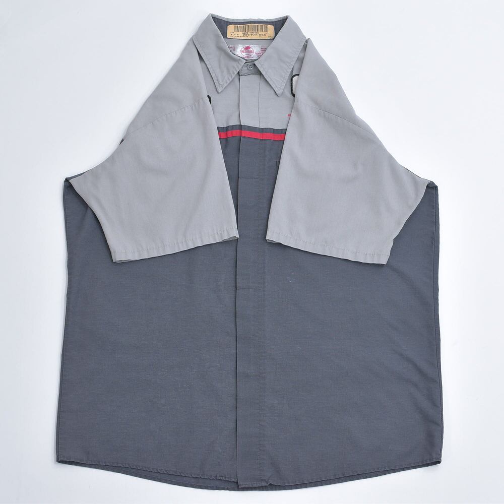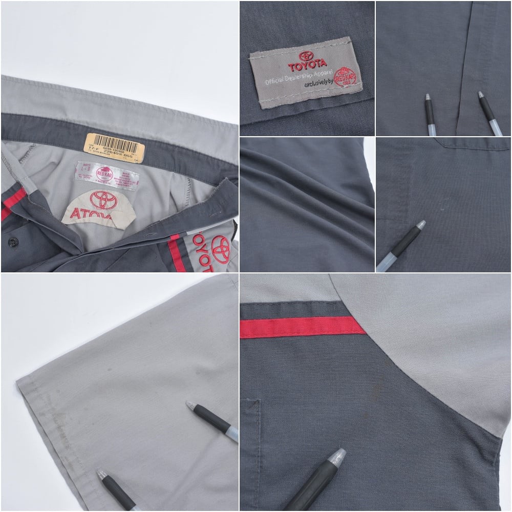 00s RED KAP レッドキャップ TOYOTA ワークシャツ ワッペン 刺繍入り シャツ 半袖 配色デザイン バイカラー グレー チャコールグレー トヨタ 自動車 作業服 ヴィンテージ ビンテージ アメリカ古着 メンズ Lサイズ