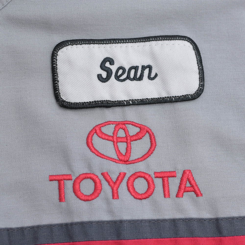 胸に刻まれた「Sean」の名と、企業ロゴの刺繍