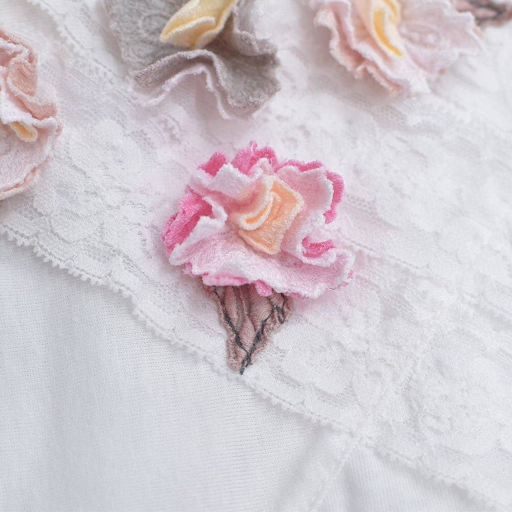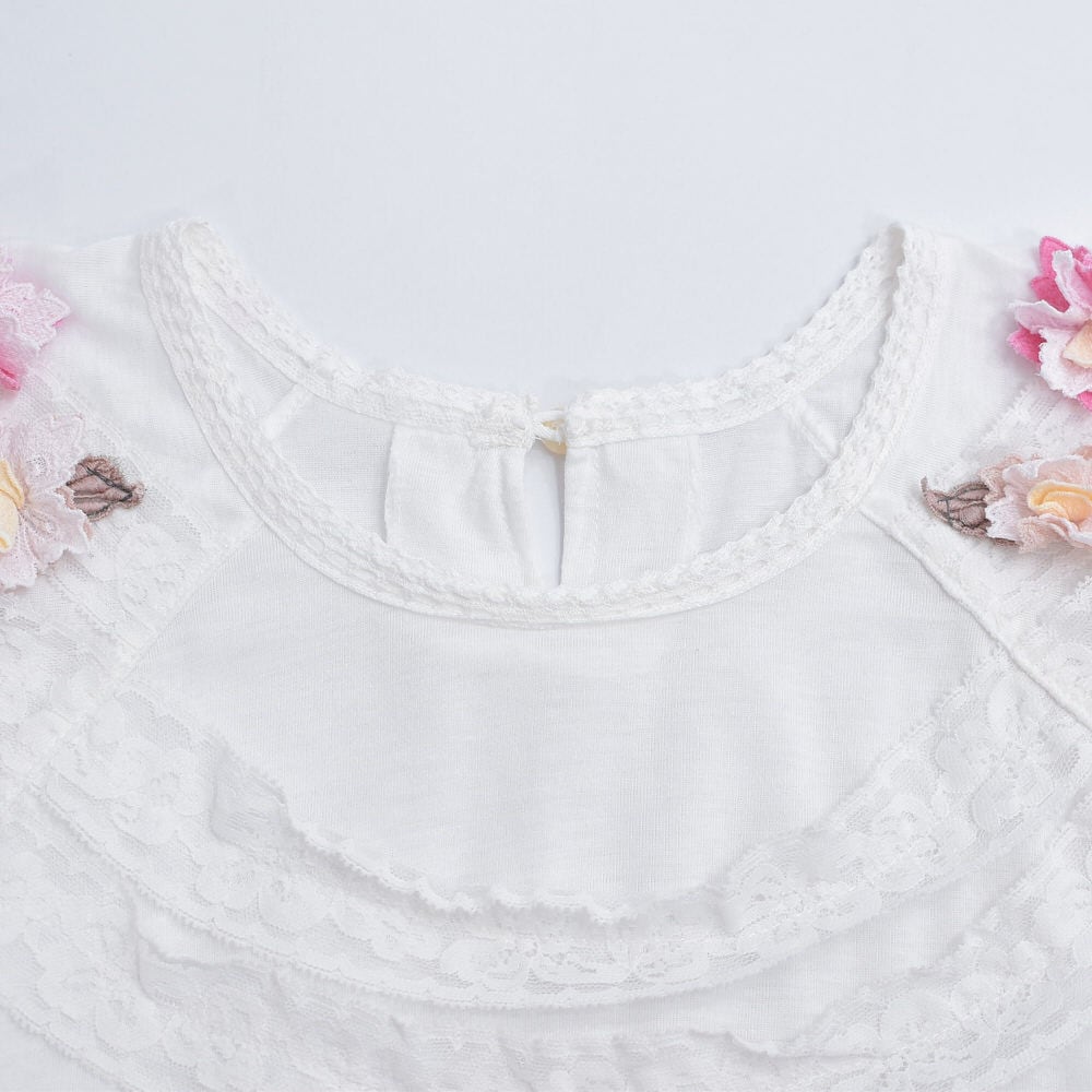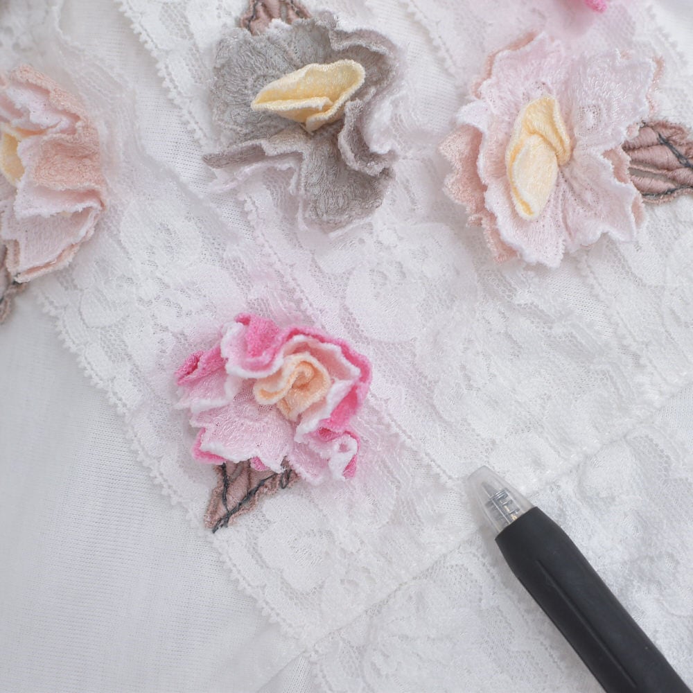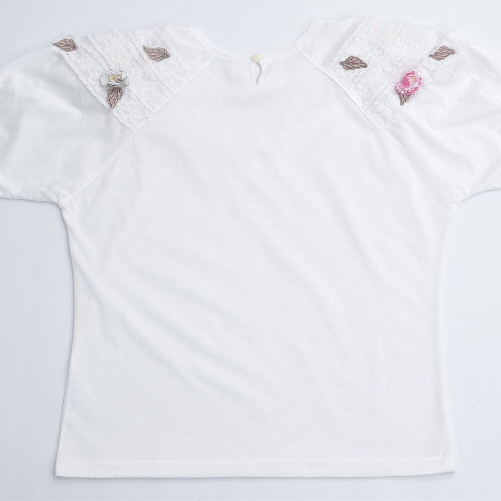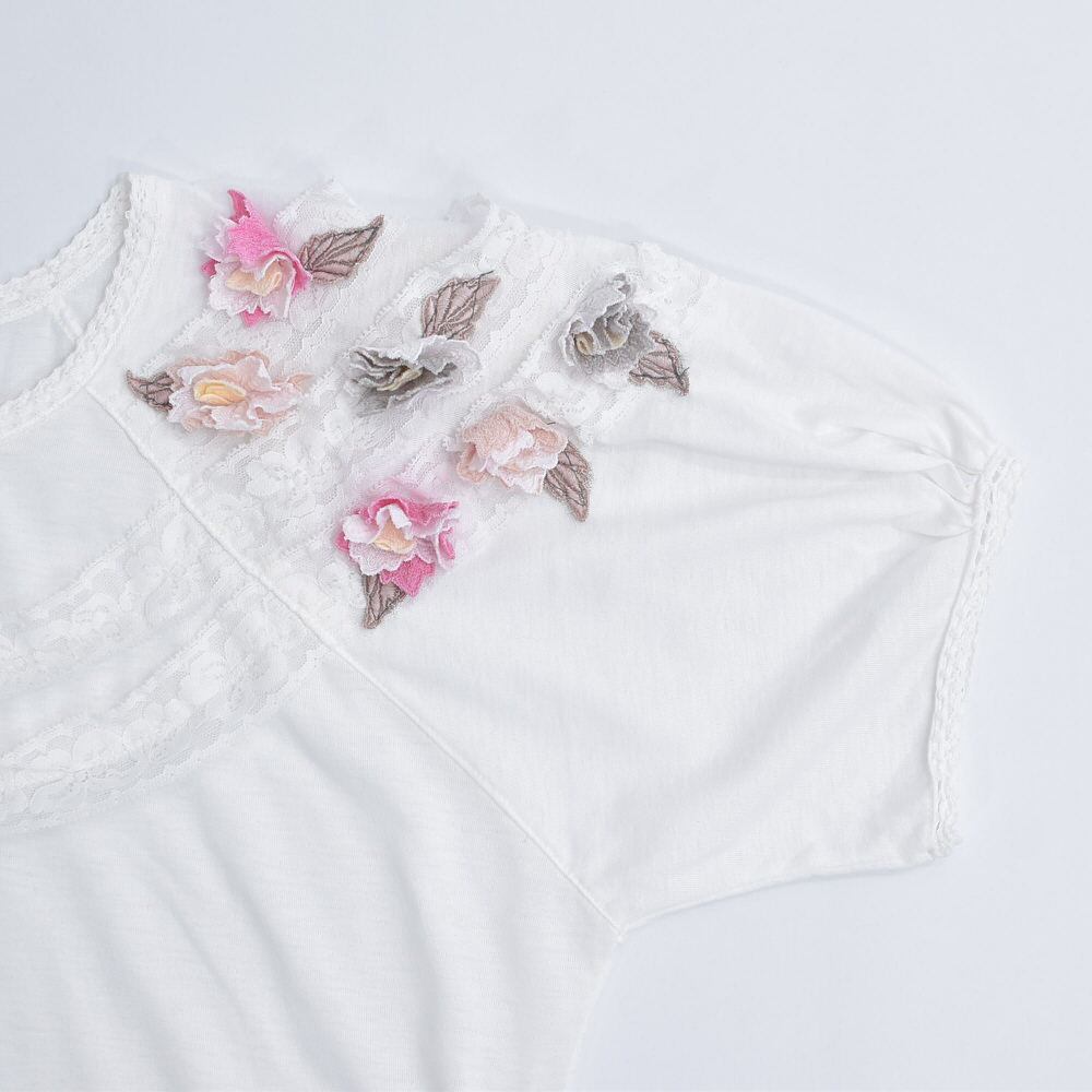 Used 3Dフラワーモチーフ 立体 花刺繍 レース使い パフスリーブ カットソー ファンシー レトロ Tシャツ ホワイト ヴィンテージ ビンテージ 古着 レディース サイズ相当