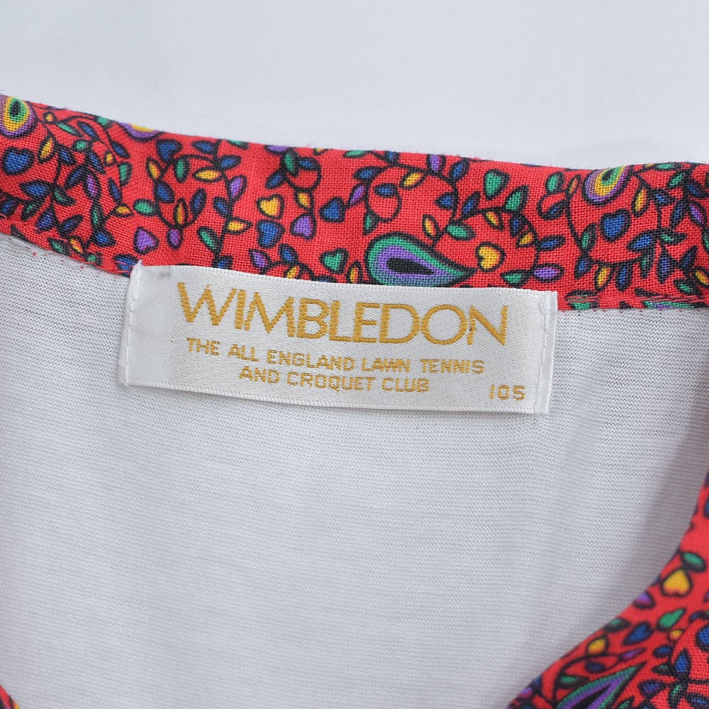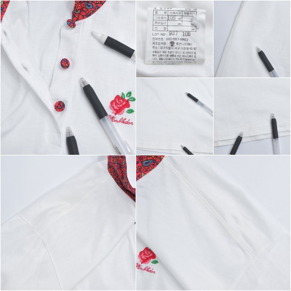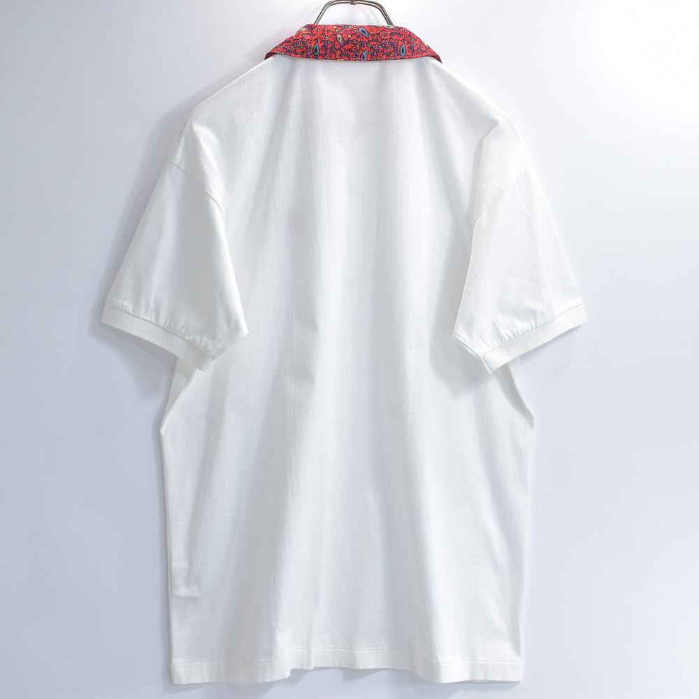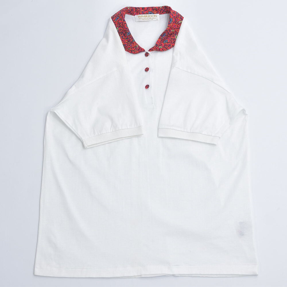 90s~ WIMBLEDON ウィンブルドン ペイズリー柄 襟切替デザイン 刺繍入り ポロシャツ ローズ 薔薇 テニスウェア ホワイト レッド ヴィンテージ ビンテージ 古着 レディース L相当