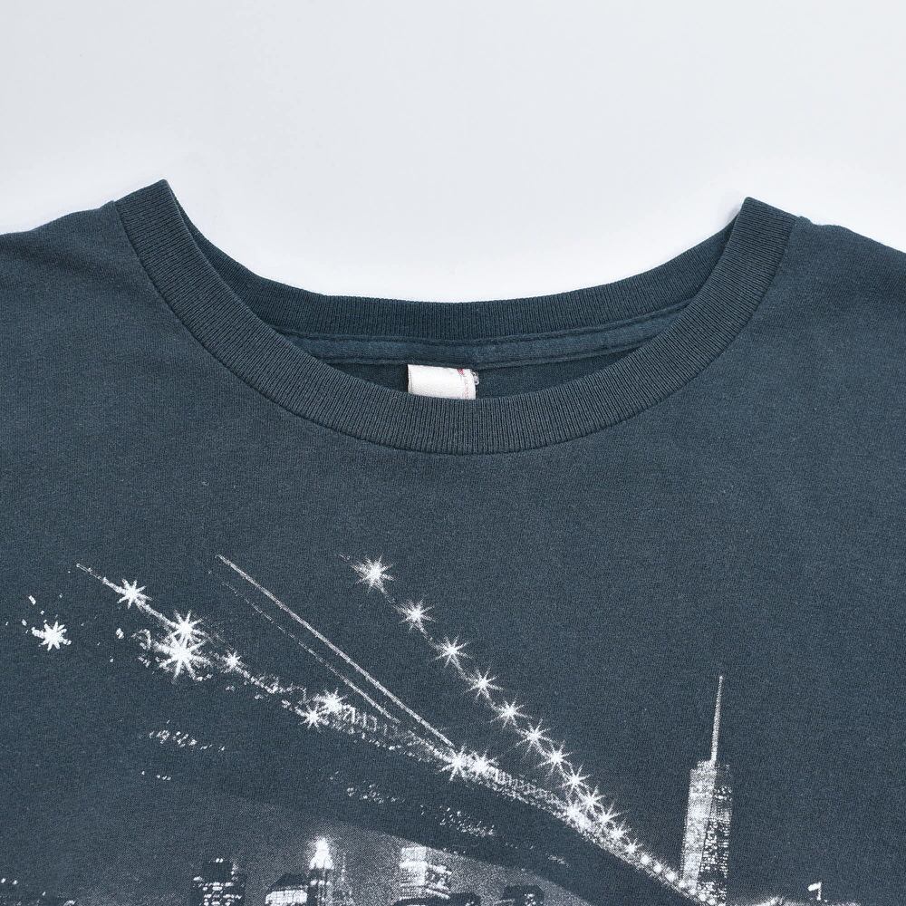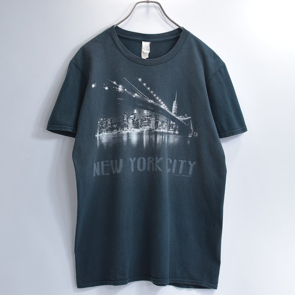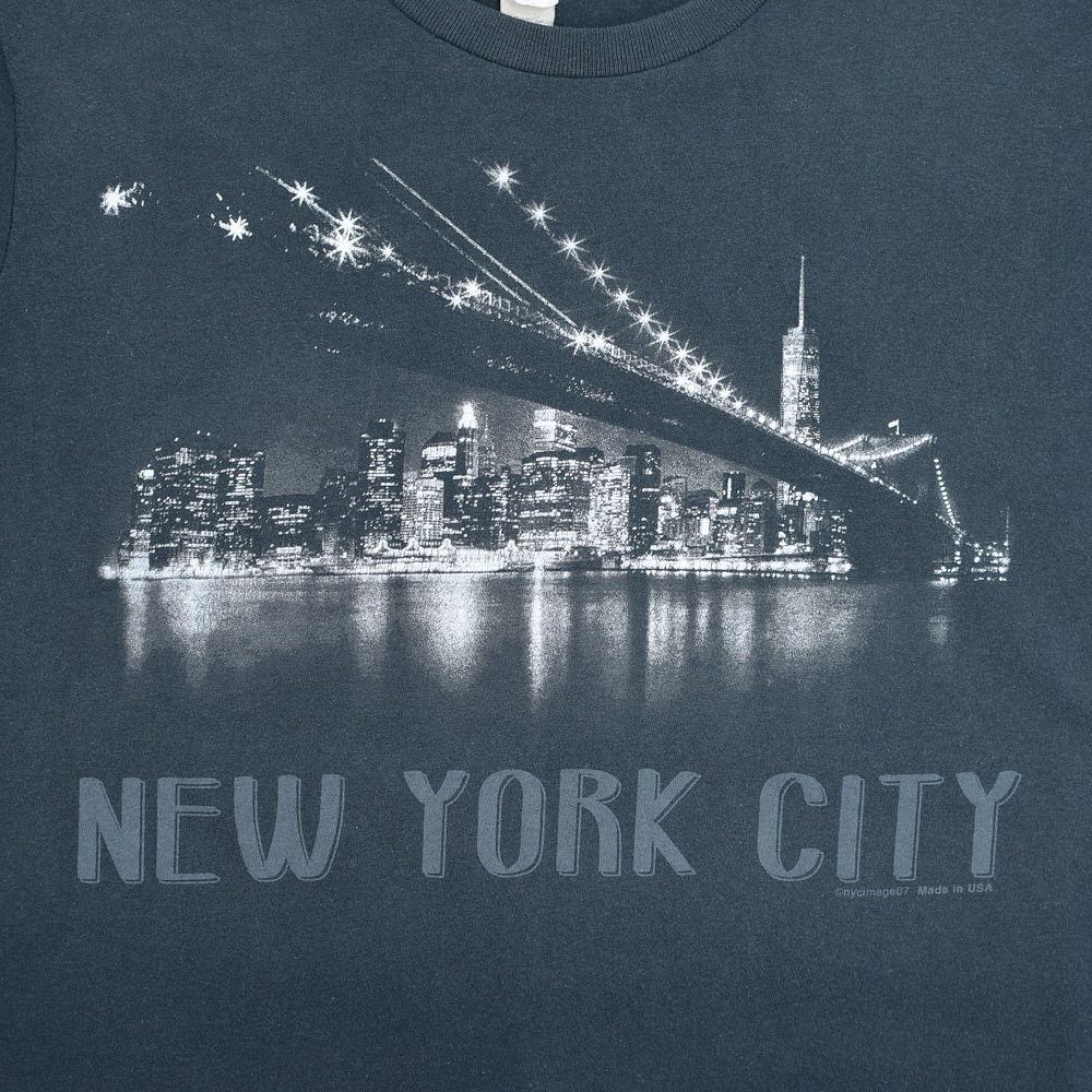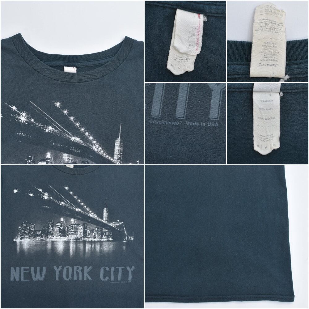90~00s USA製 anvil アンビル NEW YORK CITY 夜景 フォトプリント アート Tシャツ 半袖 ニューヨーク スーベニア お土産 ヴィンテージ フェードブラック ビンテージ アメリカ古着 メンズ Mサイズ