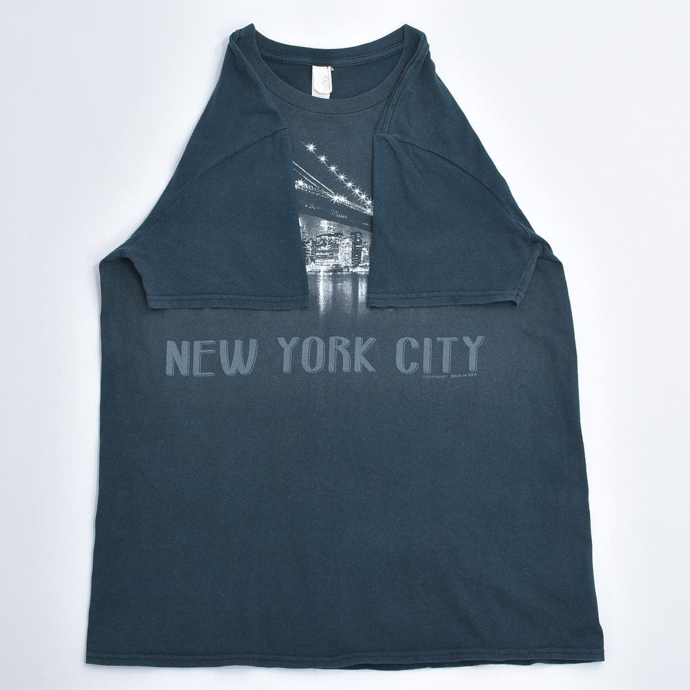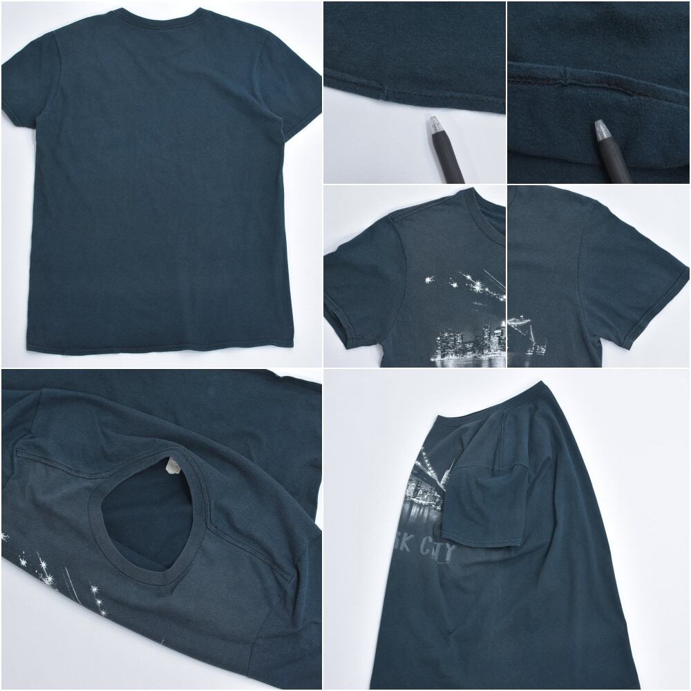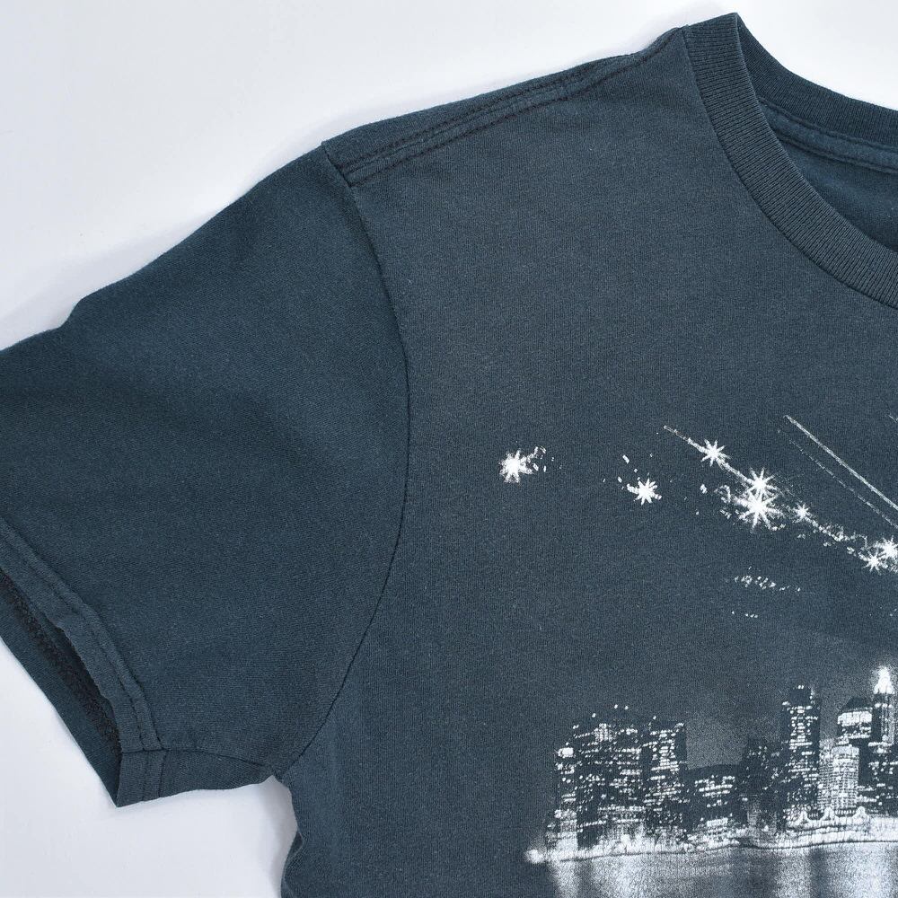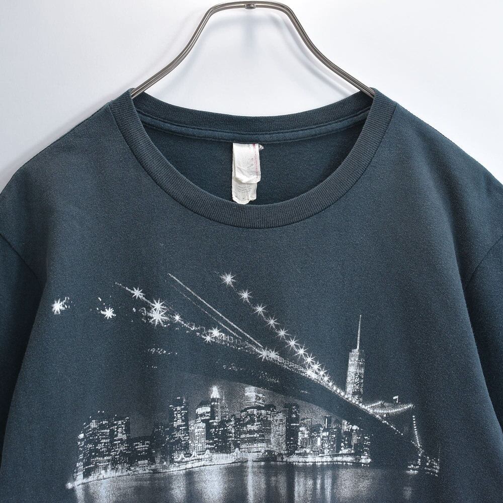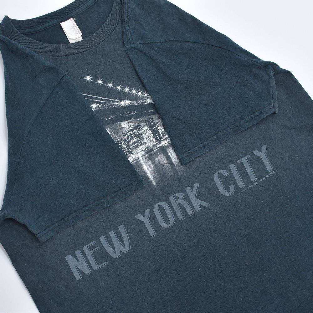 90~00s USA製 anvil アンビル NEW YORK CITY 夜景 フォトプリント アート Tシャツ 半袖 ニューヨーク スーベニア お土産 ヴィンテージ フェードブラック ビンテージ アメリカ古着 メンズ Mサイズ