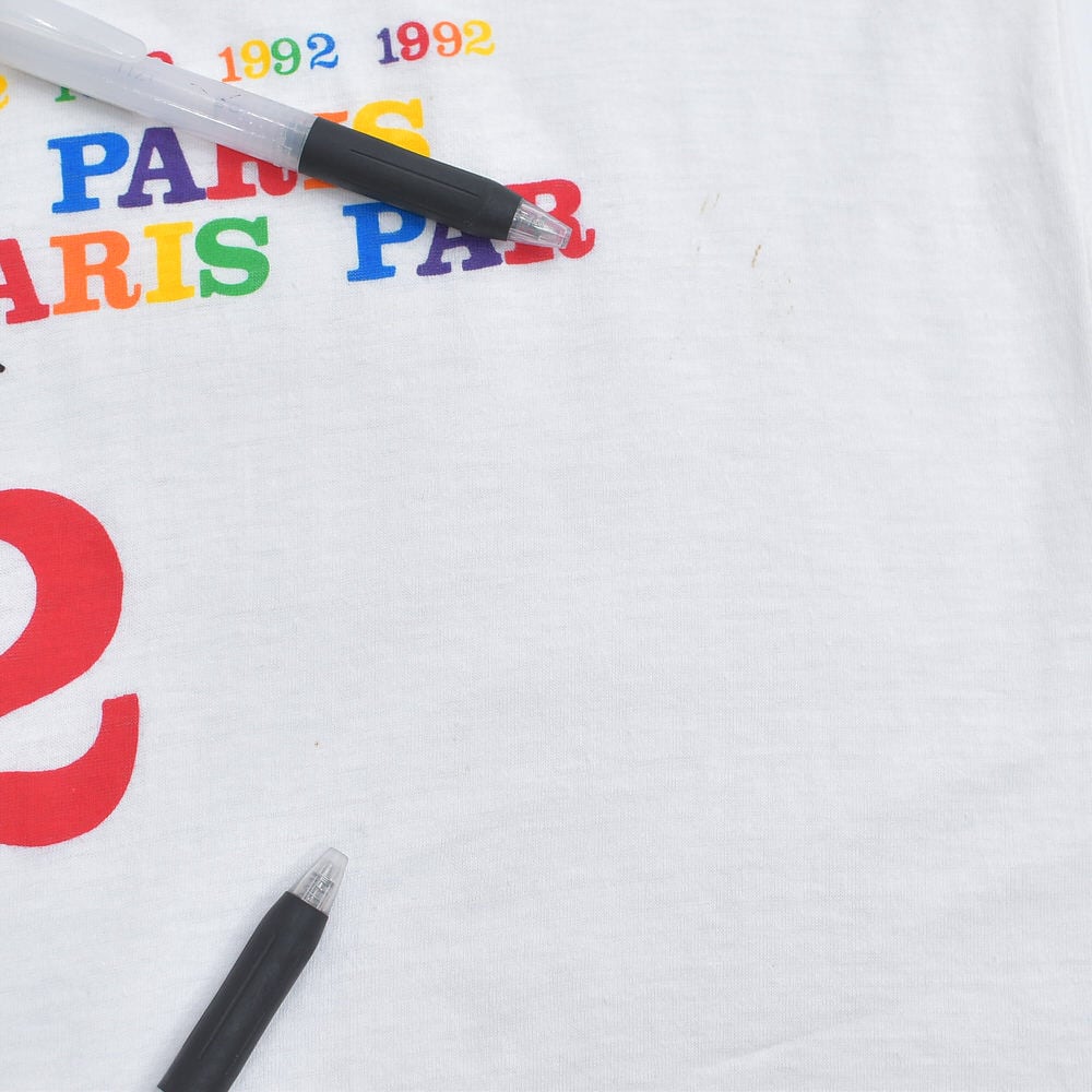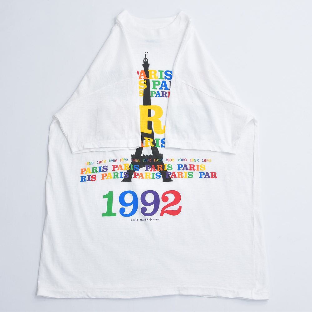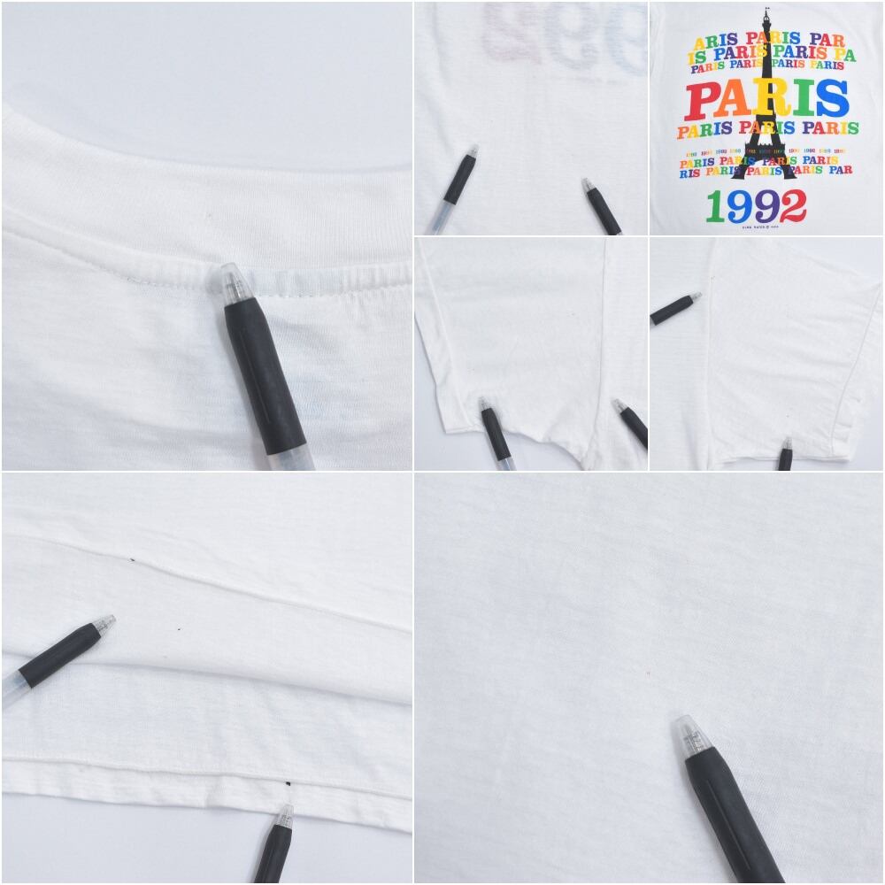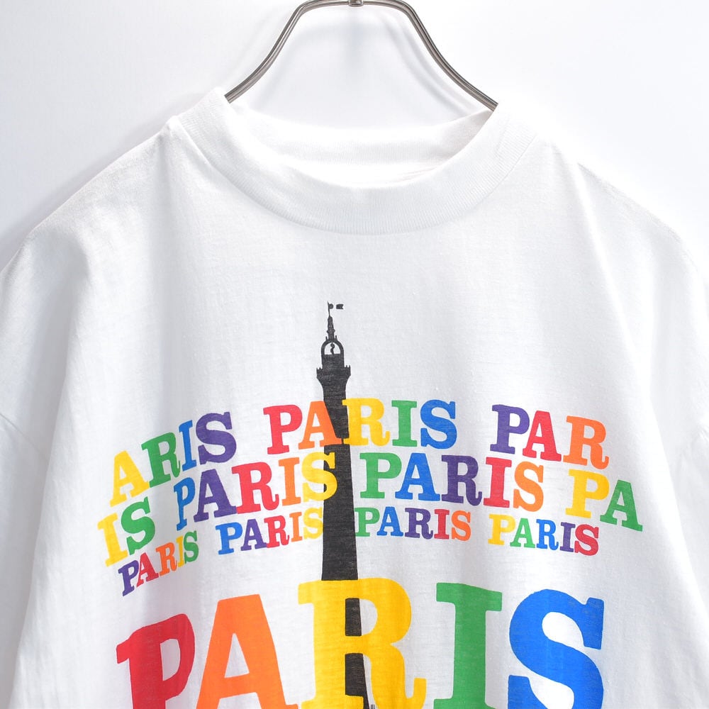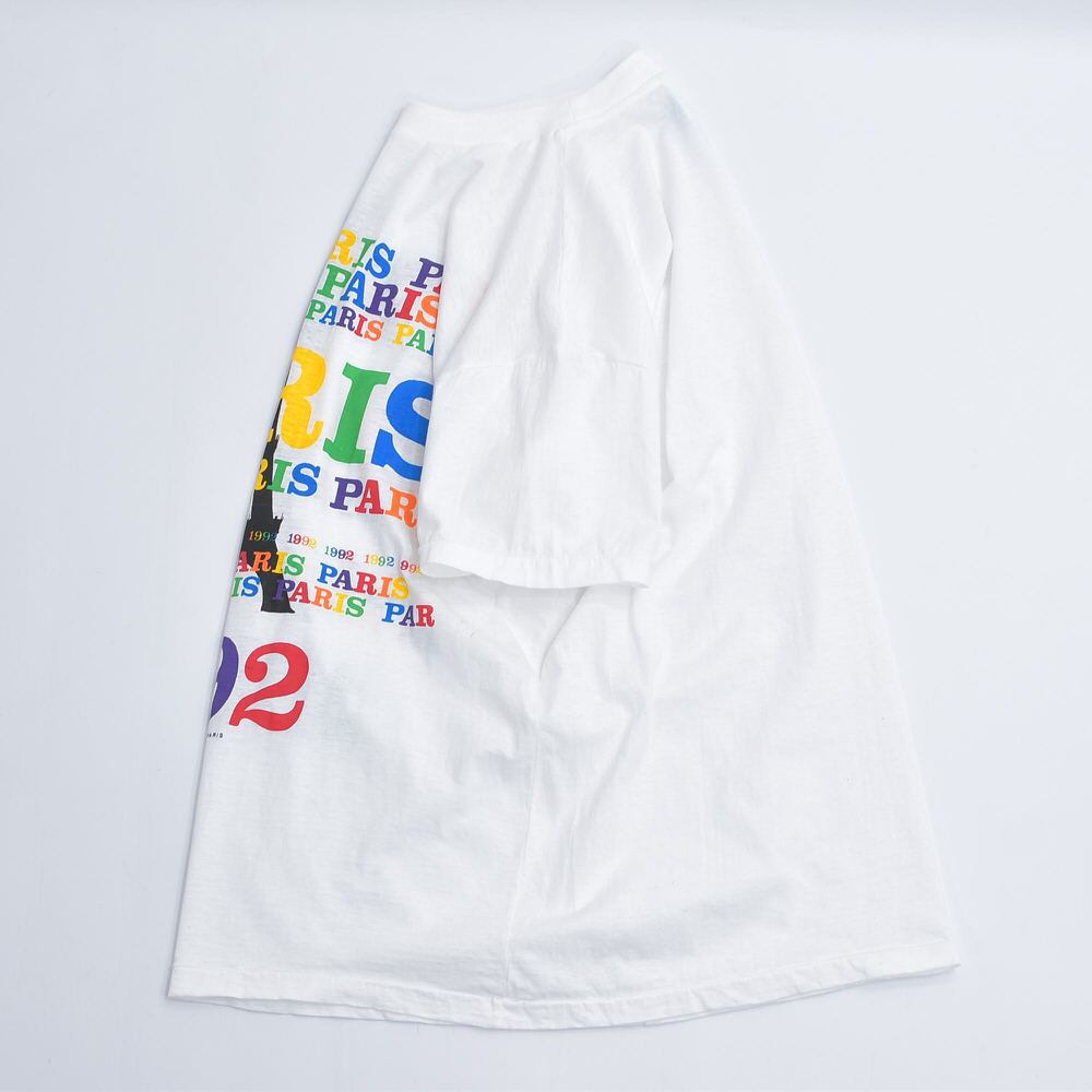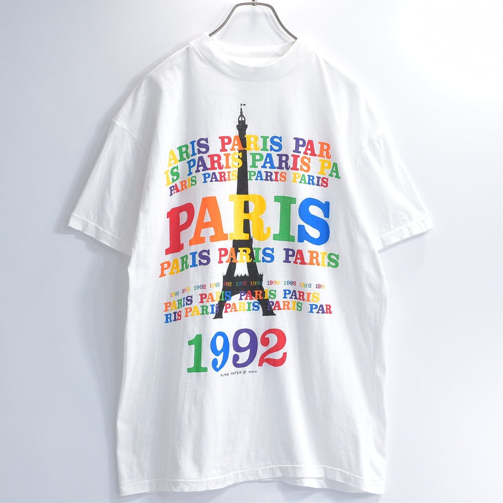 90s ALMA MATER アルママーテル エッフェル塔 PARIS1992 カラフルロゴ プリント グラフィック Tシャツ スーベニア お土産 ホワイト ヴィンテージ ビンテージ 古着 メンズ Lサイズ