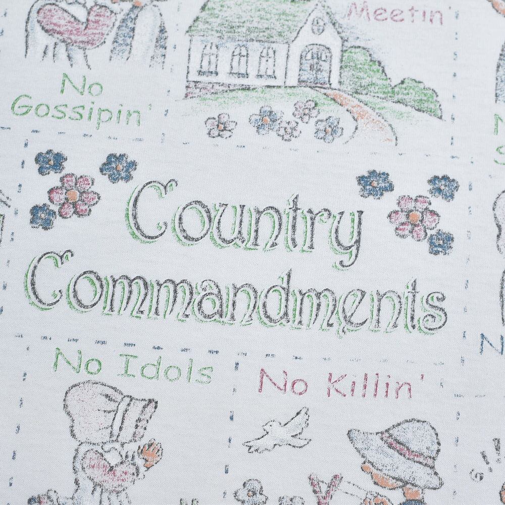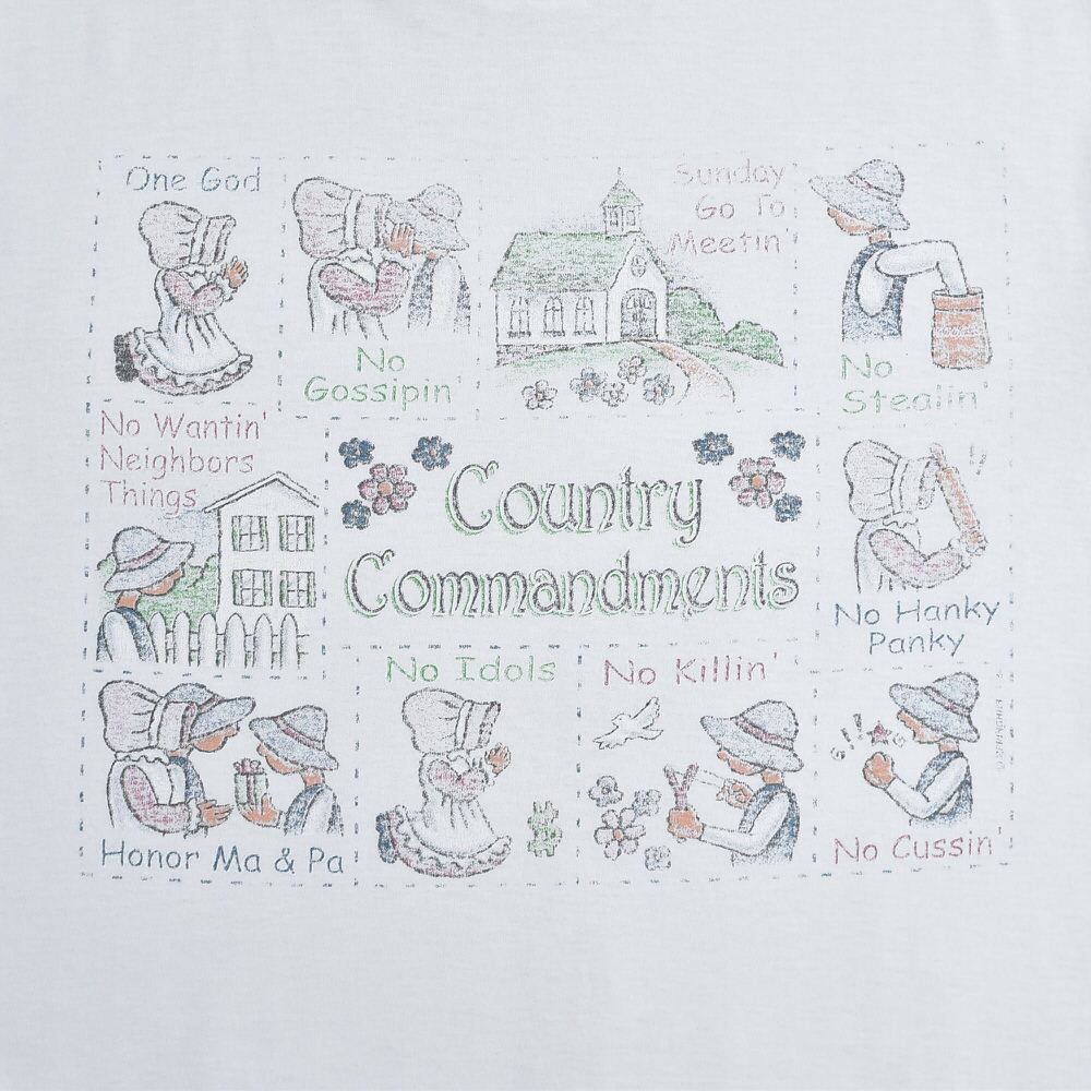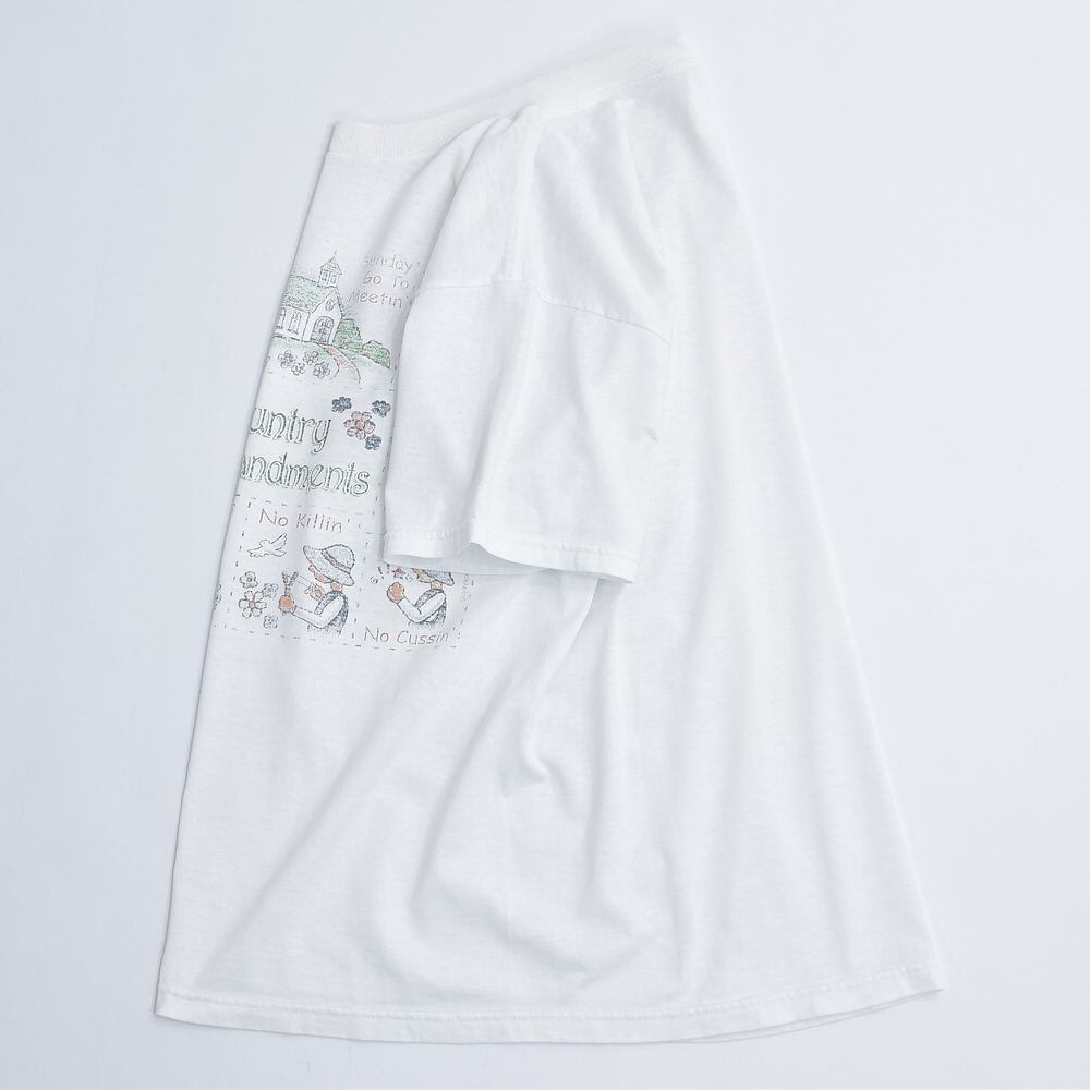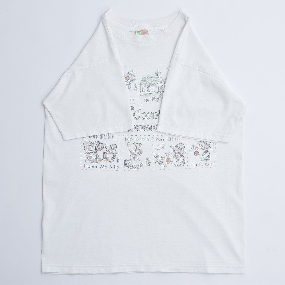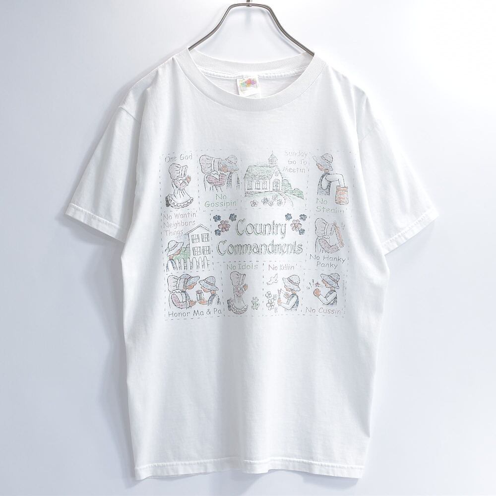 90s~ メキシコ製 FRUIT OF THE LOOM フルーツオブザルーム 十戒 パロディ カントリー アート プリント Tシャツ イラスト アメリカ古着 ホワイト ヴィンテージ ビンテージ 古着 メンズS相当