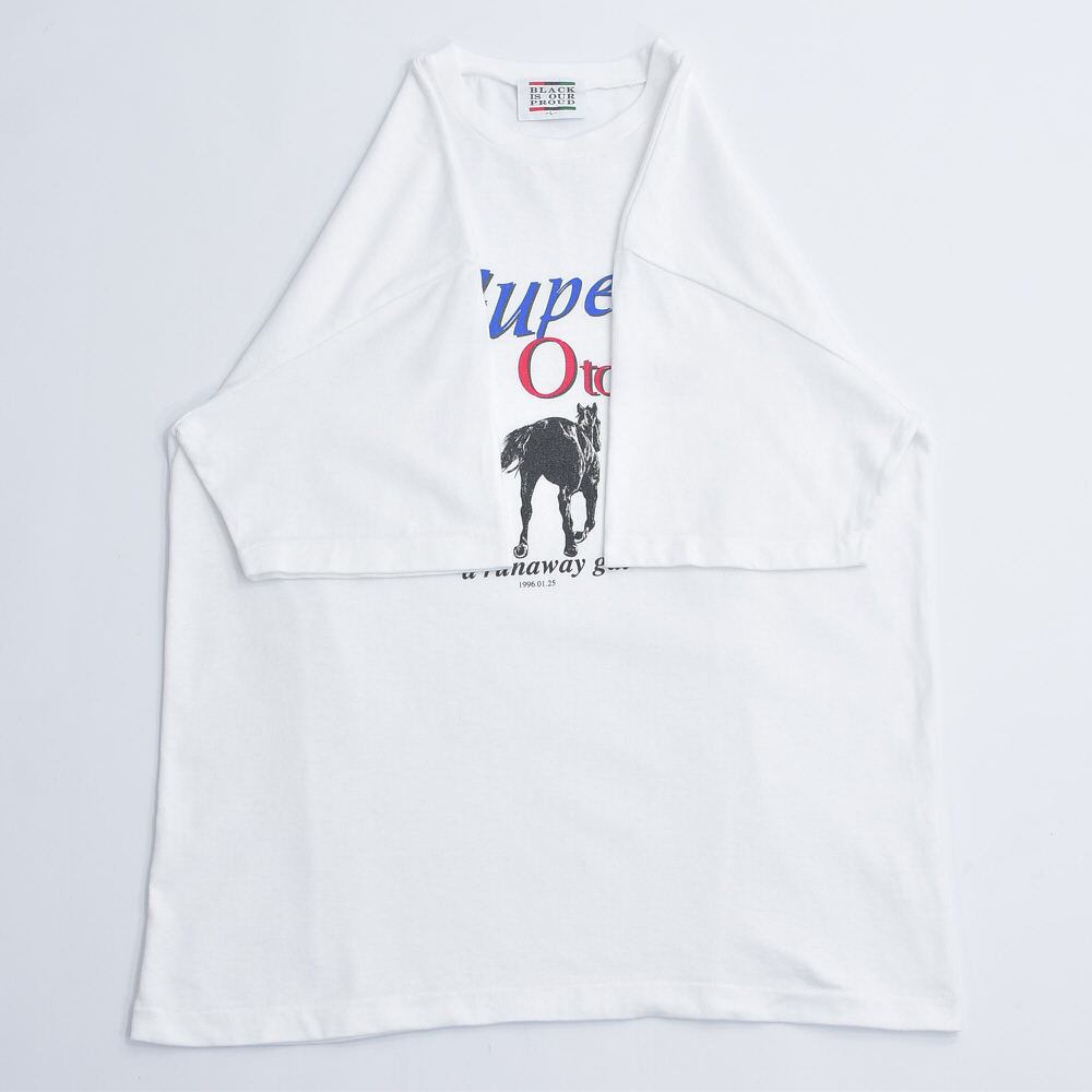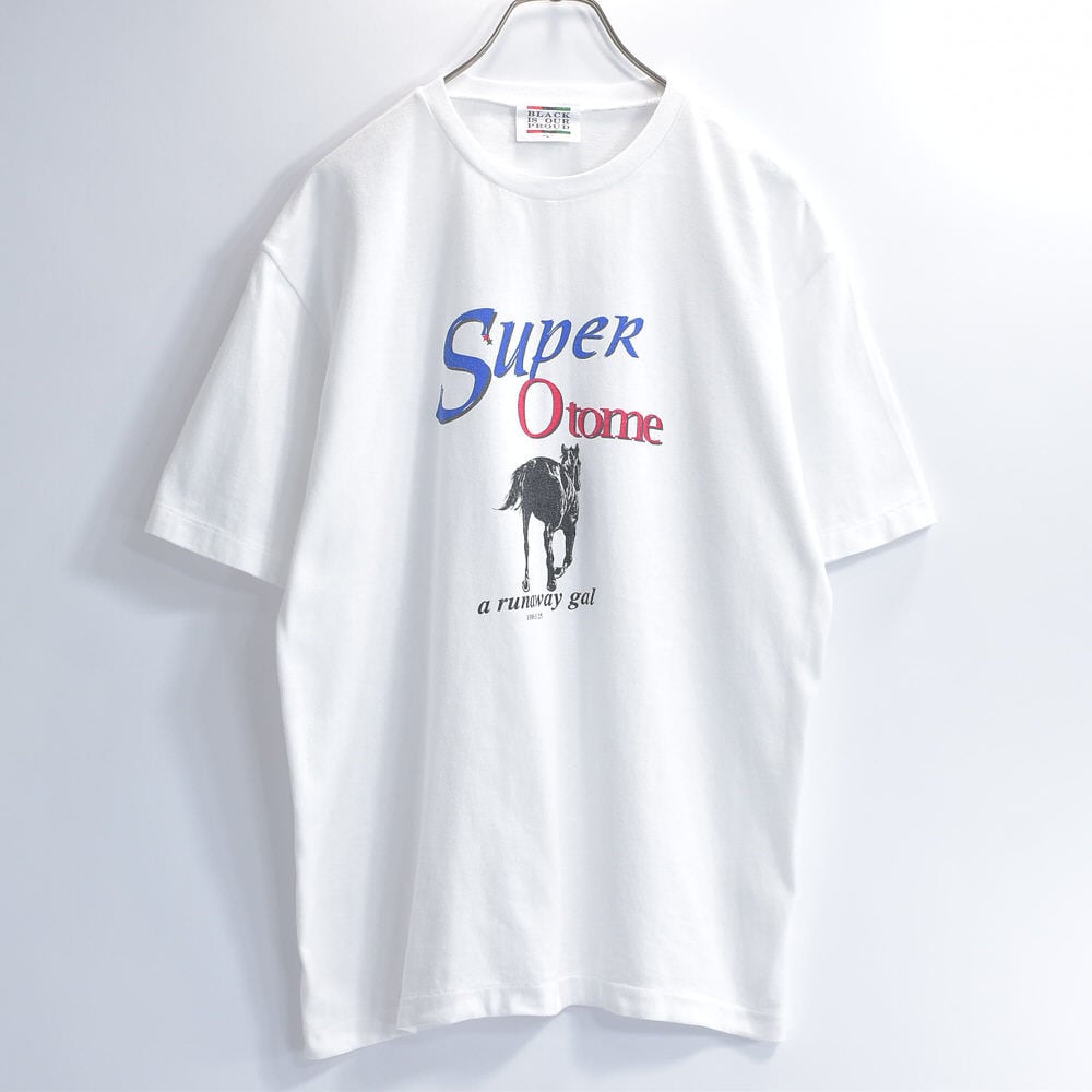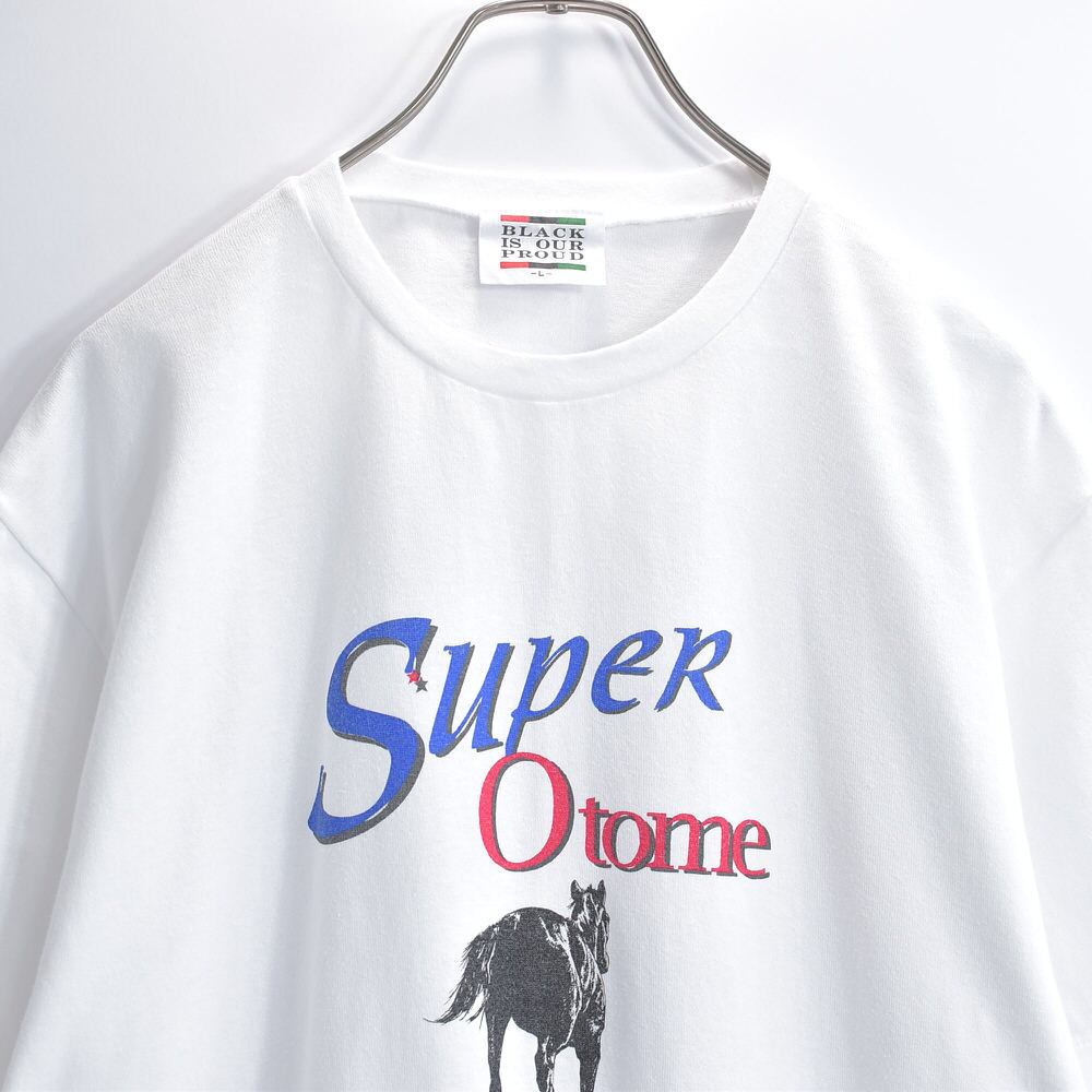90s~ 日本製 BLACK IS OUR PROUD ブラックイズアワープラウド Super Otome ホースプリント グラフィックTシャツ アート ストリート ホワイト ヴィンテージ ビンテージ 古着 メンズ Lサイズ