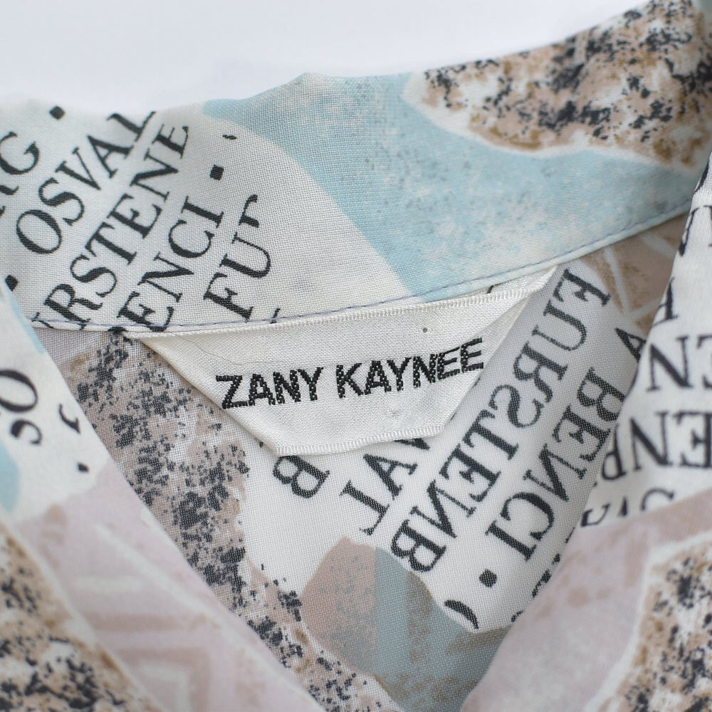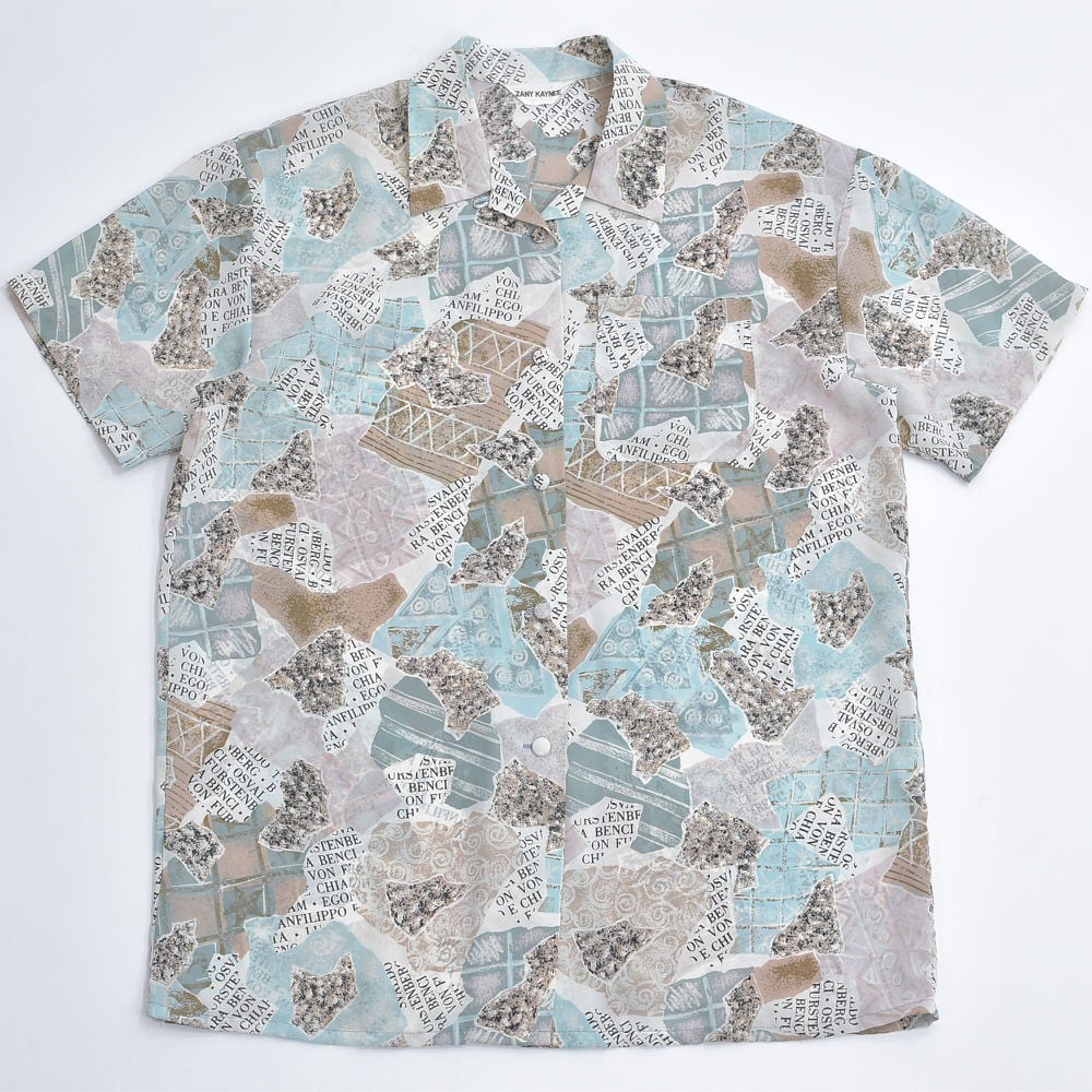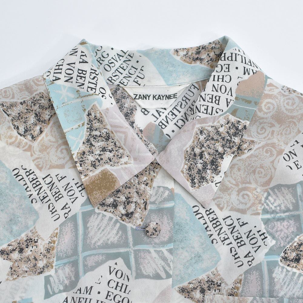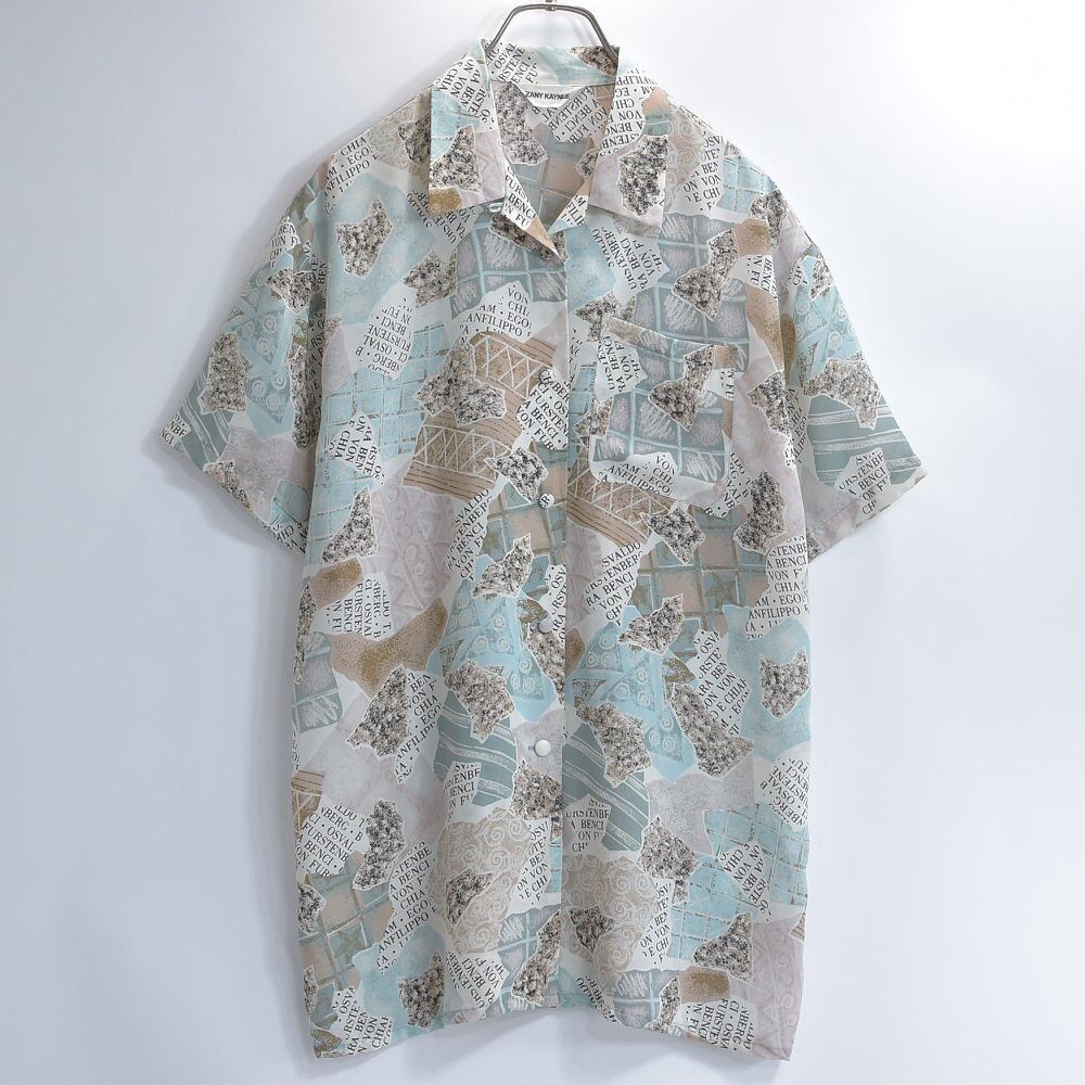 90s ZANY KAYNEE ゼイニーケイニー 総柄 デザイン 半袖 シャツ ブラウス パステルカラー パッチワーク 風アート ジャパンニーズヴィンテージ ビンテージ 古着 レディースL〜相当