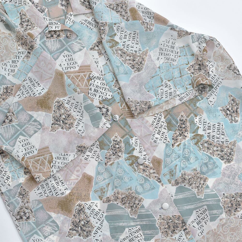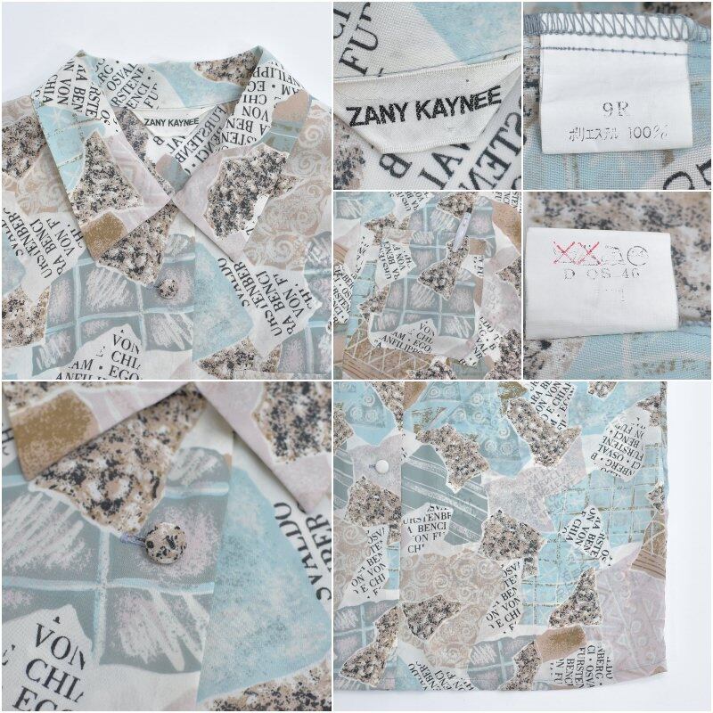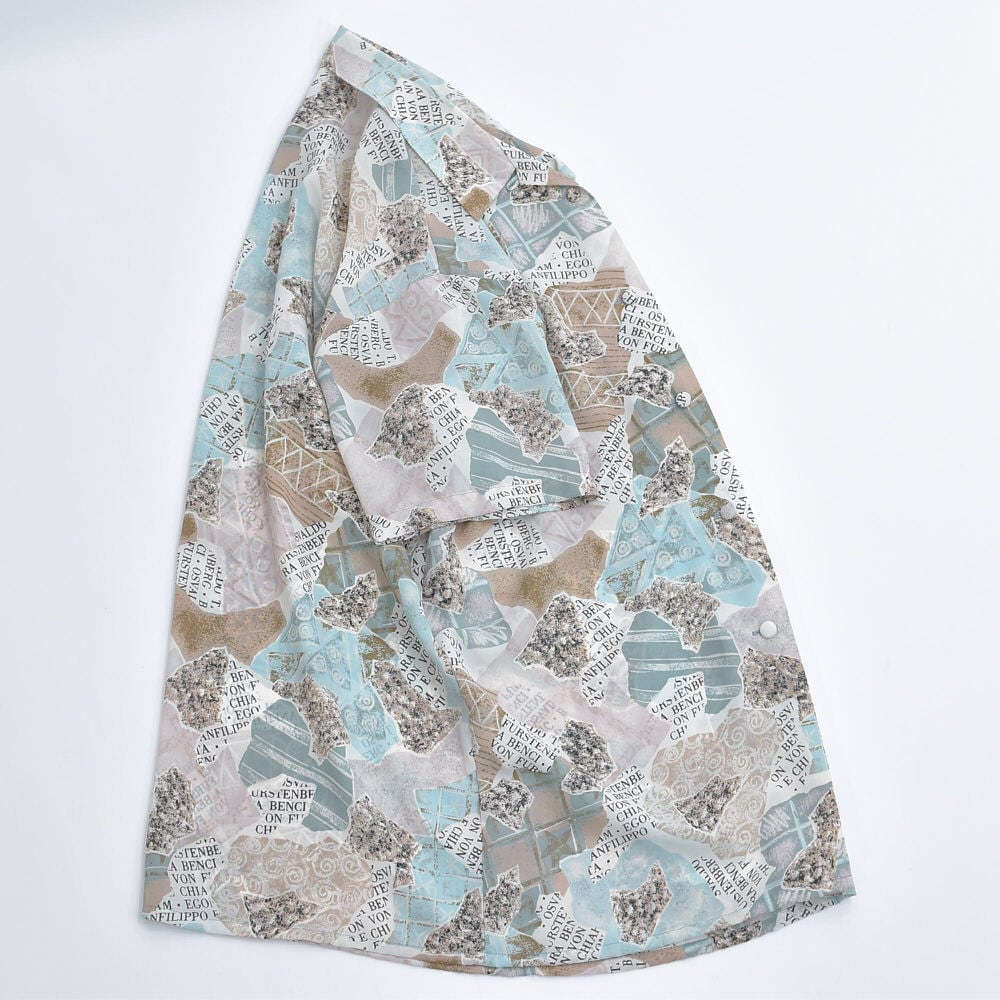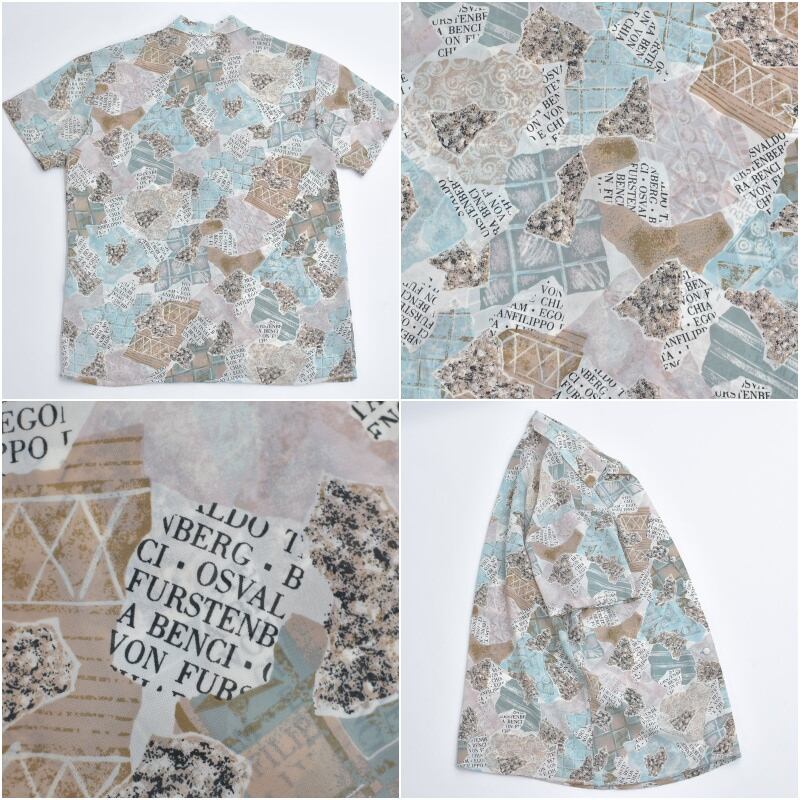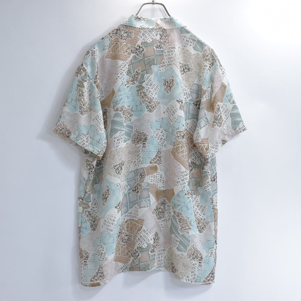 90s ZANY KAYNEE ゼイニーケイニー 総柄 デザイン 半袖 シャツ ブラウス パステルカラー パッチワーク 風アート ジャパンニーズヴィンテージ ビンテージ 古着 レディースL〜相当