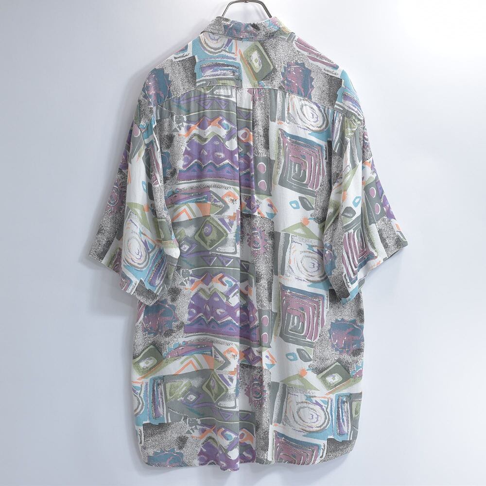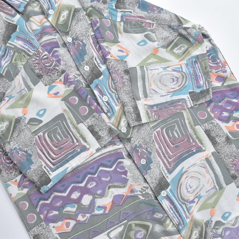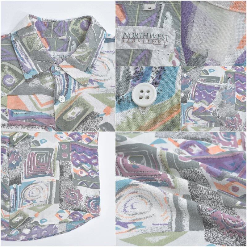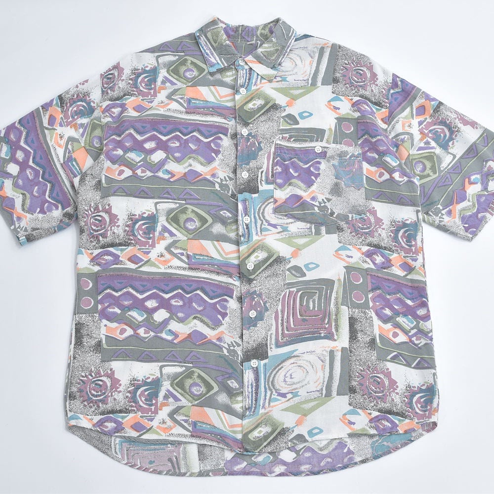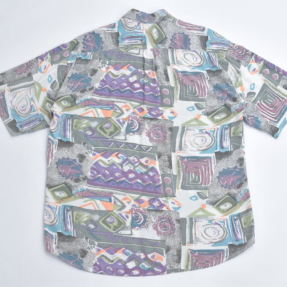 90s NORTHWEST TERRITORY 幾何学柄 総柄 半袖 シャツ アート アブストラクト デザインシャツ マルチカラー ヴィンテージ ビンテージ USA アメリカ古着 メンズLサイズ