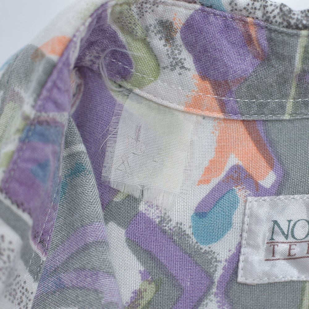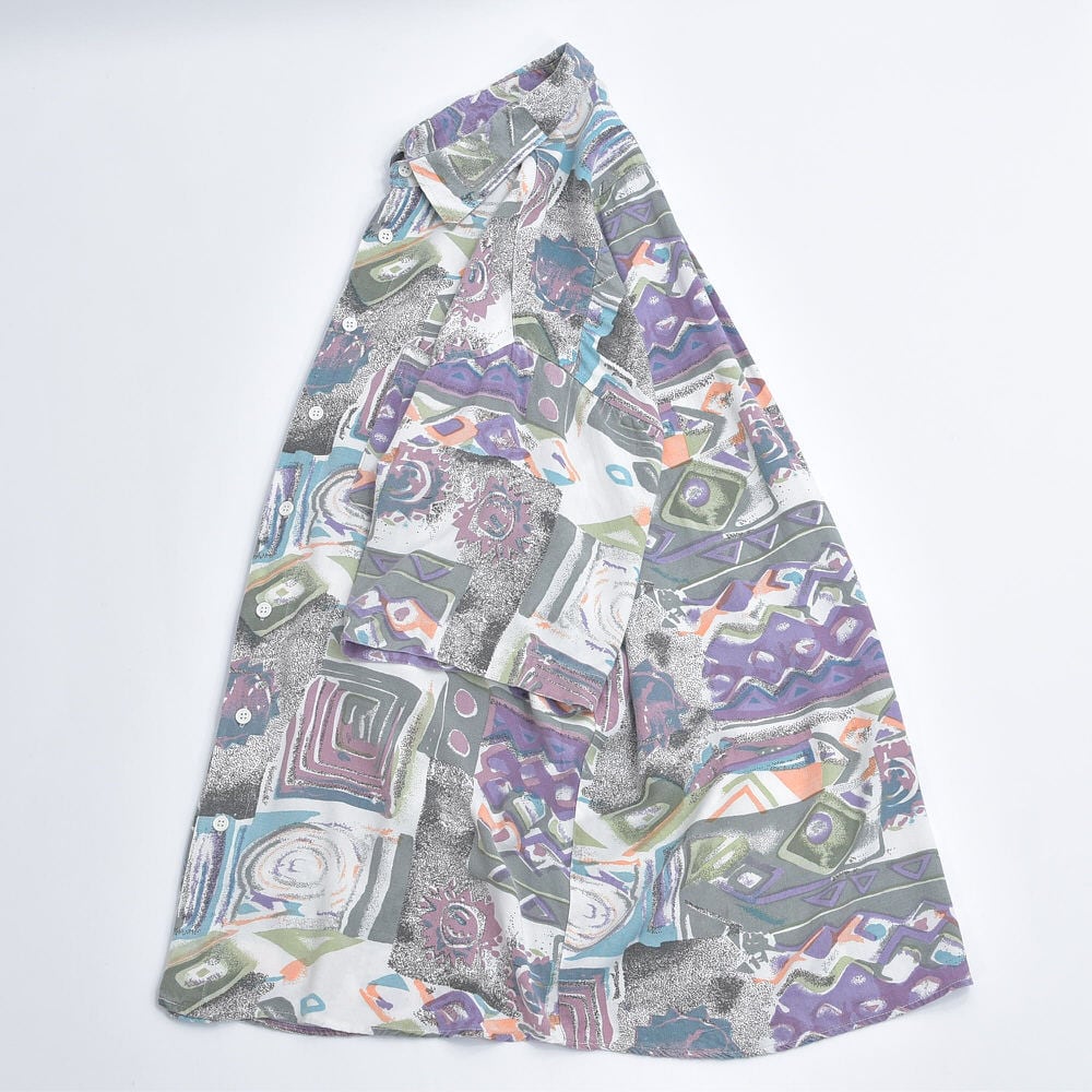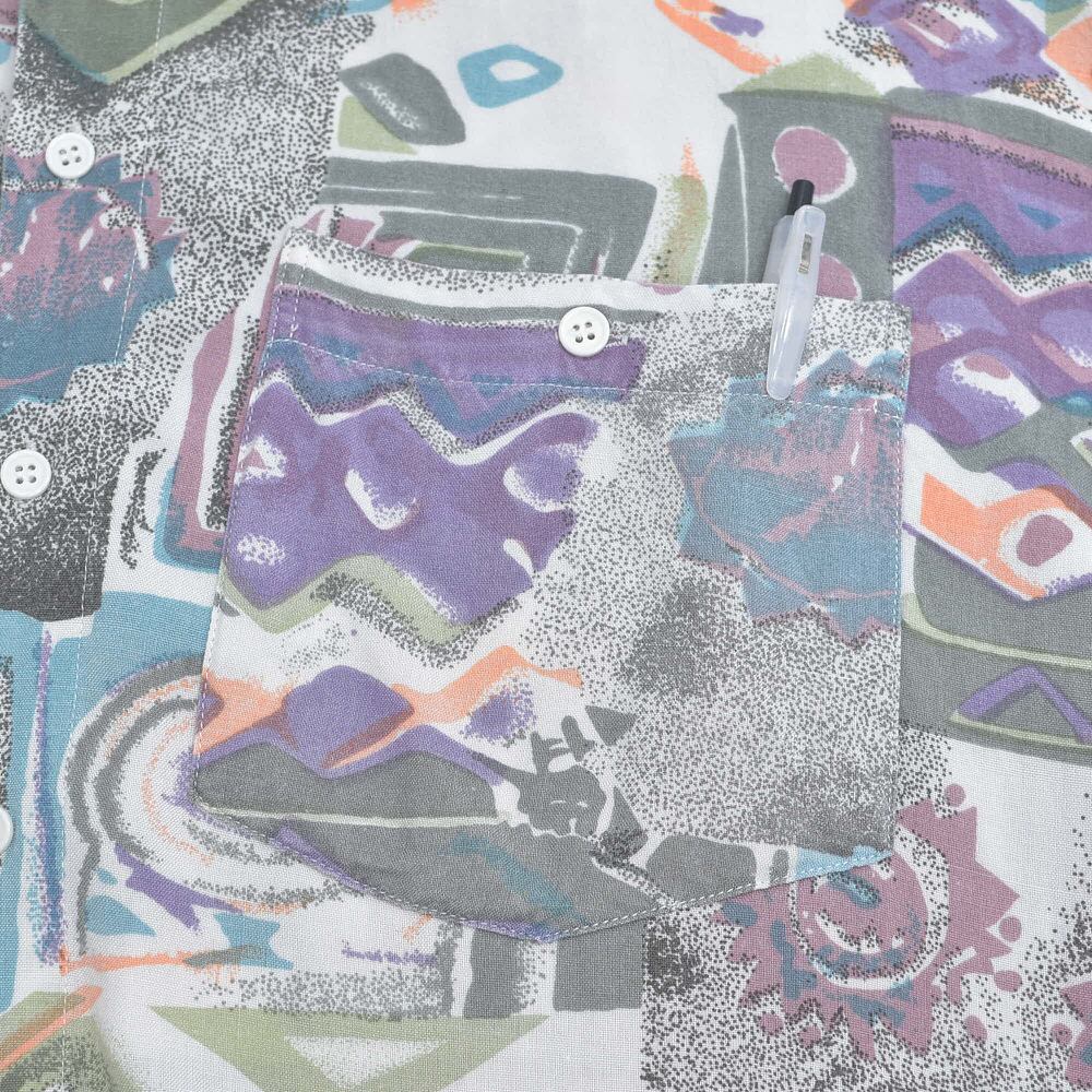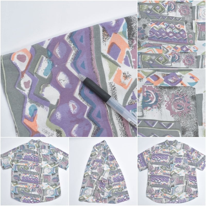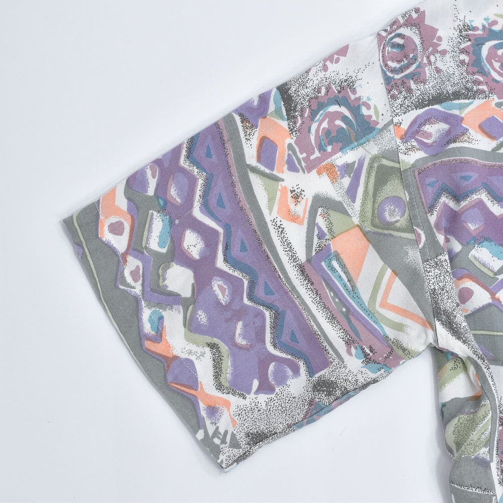 90s NORTHWEST TERRITORY 幾何学柄 総柄 半袖 シャツ アート アブストラクト デザインシャツ マルチカラー ヴィンテージ ビンテージ USA アメリカ古着 メンズLサイズ