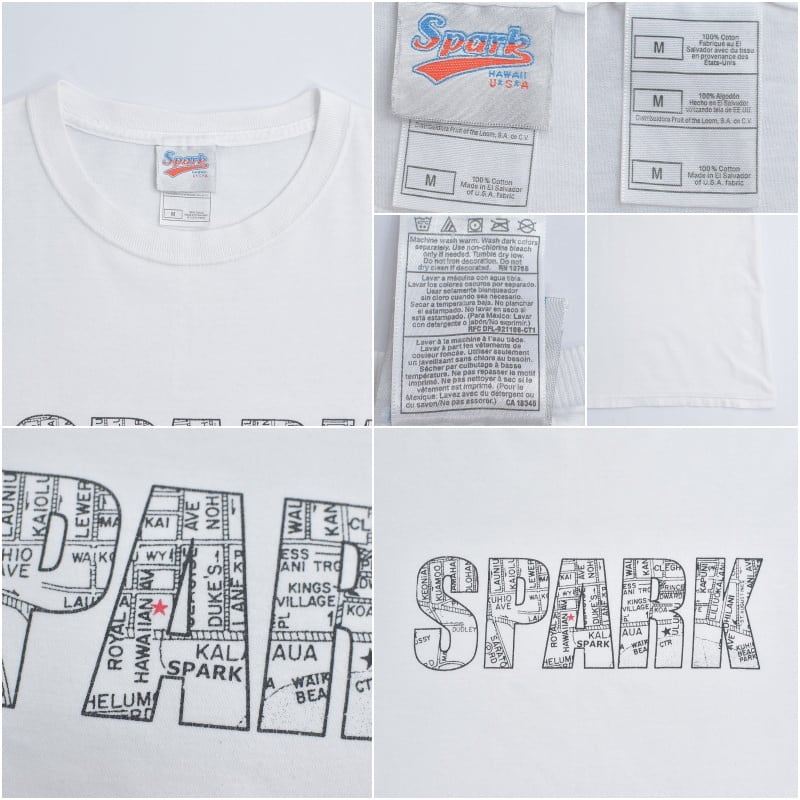 90~00s Spark HAWAII Tシャツ 半袖 マップT 地図 ワイキキ USAファブリック スーベニア ホワイト ヴィンテージ ビンテージ アメリカ古着 メンズMサイズ