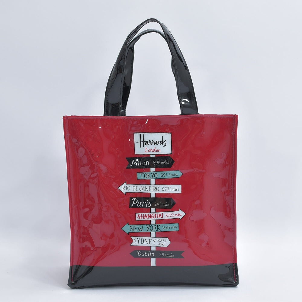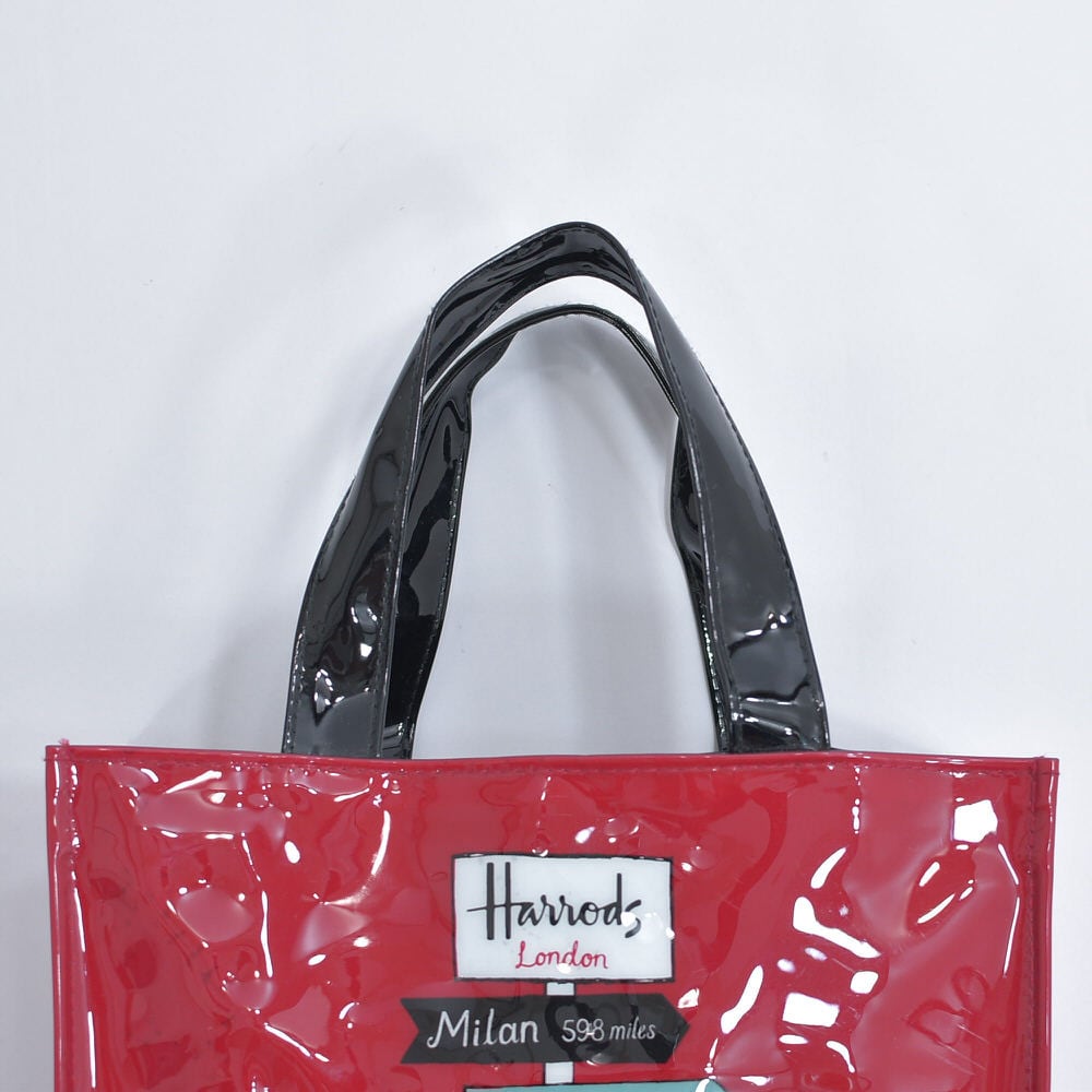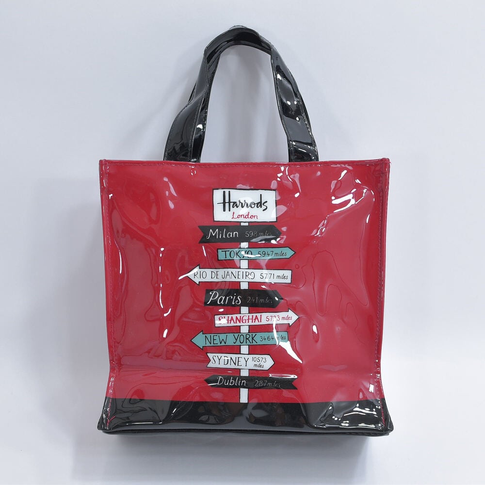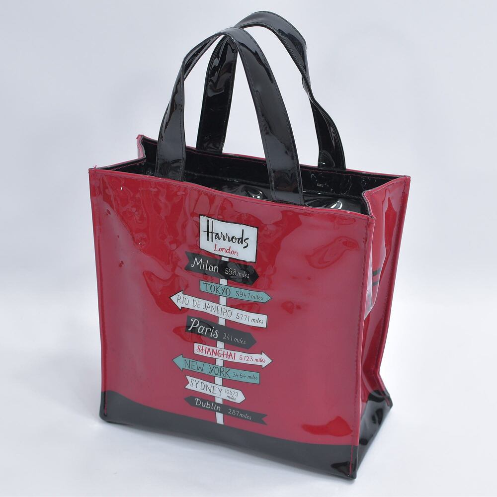 Harrods ハロッズ トラベルデザイン PVC トートバッグ エナメル 道路標識 ロンドン バイカラー 赤 黒 ヴィンテージ ビンテージ ヨーロッパ古着 ユニセックス