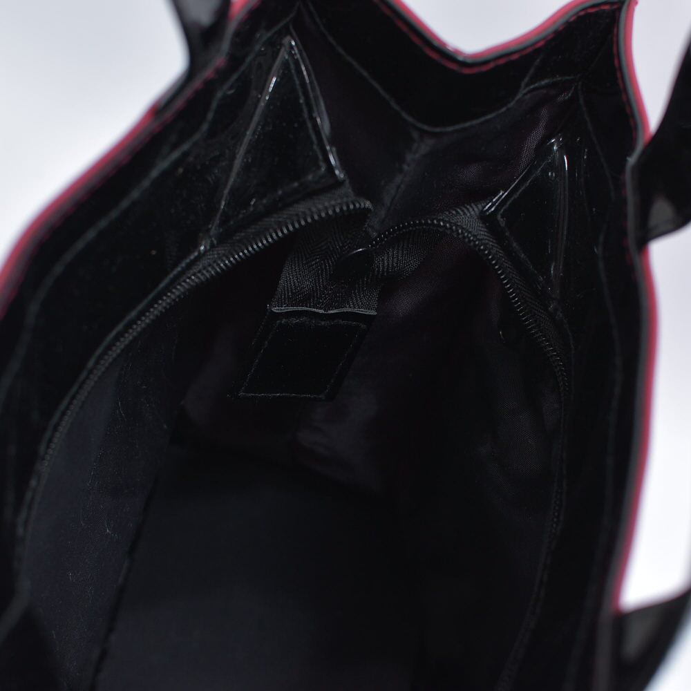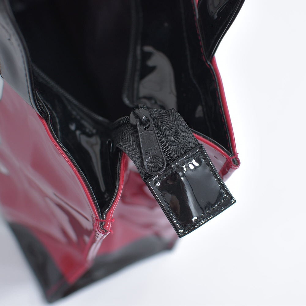 光沢のある赤と黒のコントラストは、性別を問わずコーディネートを引き締めるアクセントになる