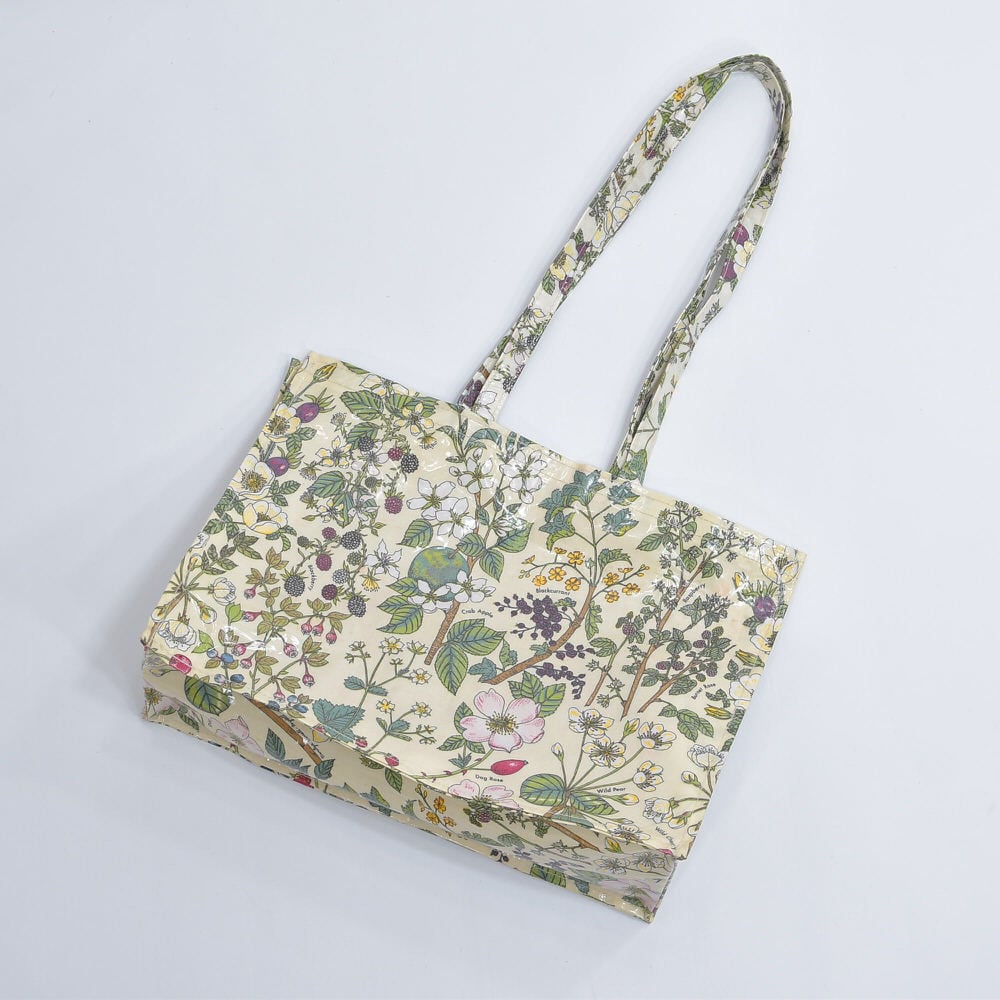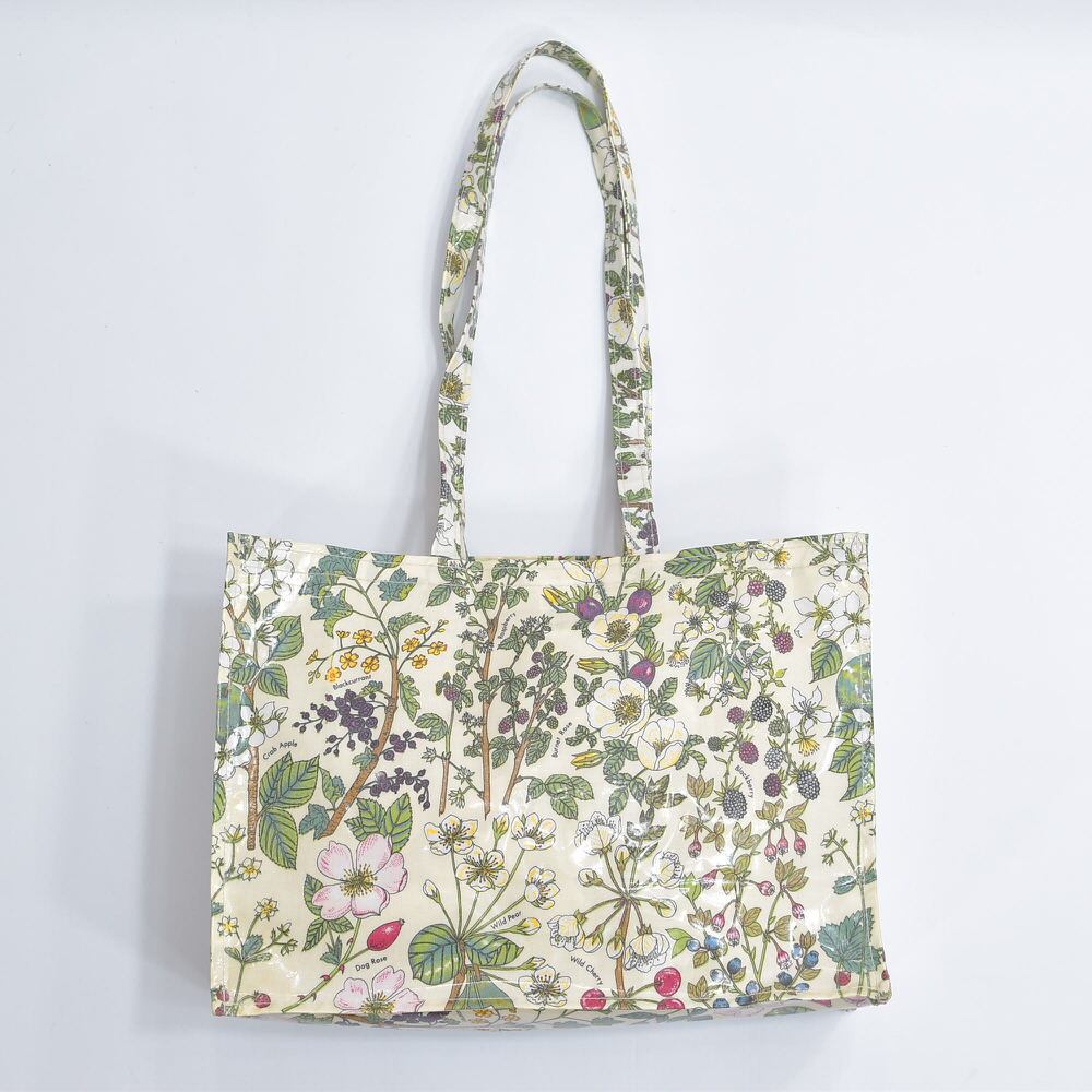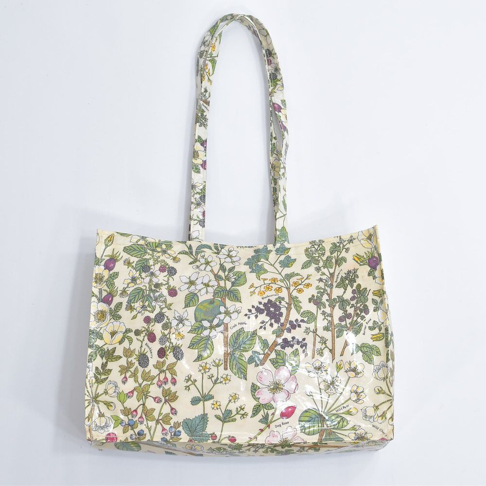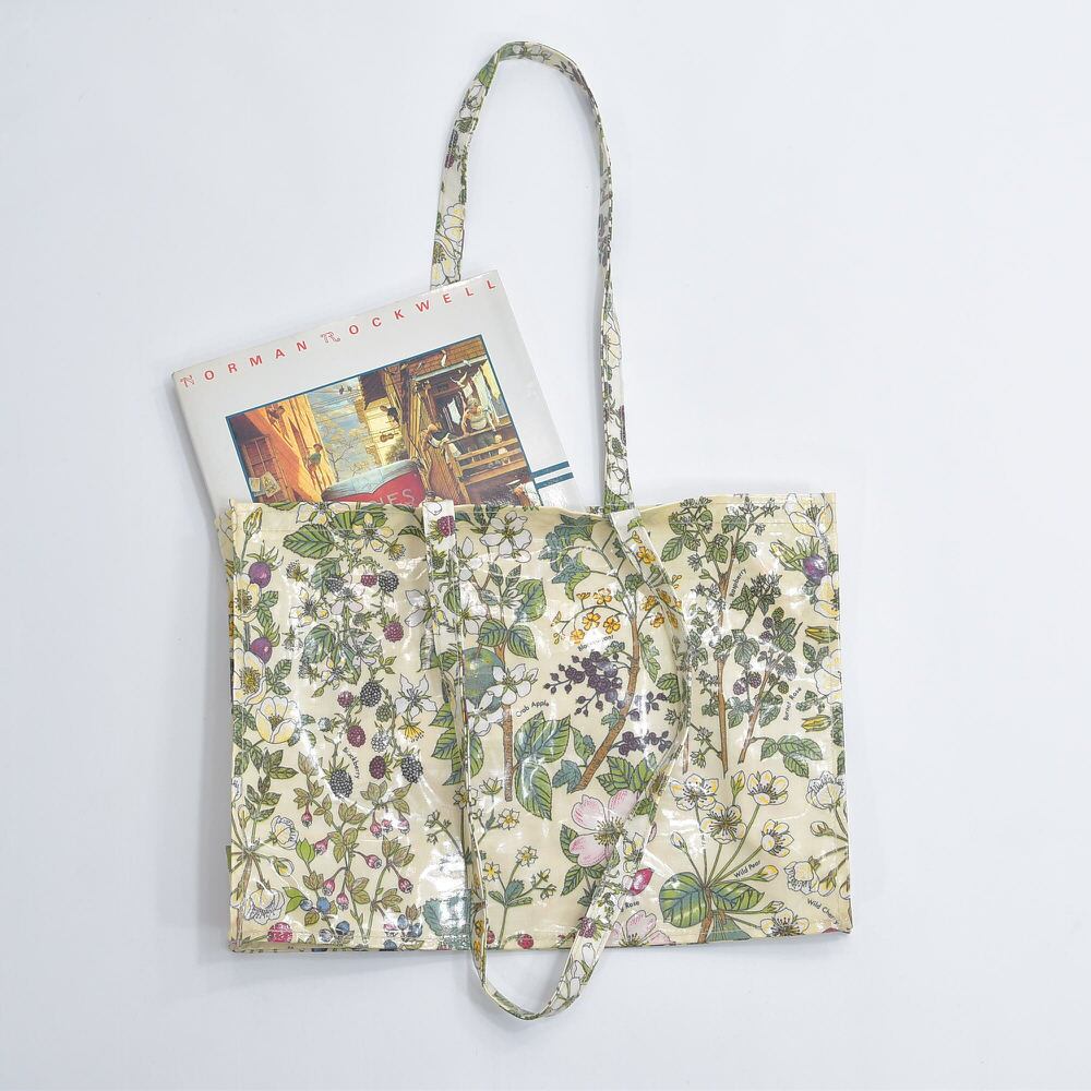 00s〜 McCaw Allan マコーアラン アイルランド製 ボタニカルアート PVC トートバッグ 図鑑 総柄 花柄 植物 クリーム ヴィンテージ ビンテージ ヨーロッパ古着 ユニセックス