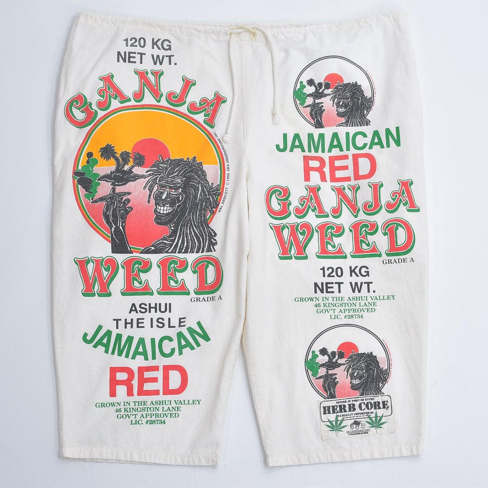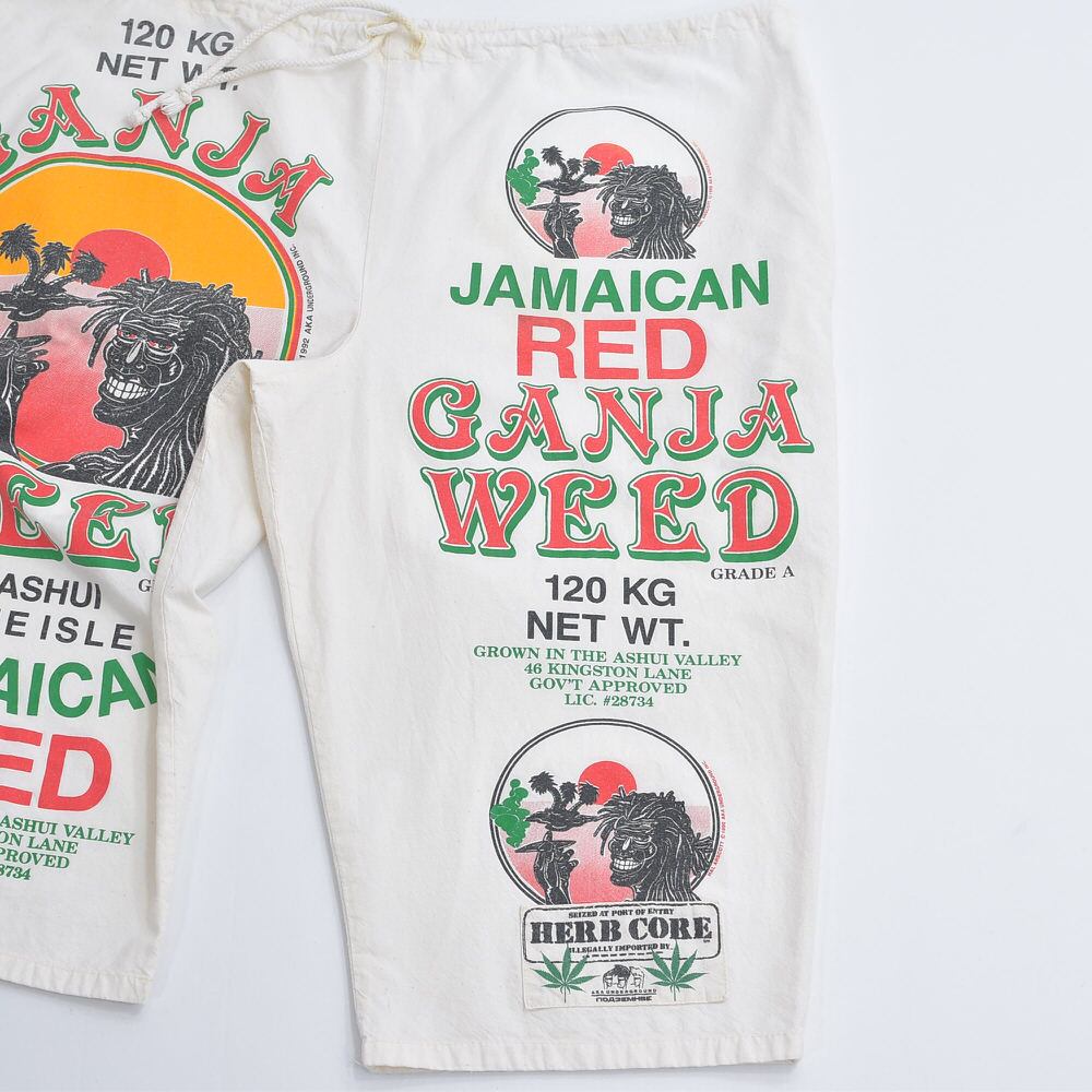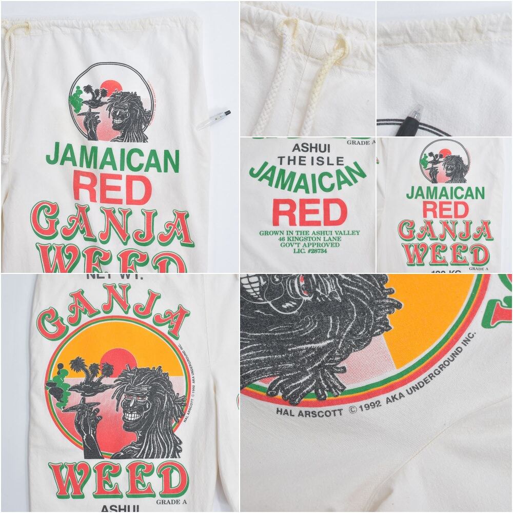 90s USA製 AKA UNDERGROUND サックパンツ 総柄プリント ガンジャ ジャマイカ ラスタ ホワイト キナリ ヴィンテージ ビンテージ USA アメリカ古着 フリーサイズ