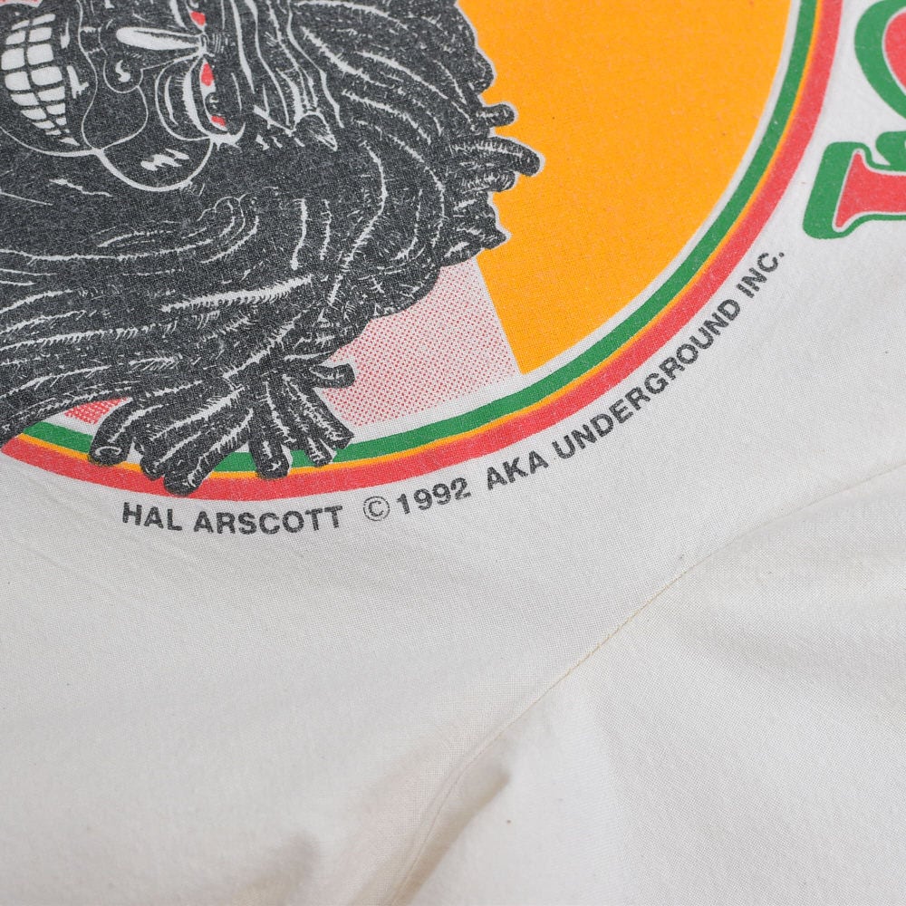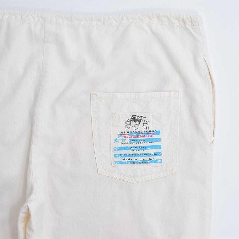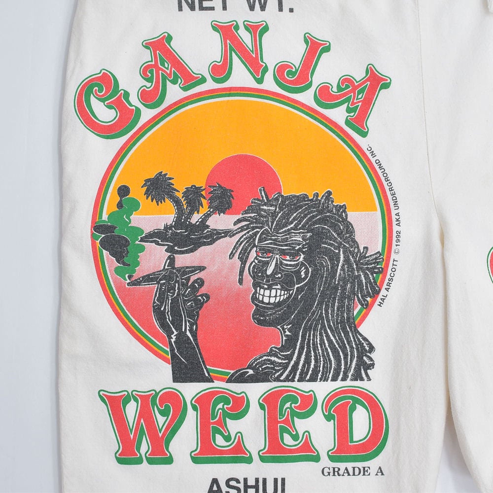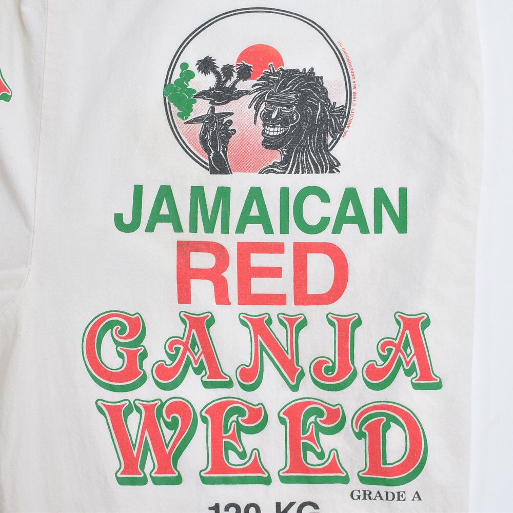 90s USA製 AKA UNDERGROUND サックパンツ 総柄プリント ガンジャ ジャマイカ ラスタ ホワイト キナリ ヴィンテージ ビンテージ USA アメリカ古着 フリーサイズ