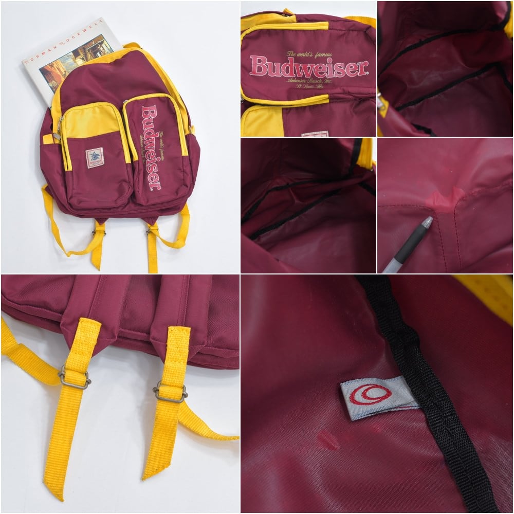 80s-90s ACE社製 Budweiser バドワイザー バックパック 企業モノ リュックサック バーガンディ イエロー ヴィンテージ ビンテージ 古着 メンズ レディース