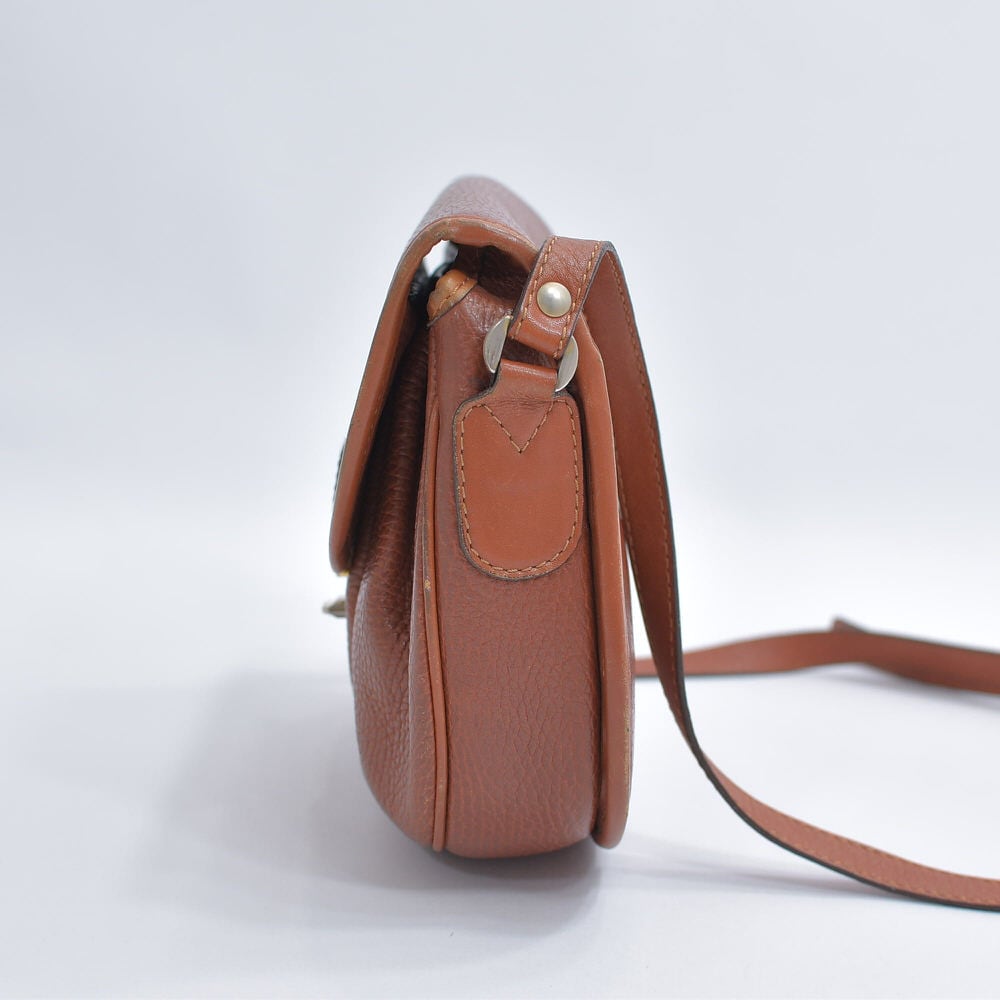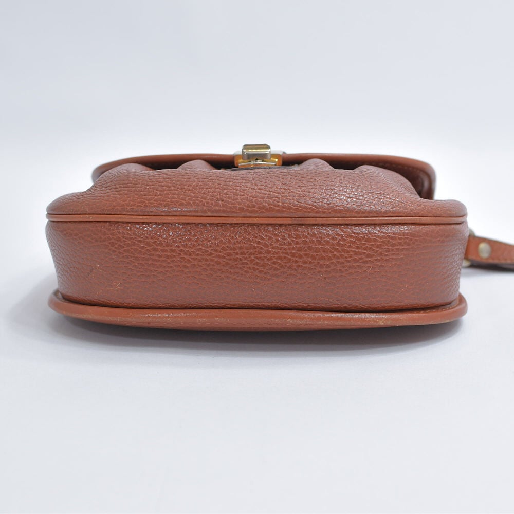 80s-90s イタリア製 Used レザーショルダーバッグ 本革 シボ革 ターンロック ブラウン ヴィンテージ ビンテージ 古着 レディース
