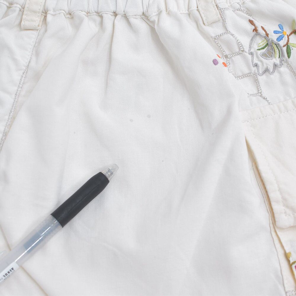 Remakeリメイク 再構築 パッチワーク&フラワー刺繍 デザイン ワイドシルエット コットン カーゴパンツ バギー オフホワイト アイボリー 古着 裏地付き W70〜94cm