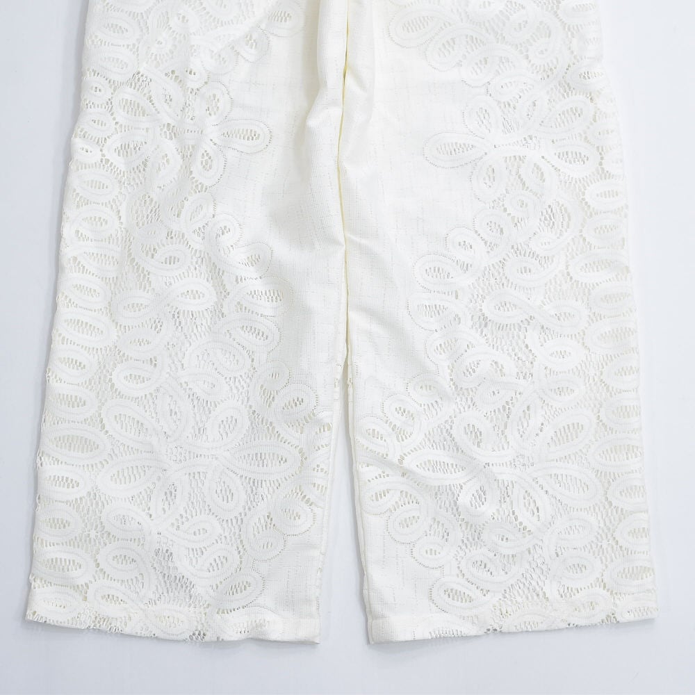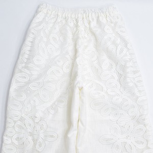 Remakeリメイク フラワーデザイン ラッセルレース ルーズシルエット イージーパンツ フローラル 花柄 パッチワーク オフホワイト 裏地付き W66〜96cm