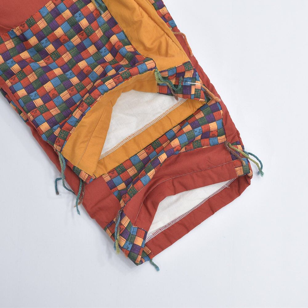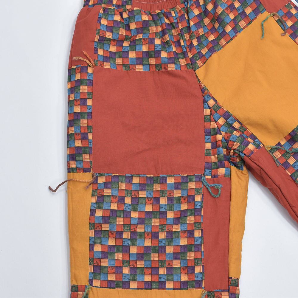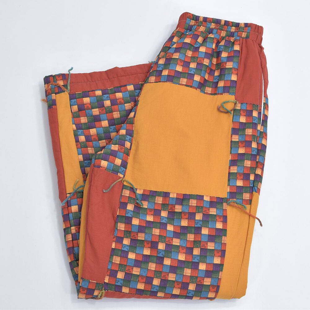 Remake リメイク ハンドメイド デザイン パッチワーク キルト イージーパンツ タフティング 再構築 ツギハギ ブラウン コットン W68~100cm