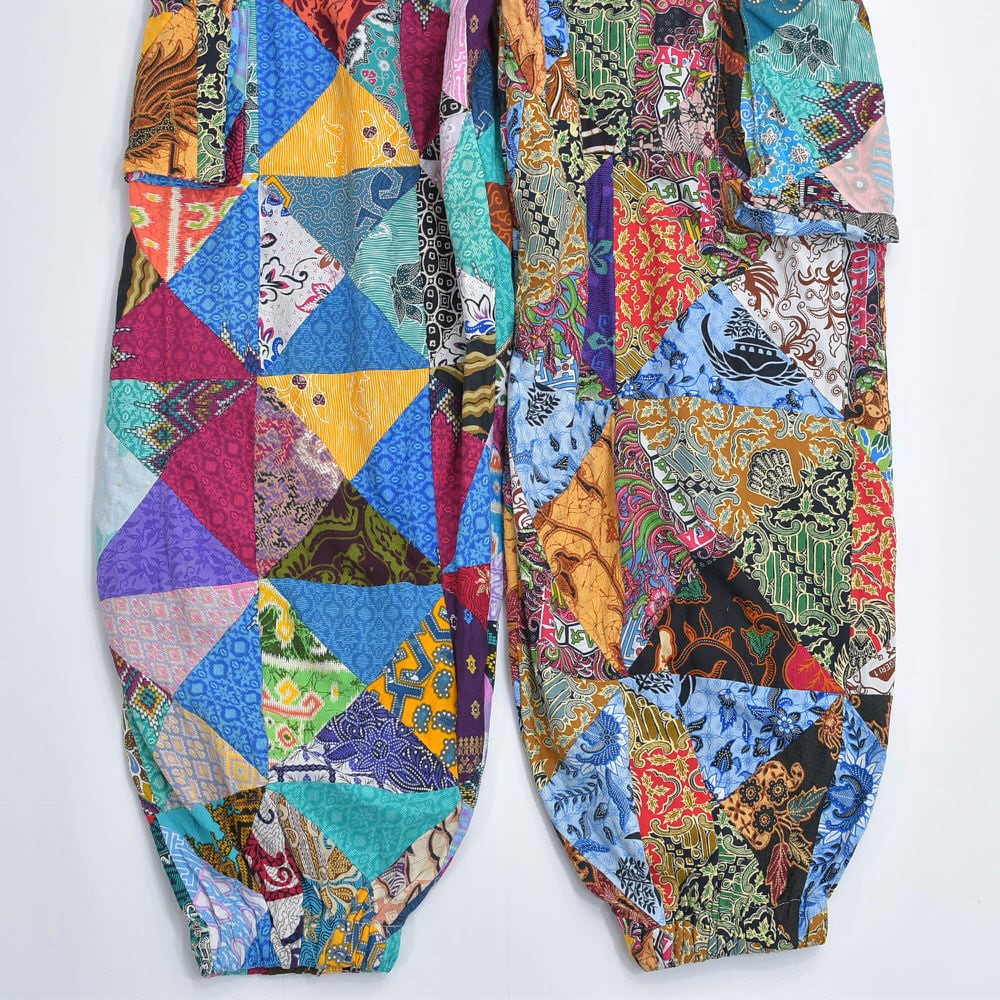 Remake リメイク ハンドメイド バティック テキスタイル パッチワーク デザイン ルーズシルエット アラジンパンツ 再構築 ツギハギ エスニック W66~102cm