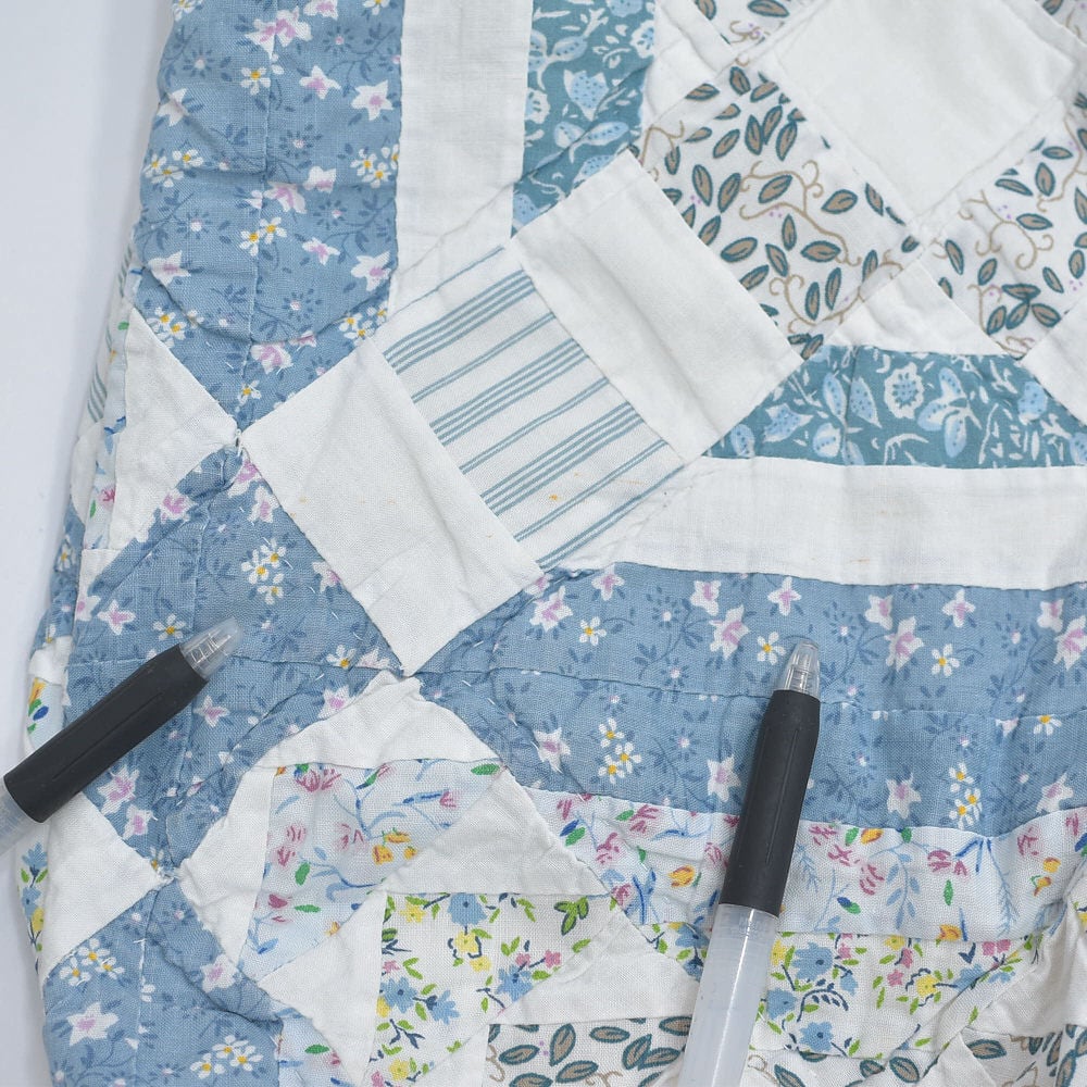 優しい色合いのたくさんのお花模様の生地を繋ぎ合わせ