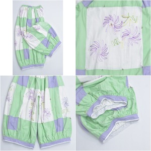 Remake リメイク ハンドメイド 刺繍 デザイン パッチワーク キルト スーパーバルーンシルエット イージーパンツ 再構築 ツギハギ コットン W64〜104cm