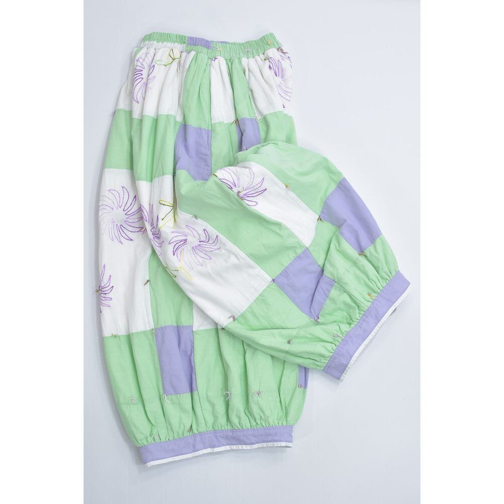 Remake リメイク ハンドメイド 刺繍 デザイン パッチワーク キルト スーパーバルーンシルエット イージーパンツ 再構築 ツギハギ コットン W64~104cm