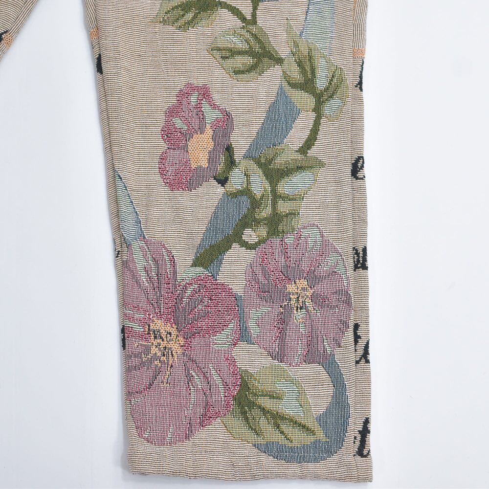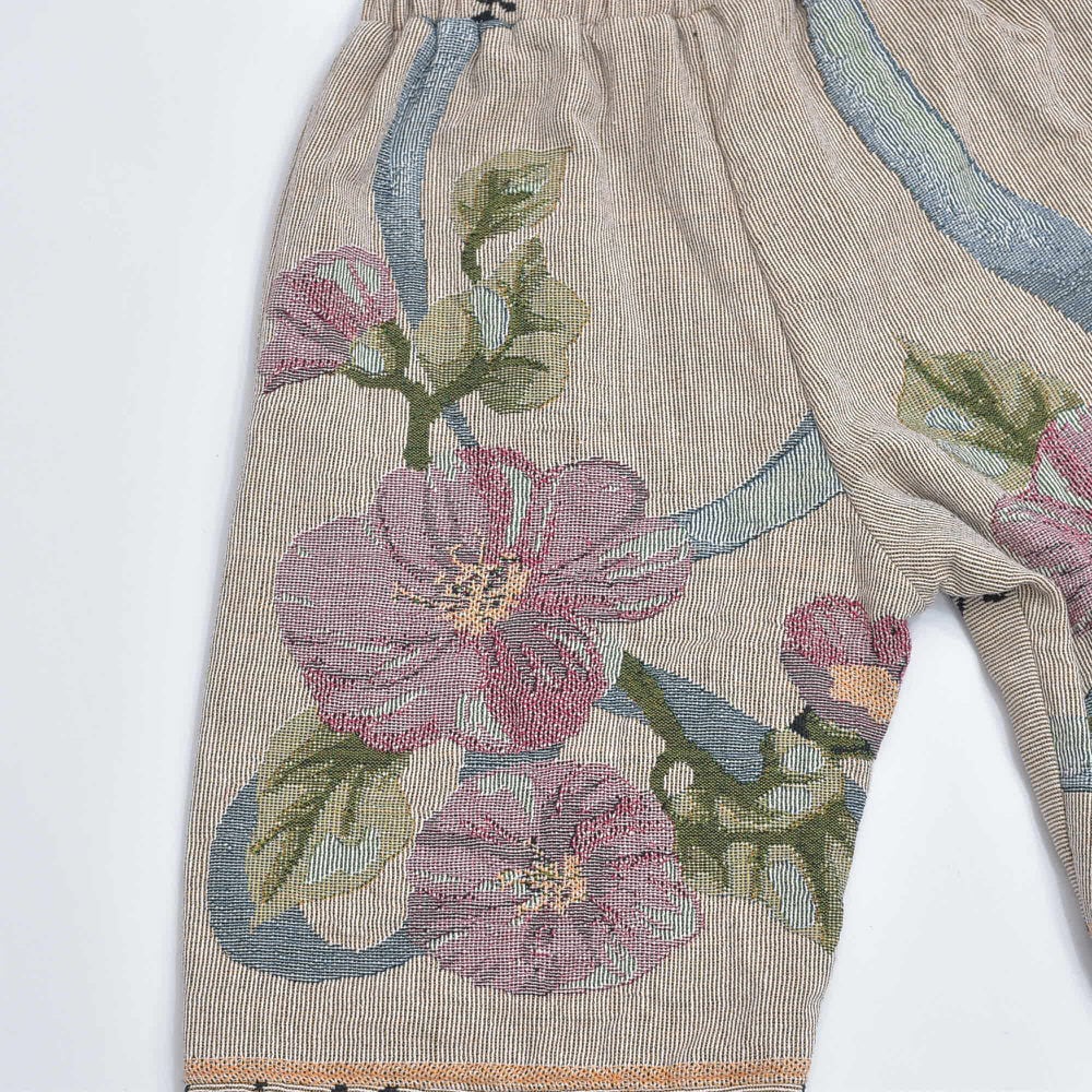 Remake リメイク ルーズシルエット ジャガード 花柄 デザイン ラグパンツ ブランケット パッチワーク イージーパンツ 再構築 コットン ライトブラウン W68~102cm