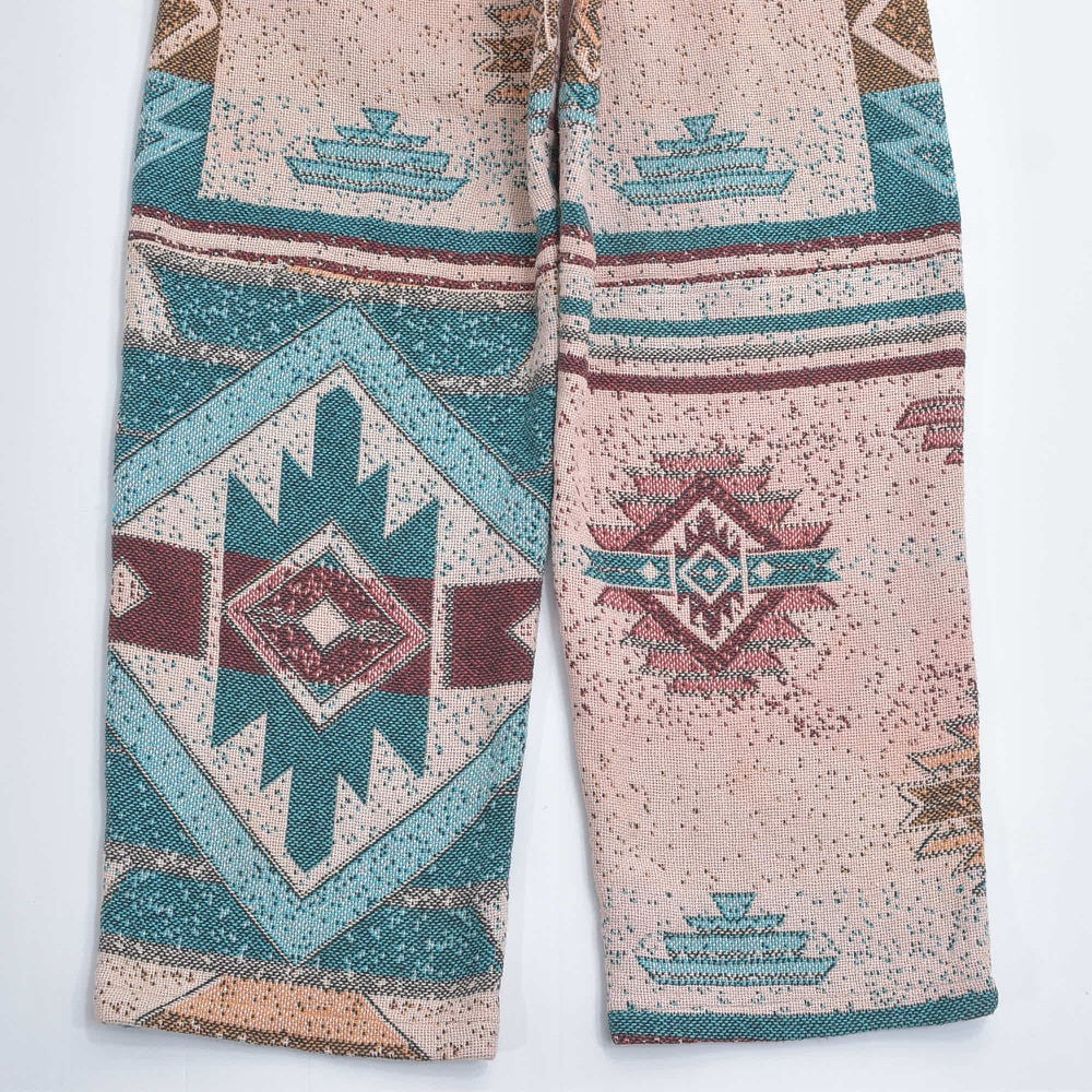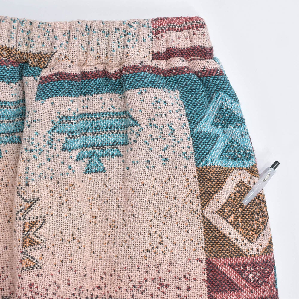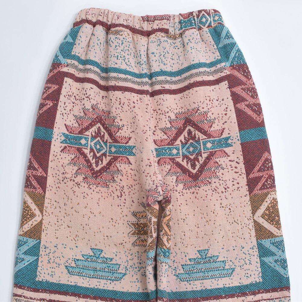 Remake リメイク ルーズシルエット ジャガード ネイティブ柄 デザイン ラグパンツ トライバル ブランケット パッチワーク イージーパンツ 再構築 コットン W68~104cm