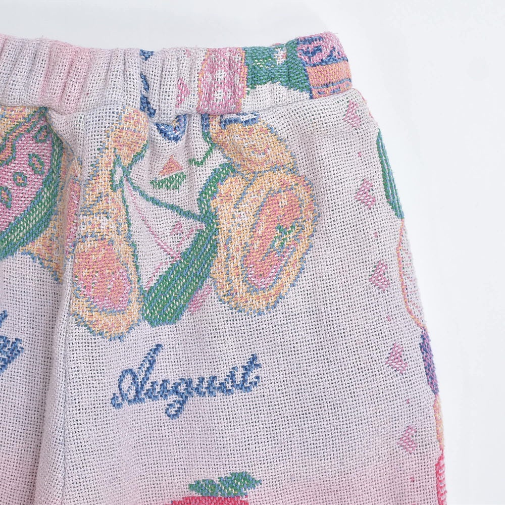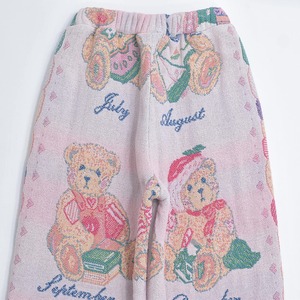 Remake リメイク ルーズシルエット ジャガード テディベア デザイン ラグパンツ クマさん ブランケット パッチワーク イージーパンツ 再構築 コットン ライトブラウン W69~106cm
